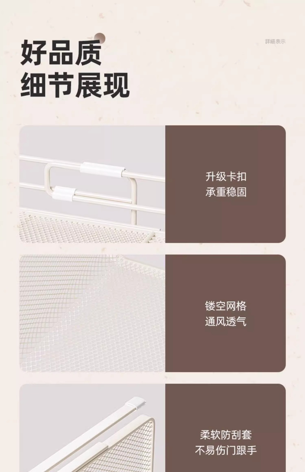 | 价格段 | 40-50元 | 层数(规格) | 奶白伸缩密网款36-60cm可调节 大小橱柜都适用, 枪灰伸缩密网款36-60cm可调节 大小橱柜都适用, 伸缩款密网36-60cm可调节-奶白色【两个装】, 伸缩款密网36-60cm可调节-枪灰色【两个装】, 经典款加粗-中号白色, 经典款加粗-中号枪灰, 经典款加粗-中号黑色, 简约款加粗-中号白色, 简约款加粗-中号枪灰, 简约款加粗-中号黑色, 简约款加粗-加大款白色, 简约款加粗-加大款枪灰, 简约款加粗-加大款黑色, 经典款加粗-中号白色【两个装】, 经典升级款-中号枪灰色【两个装】, 经典款加粗-中号黑色【两个装】, 简约款加粗-加大款白色【两个装】, 简约款加粗-加大款枪灰【两个装】, 简约款加粗-加大款黑色【两个装】 |