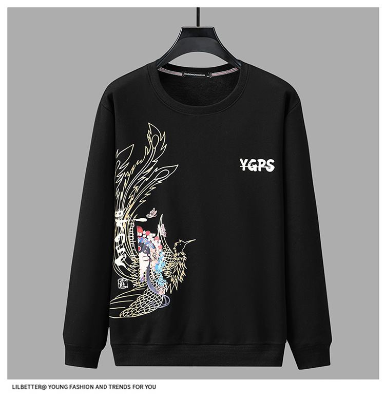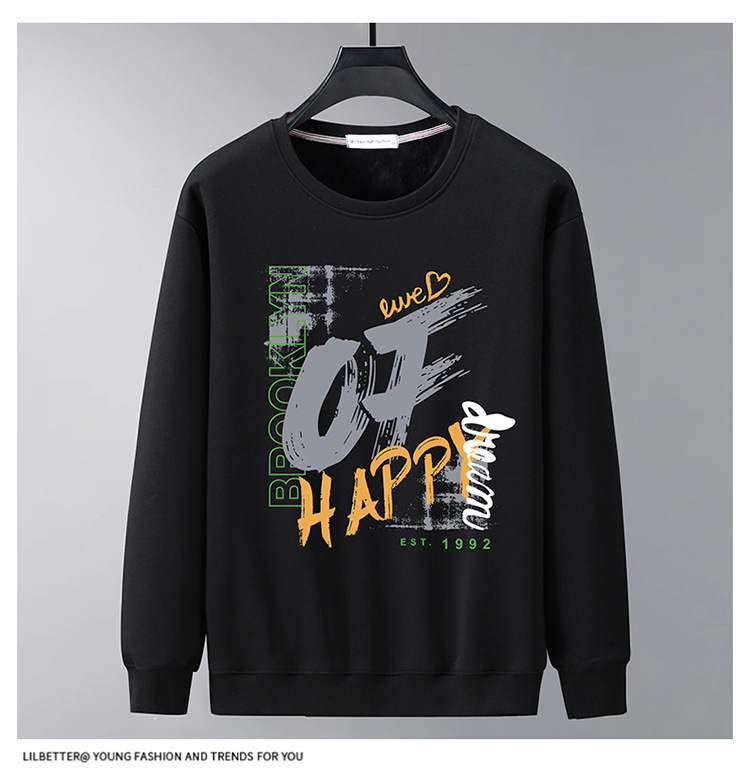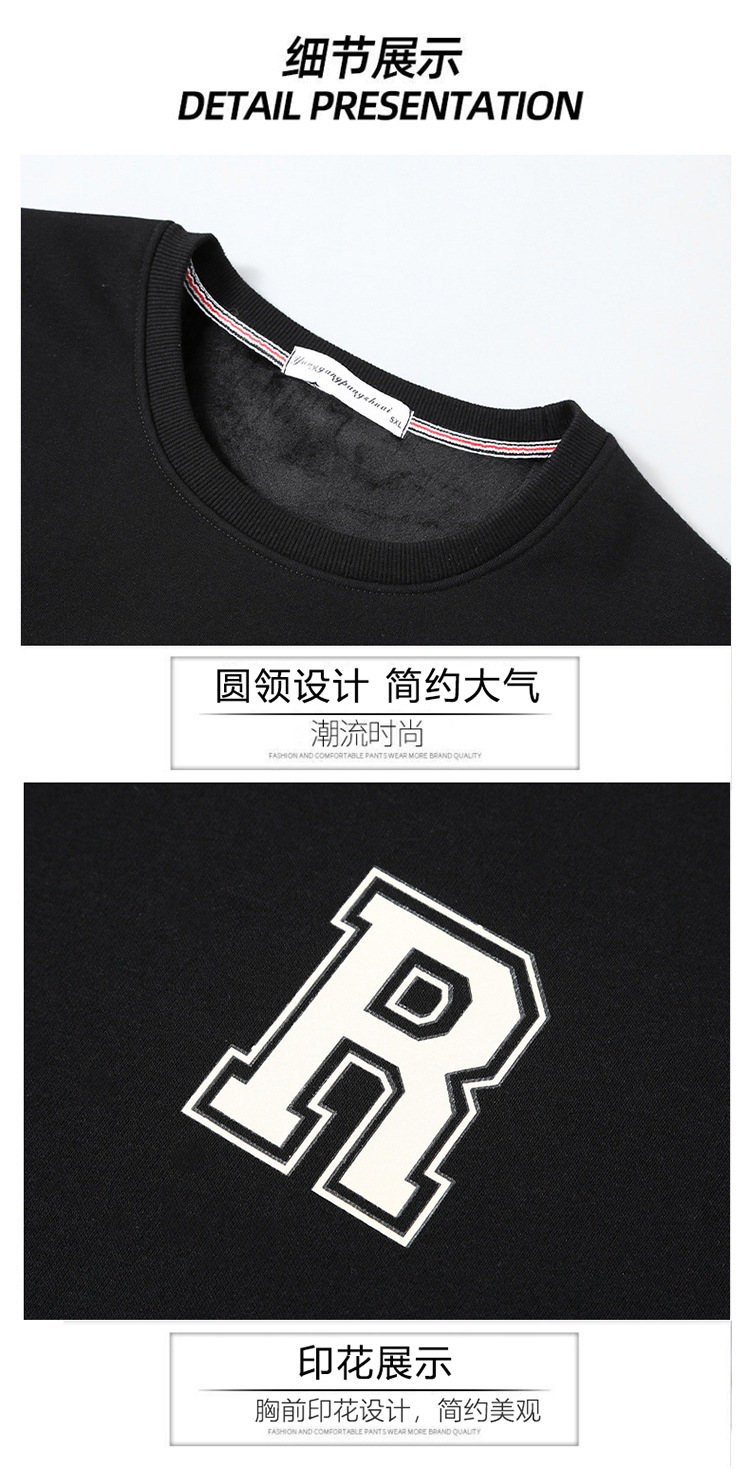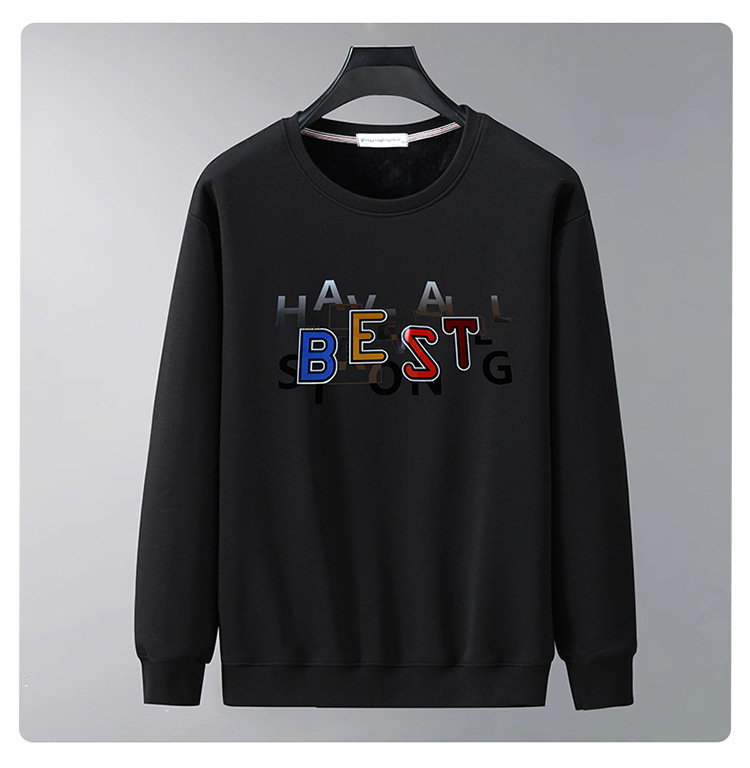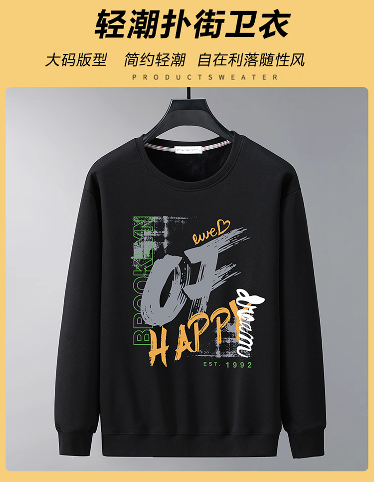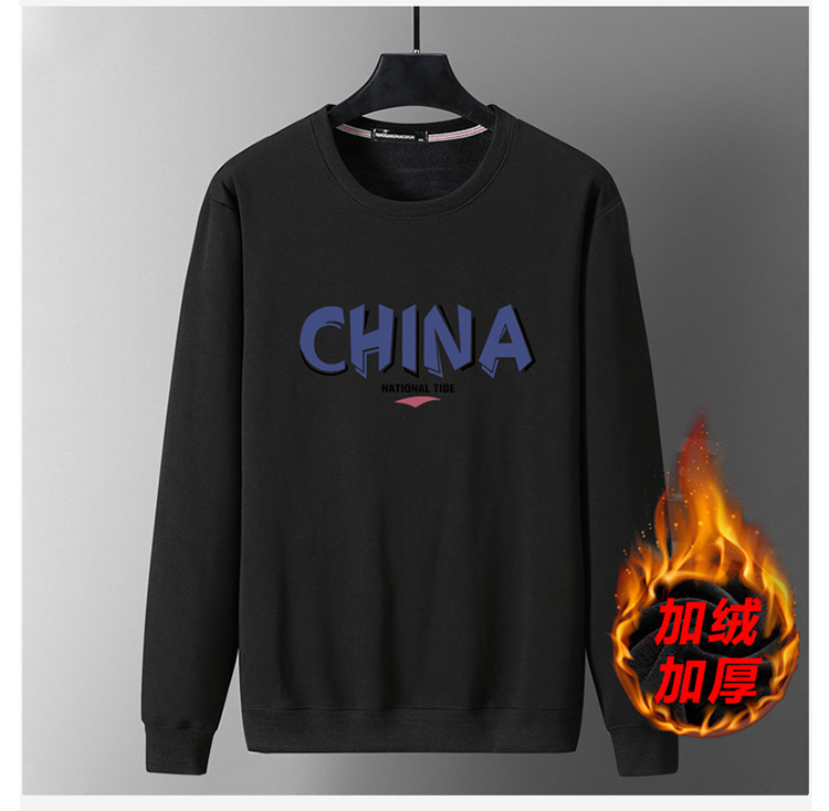 가을과 겨울 남자 스웨트 셔츠 둥근 목 기모 두꺼운 따뜻한 지방 남성 유행 느슨한 긴 소매 플러스 사이즈 남성복