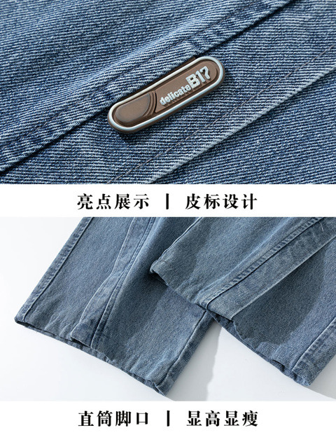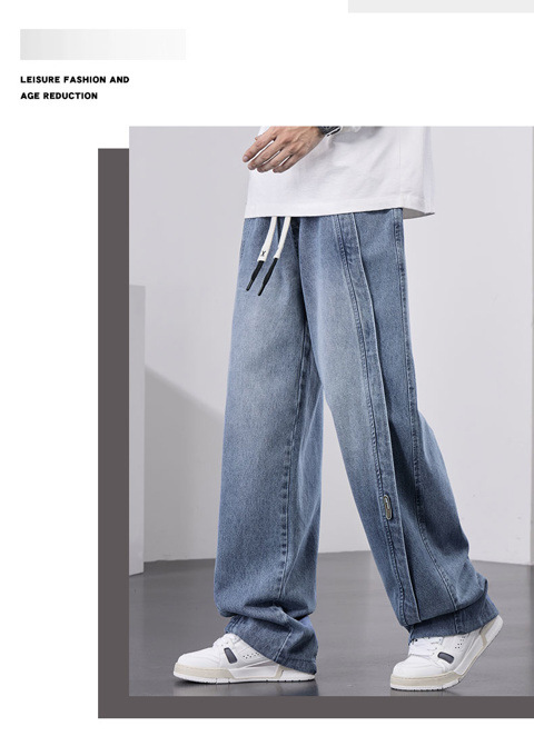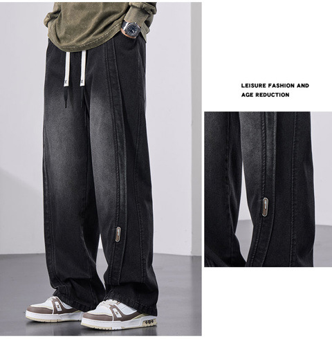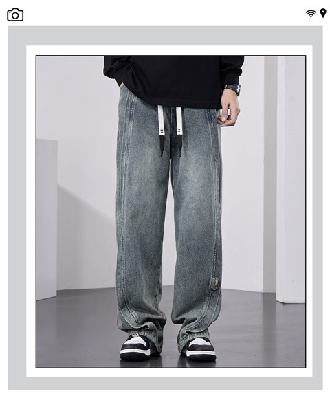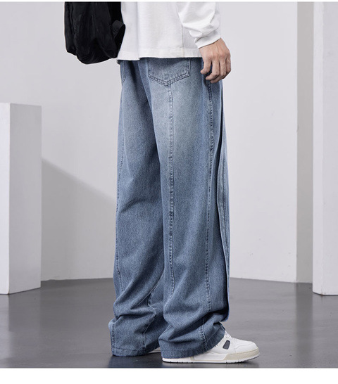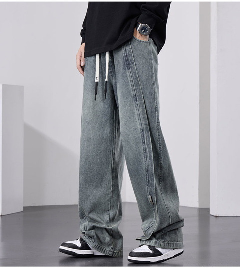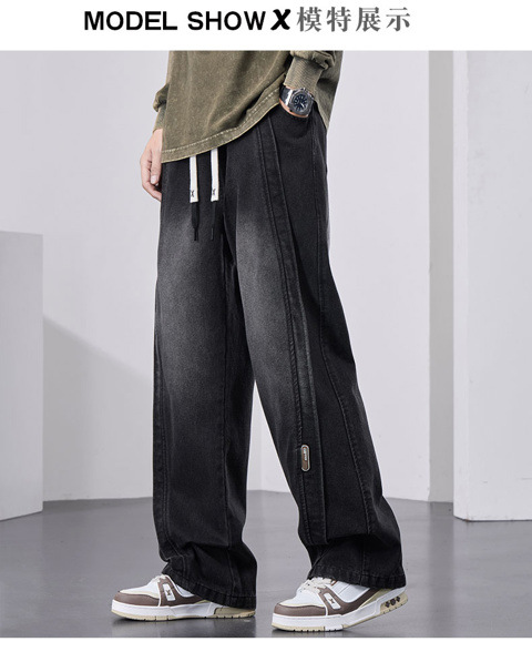 남성용 웨이브 진, 가을 미국 스타일 하이 스트리트 워싱 팬츠, 빅사이즈 트렌디 브랜드 루즈핏 스트레이트 남성 와이드 팬츠