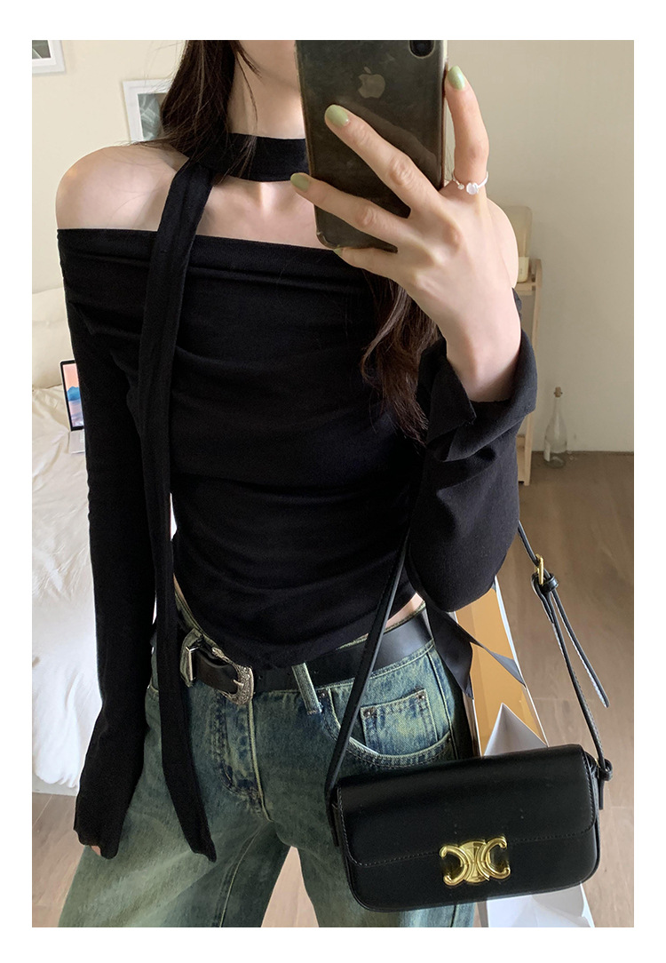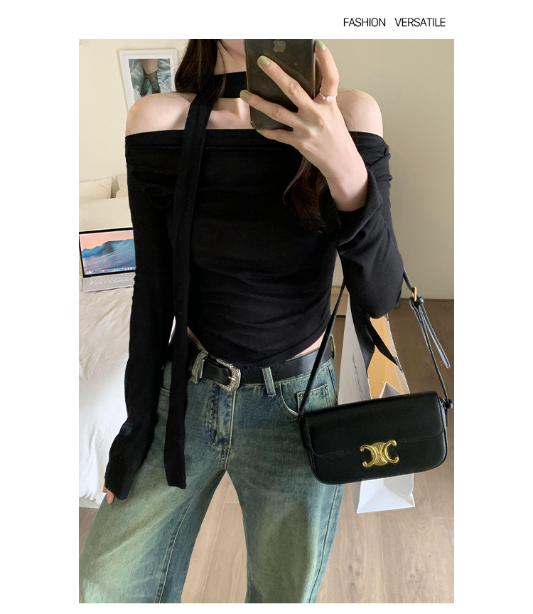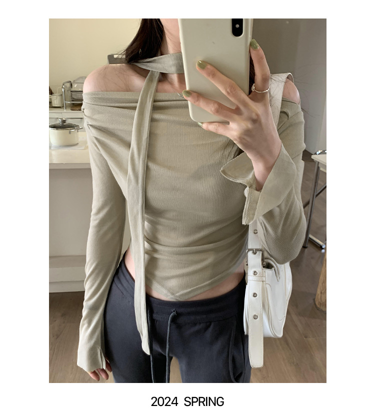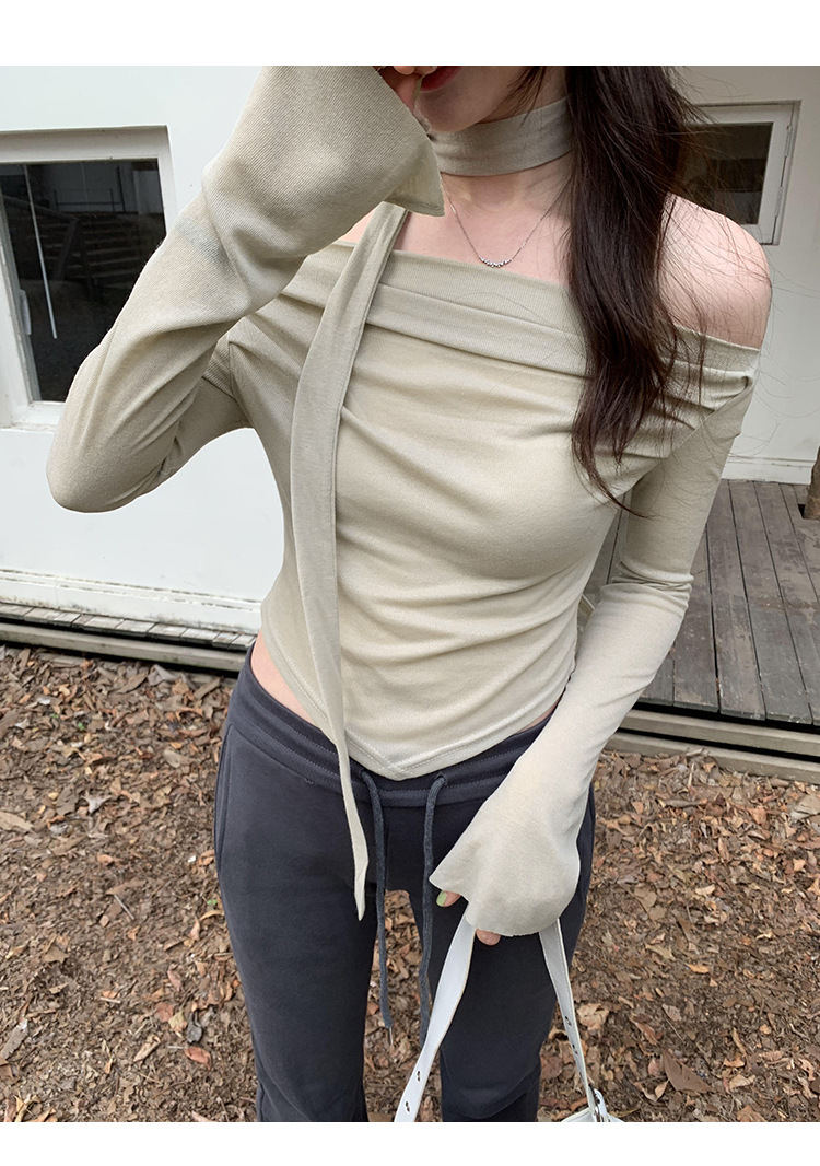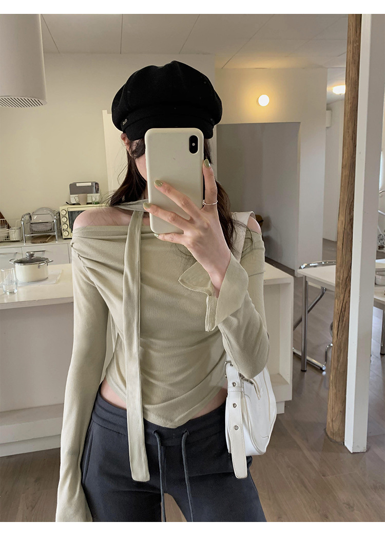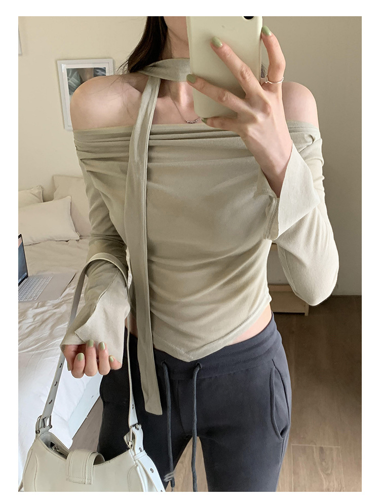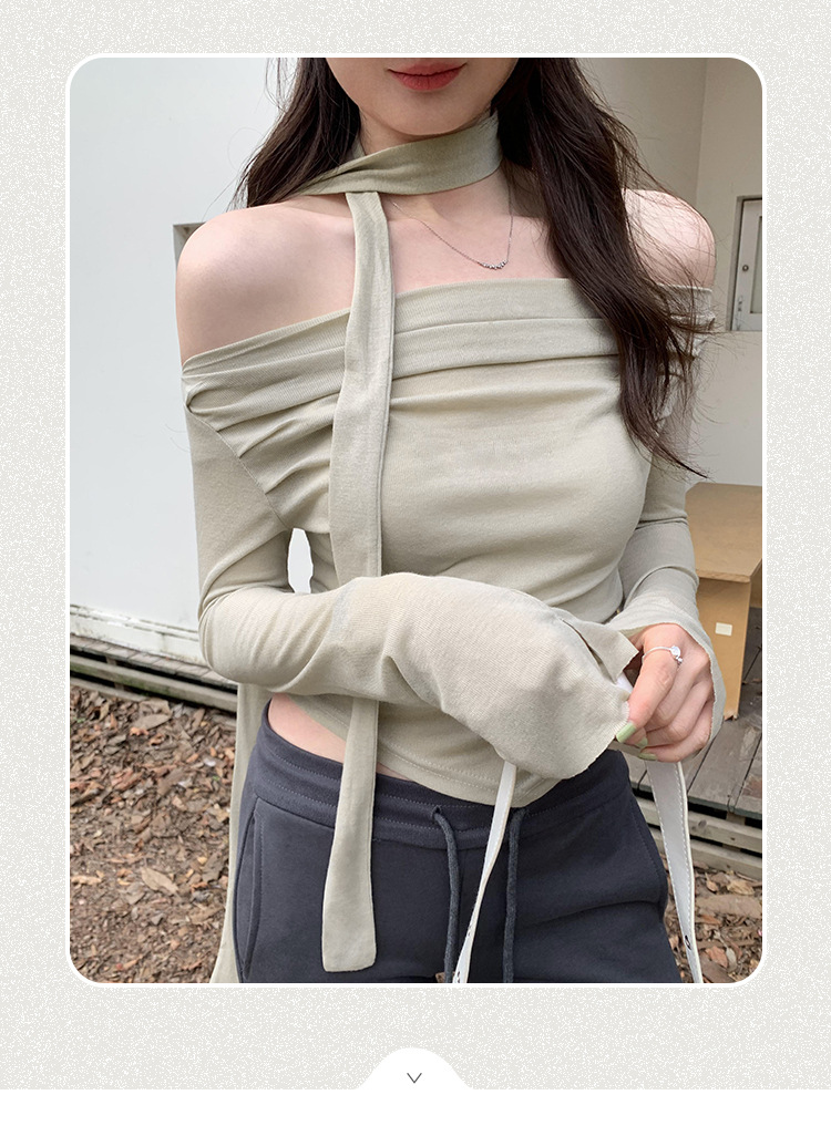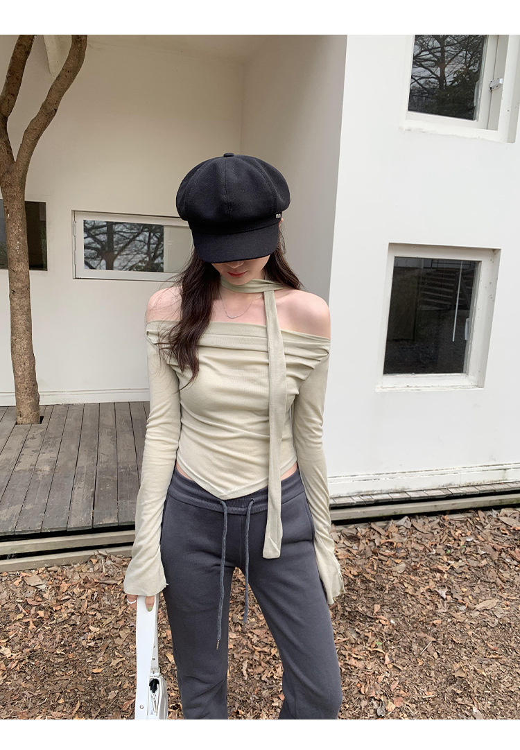 브랜드 유럽 오프 숄더 슬리밍 짧은 긴팔 티셔츠 여성의 봄과 가을 새로운 하이 엔드 핫 걸 재킷 스카프 세트
