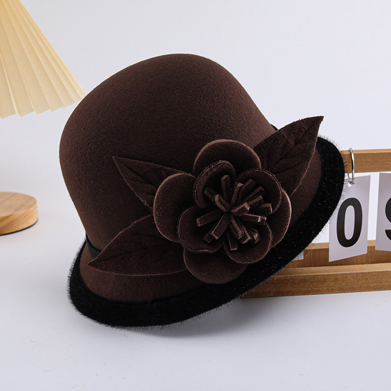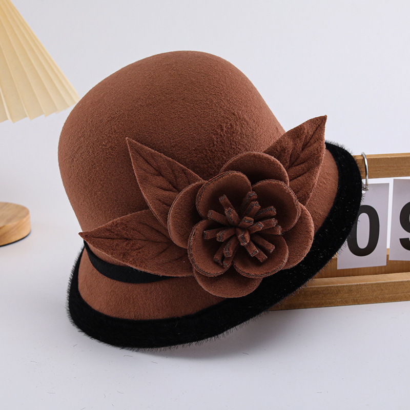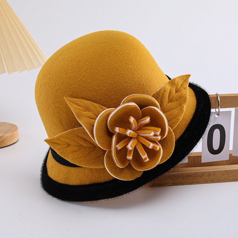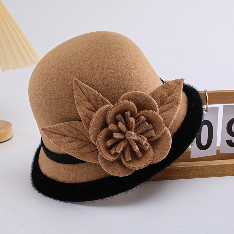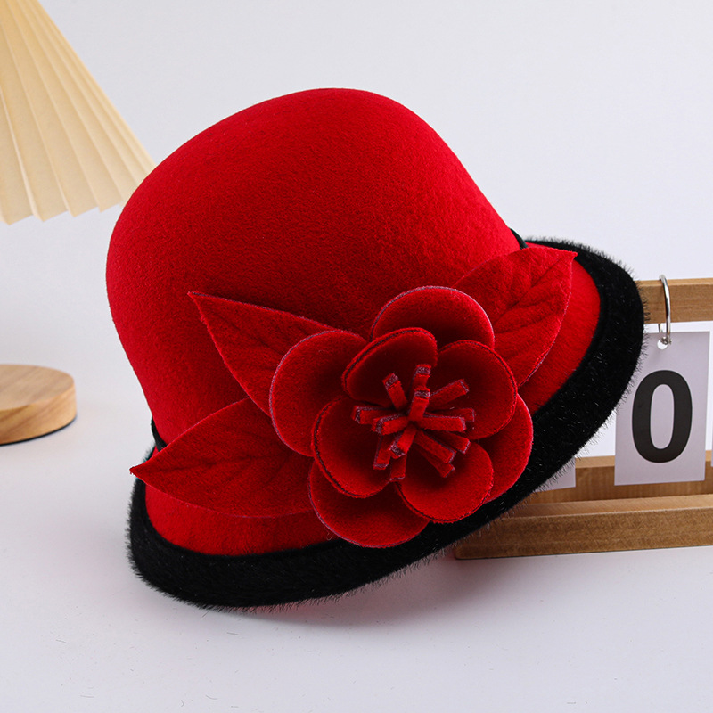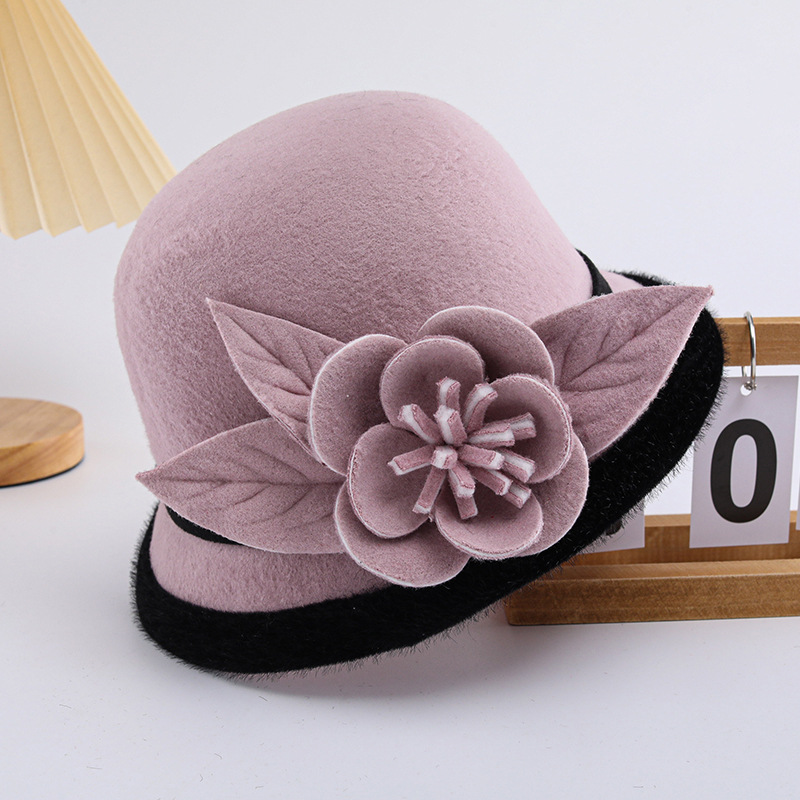 새로운 모직 분지 모자 가을과 겨울 한국식 패션 올매치 꽃 중년 톱모자 겨울 여성 어부 모자