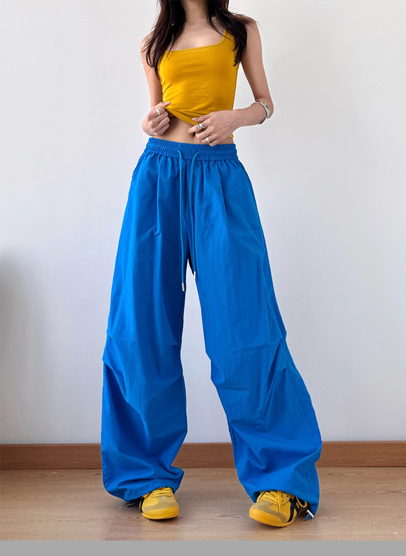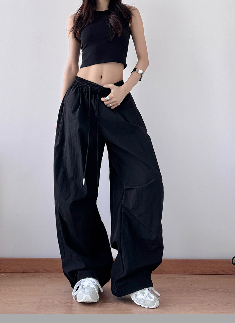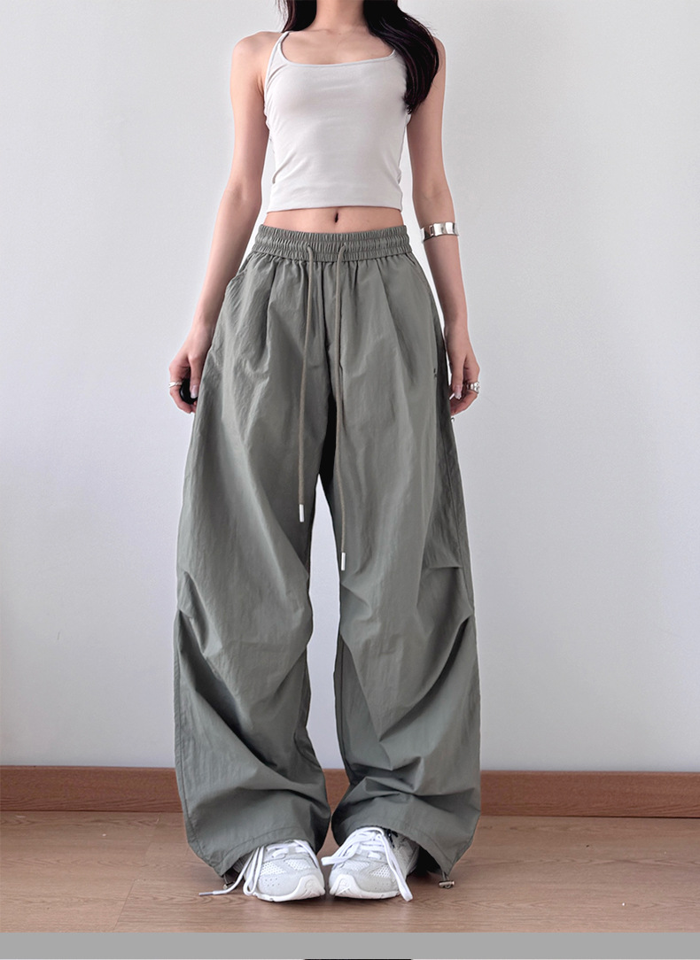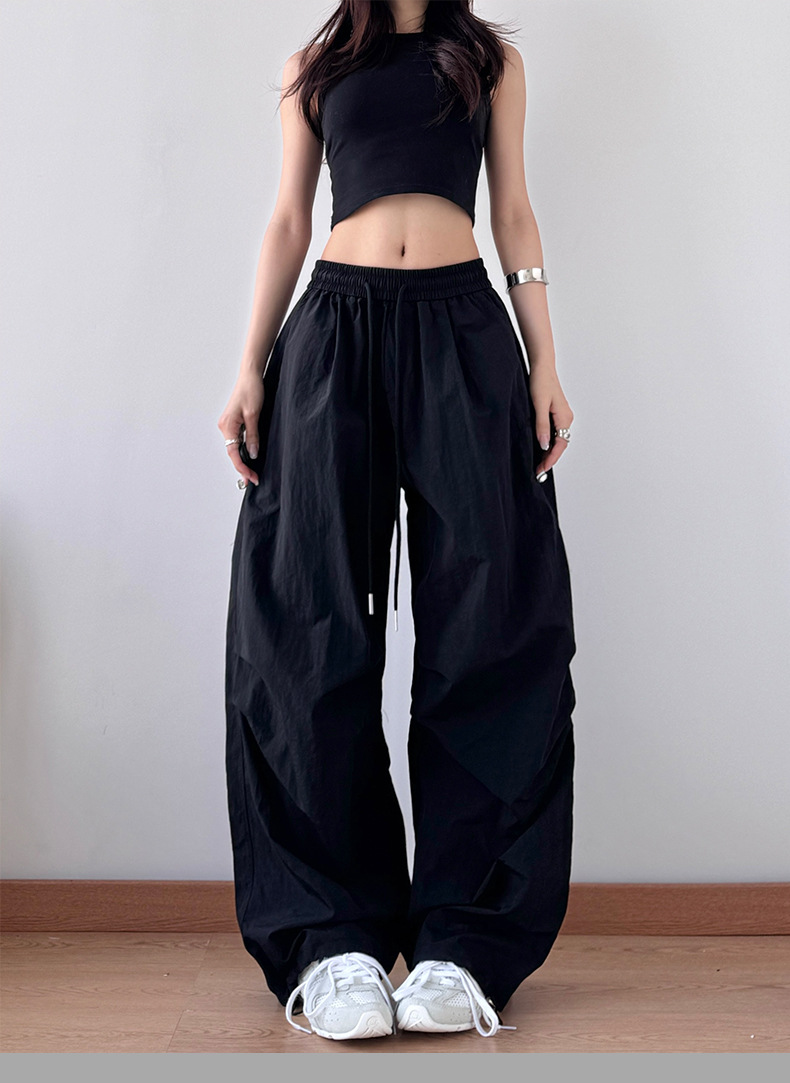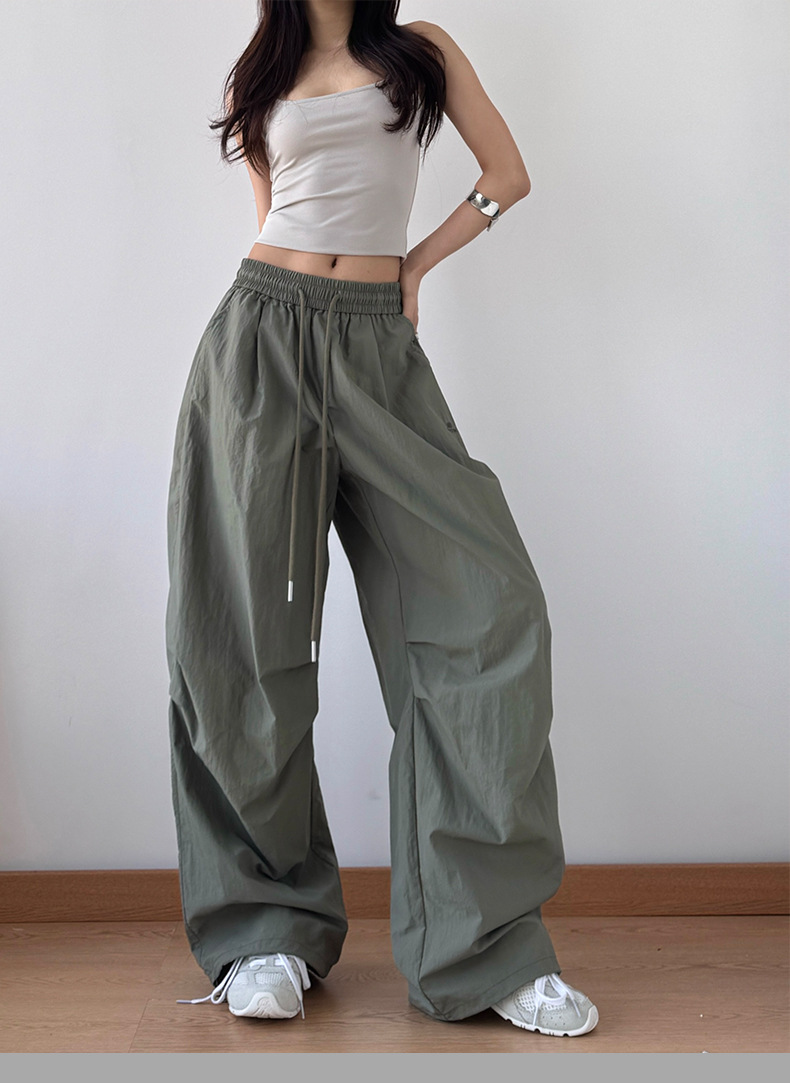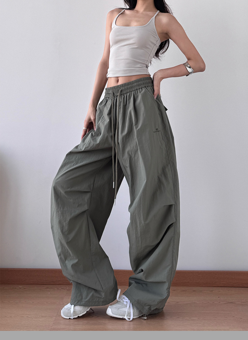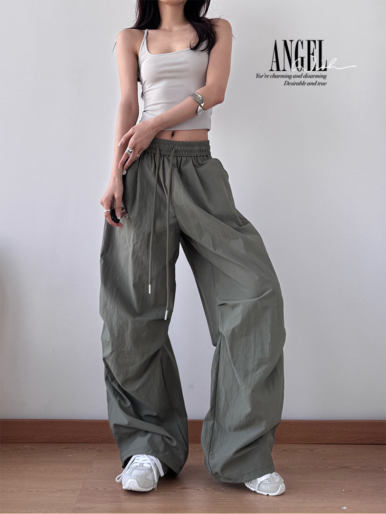 2025 봄과 가을 새로운 스포츠 와이드 레그 팬츠 hiphop 느슨한 낙하산 복고풍 플리츠 스트레이트 툴링 캐주얼 팬츠