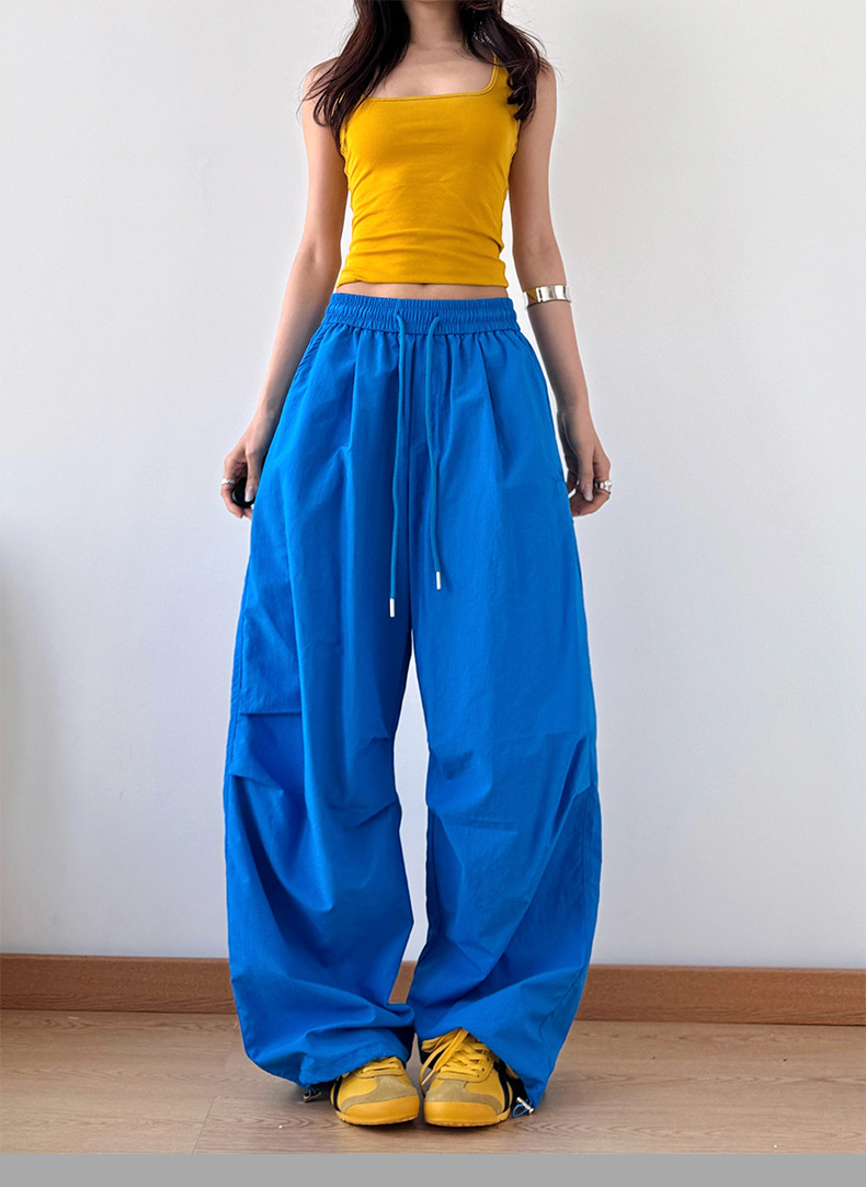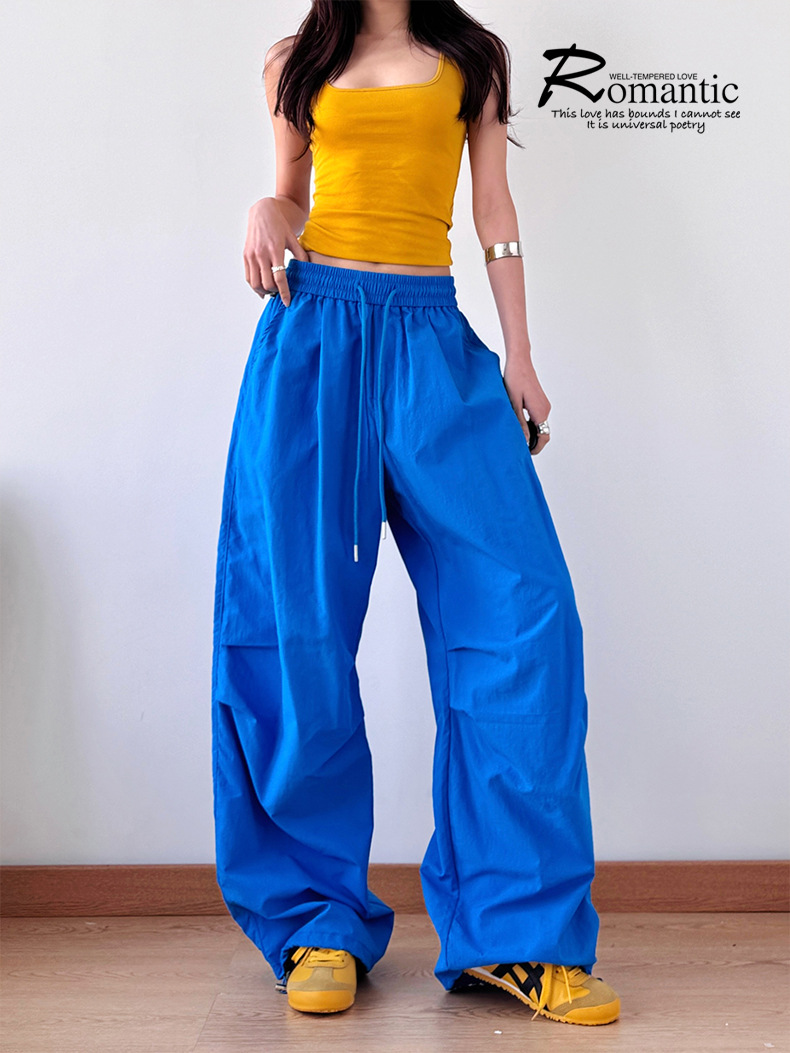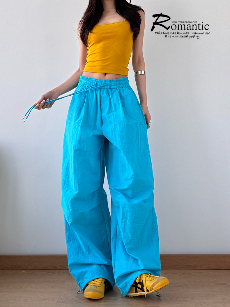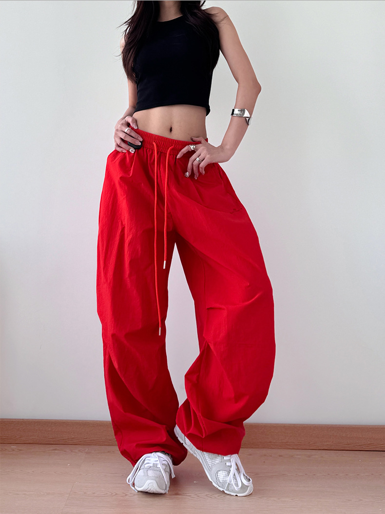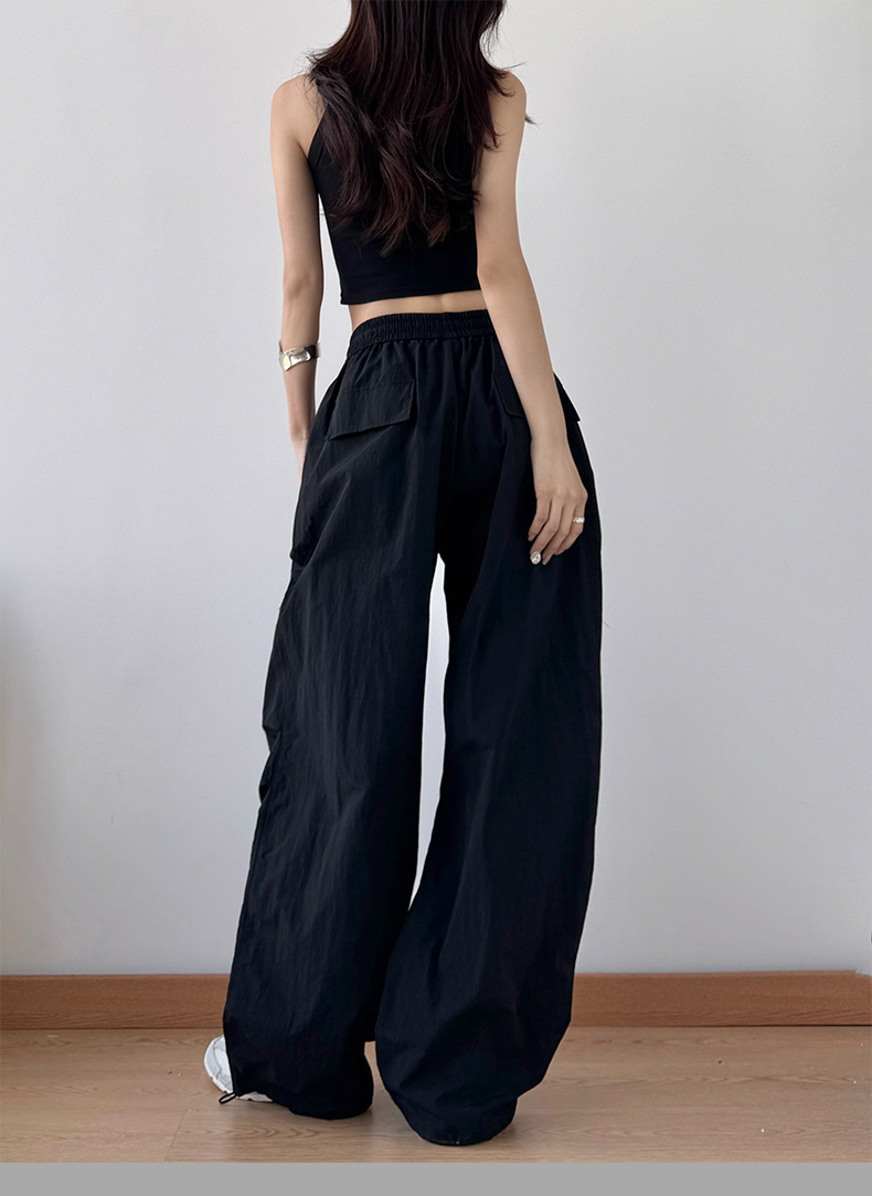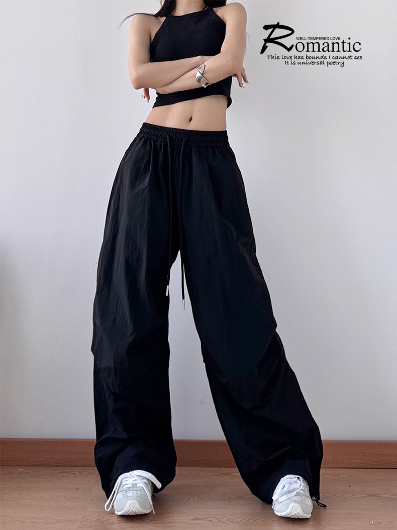 2025 봄과 가을 새로운 스포츠 와이드 레그 팬츠 hiphop 느슨한 낙하산 복고풍 플리츠 스트레이트 툴링 캐주얼 팬츠