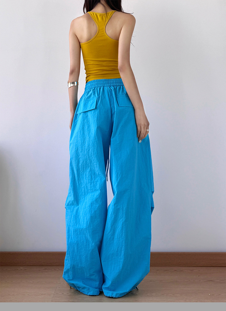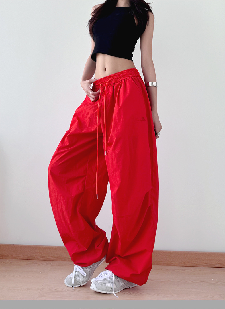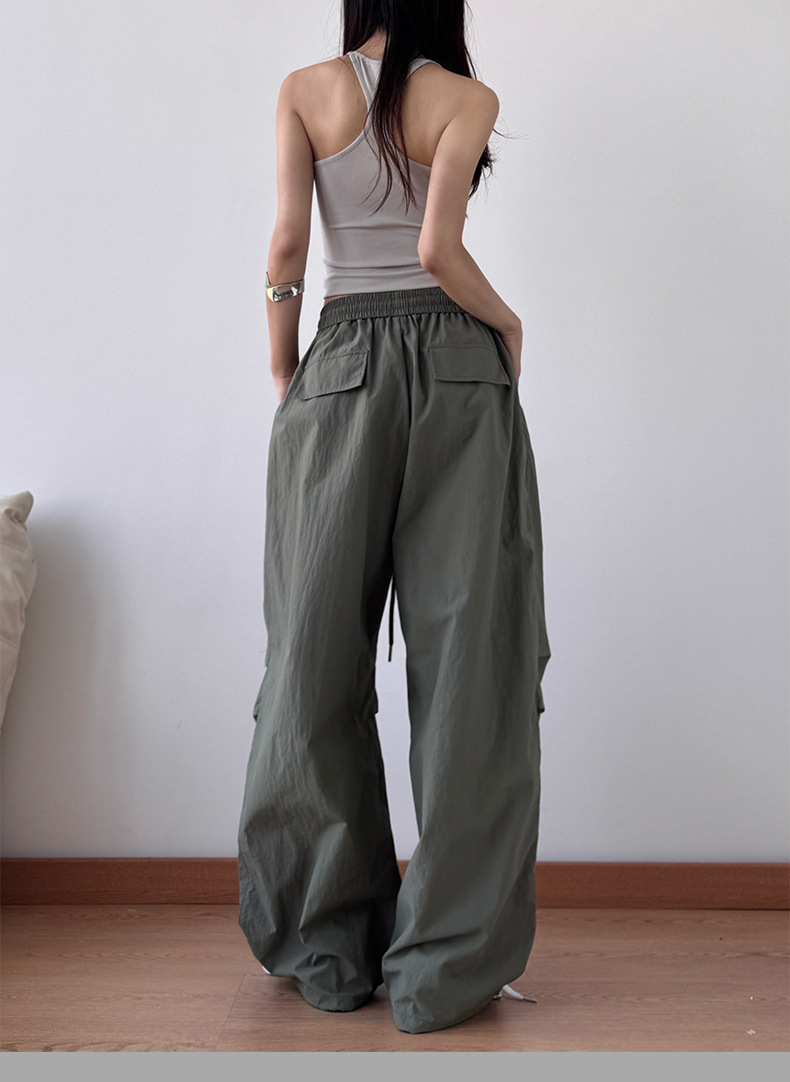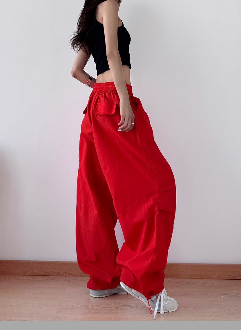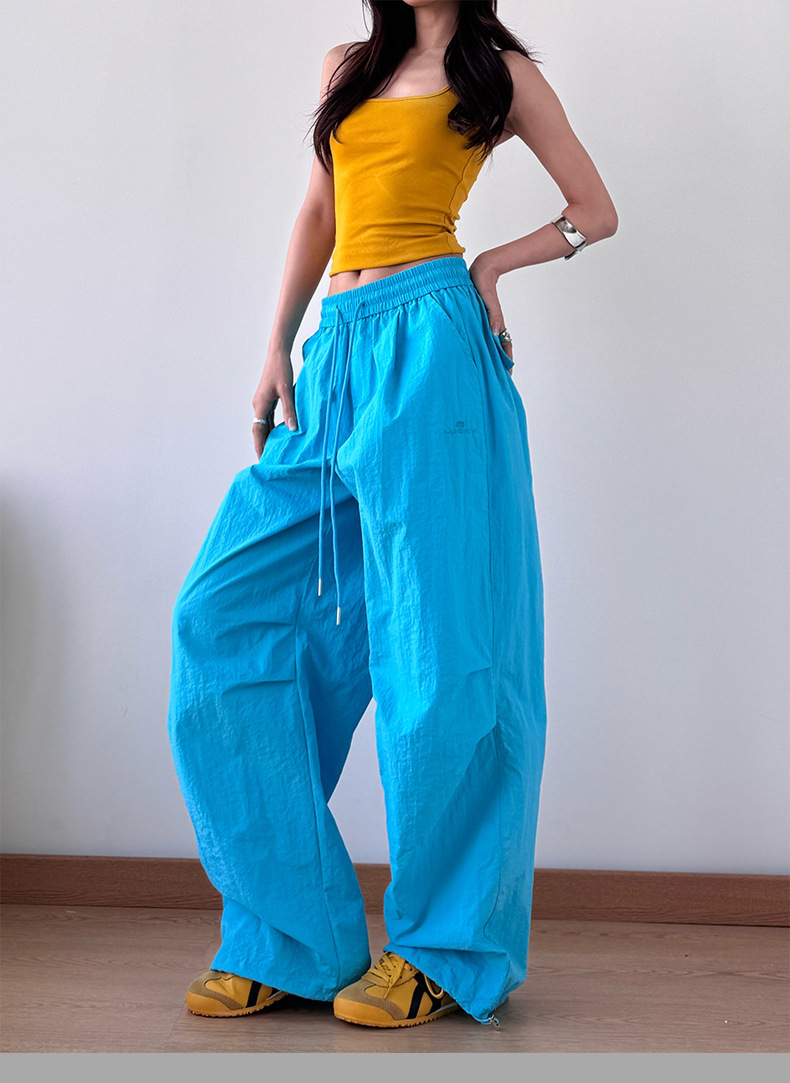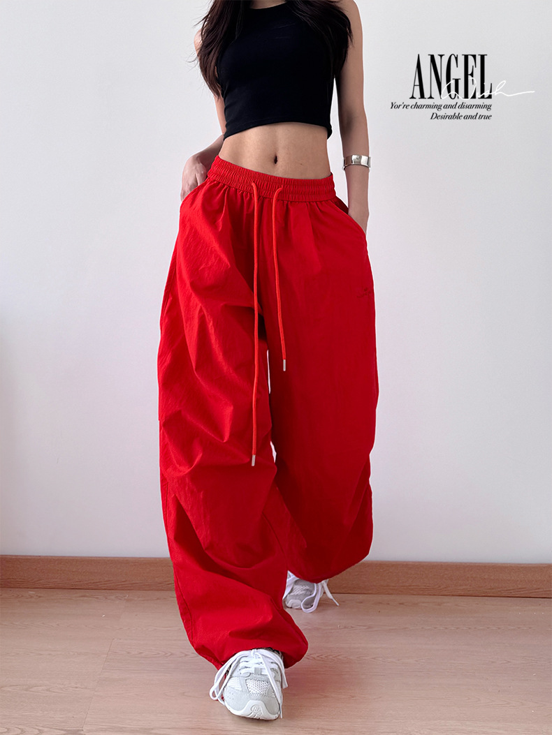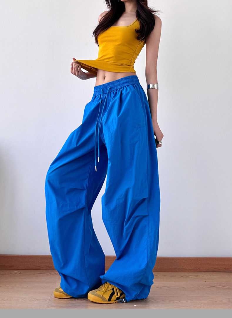 2025 봄과 가을 새로운 스포츠 와이드 레그 팬츠 hiphop 느슨한 낙하산 복고풍 플리츠 스트레이트 툴링 캐주얼 팬츠