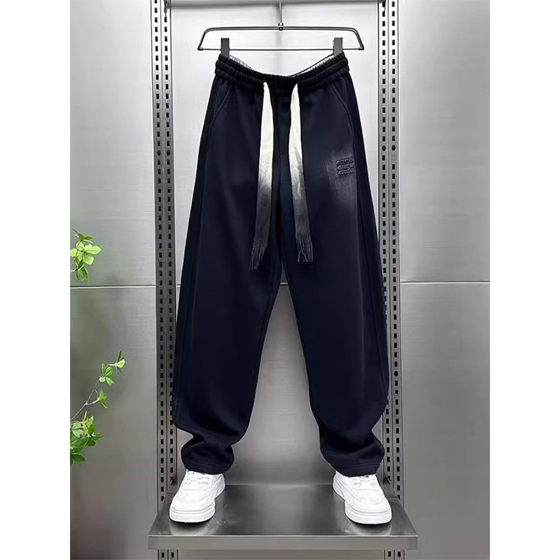 뚱뚱한 캐주얼 바지 남자 잘 생긴 스포츠 스트레이트 바지 봄과 가을 유행 브랜드 루즈 오버 사이즈 올 매치 블랙 와이드 레그 바지
