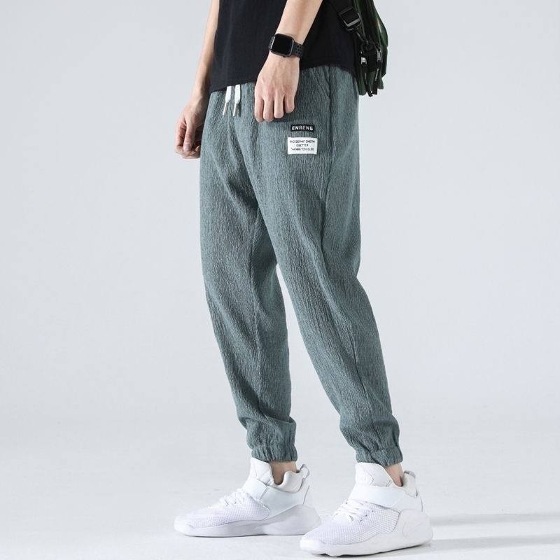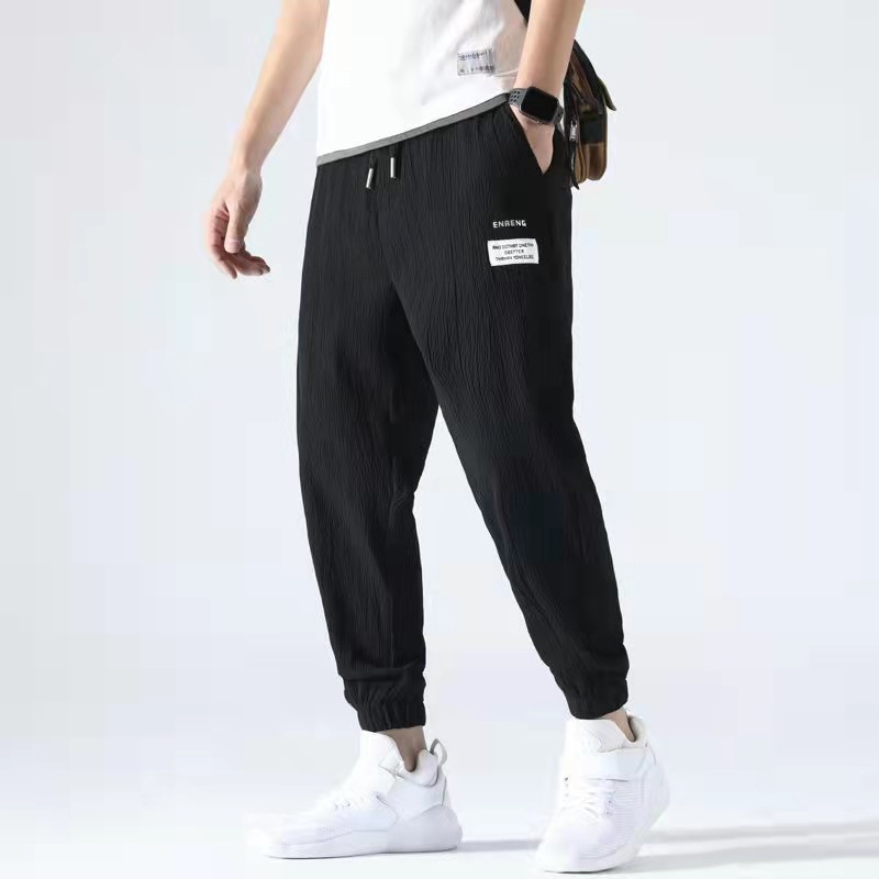 아이스 실크 바지 남자 2025 여름 새로운 한국 스타일 얇은 캐주얼 느슨한 플러스 사이즈 넥타이 레그 스포츠 하렘 바지
