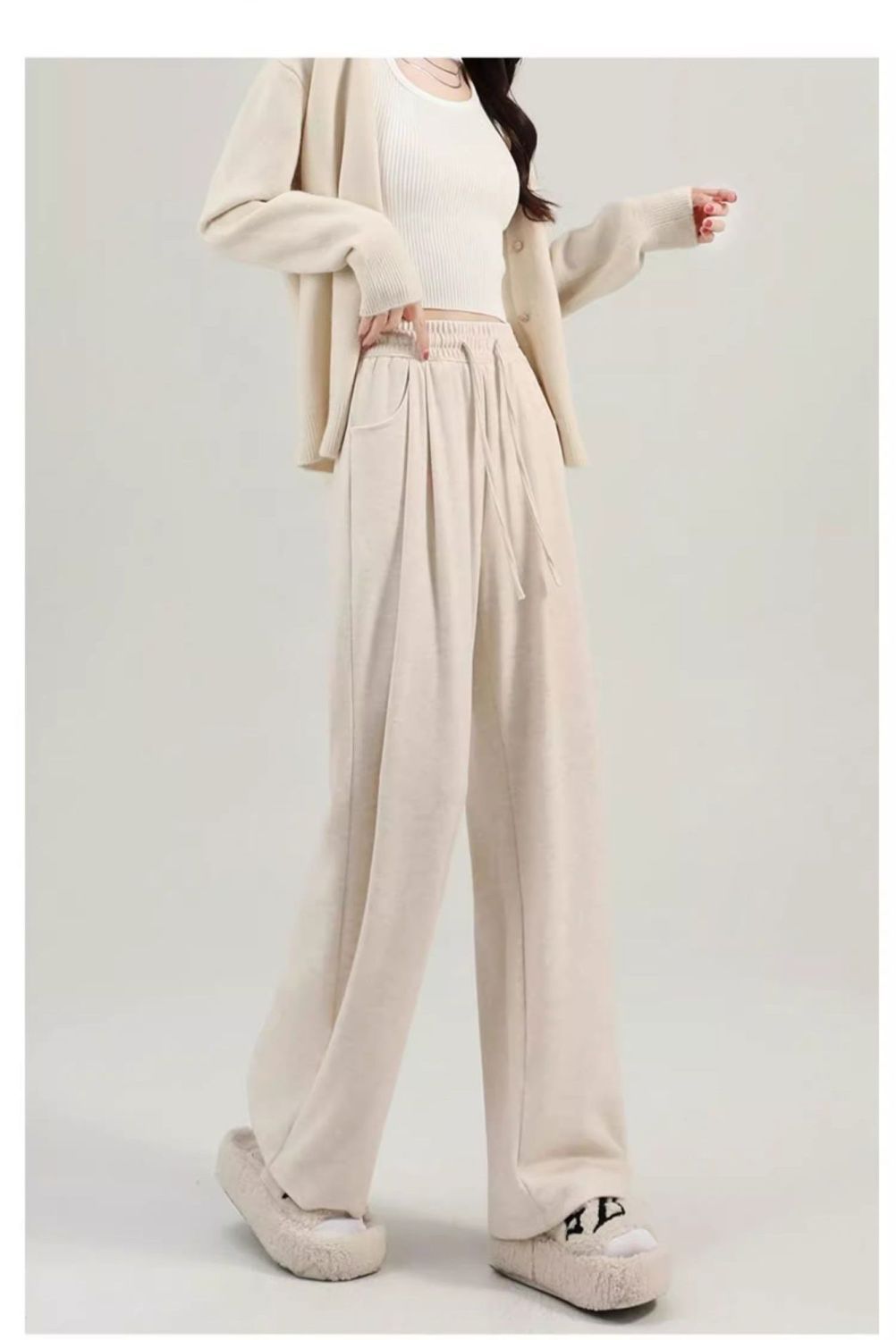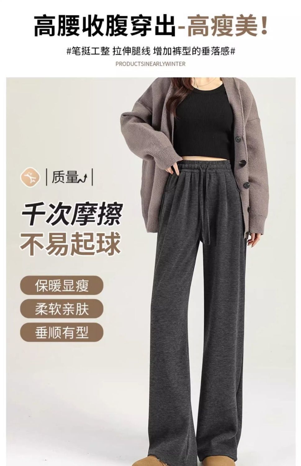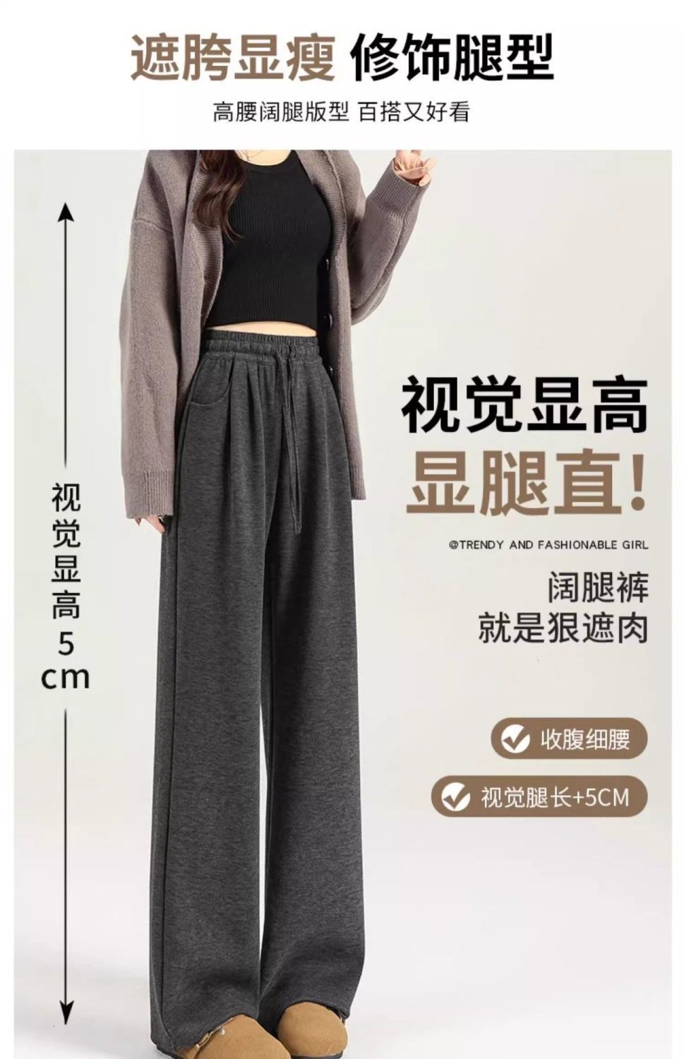 회색 찹쌀 바지 여성의 가을과 겨울 2025 새로운 높은 허리 스트레이트 튜브 게으른 느슨한 부드러운 포도상 넓은 다리 바지