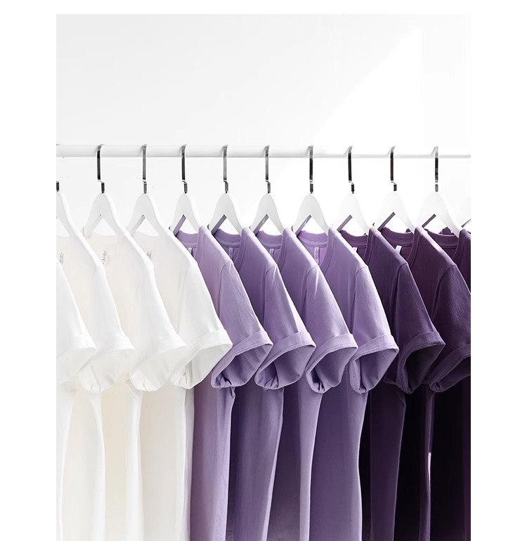 400g의 매력적인 보라색! 고급 순면 타로보라 반팔 티셔츠 포도보라 단색 아이리스보라 상의