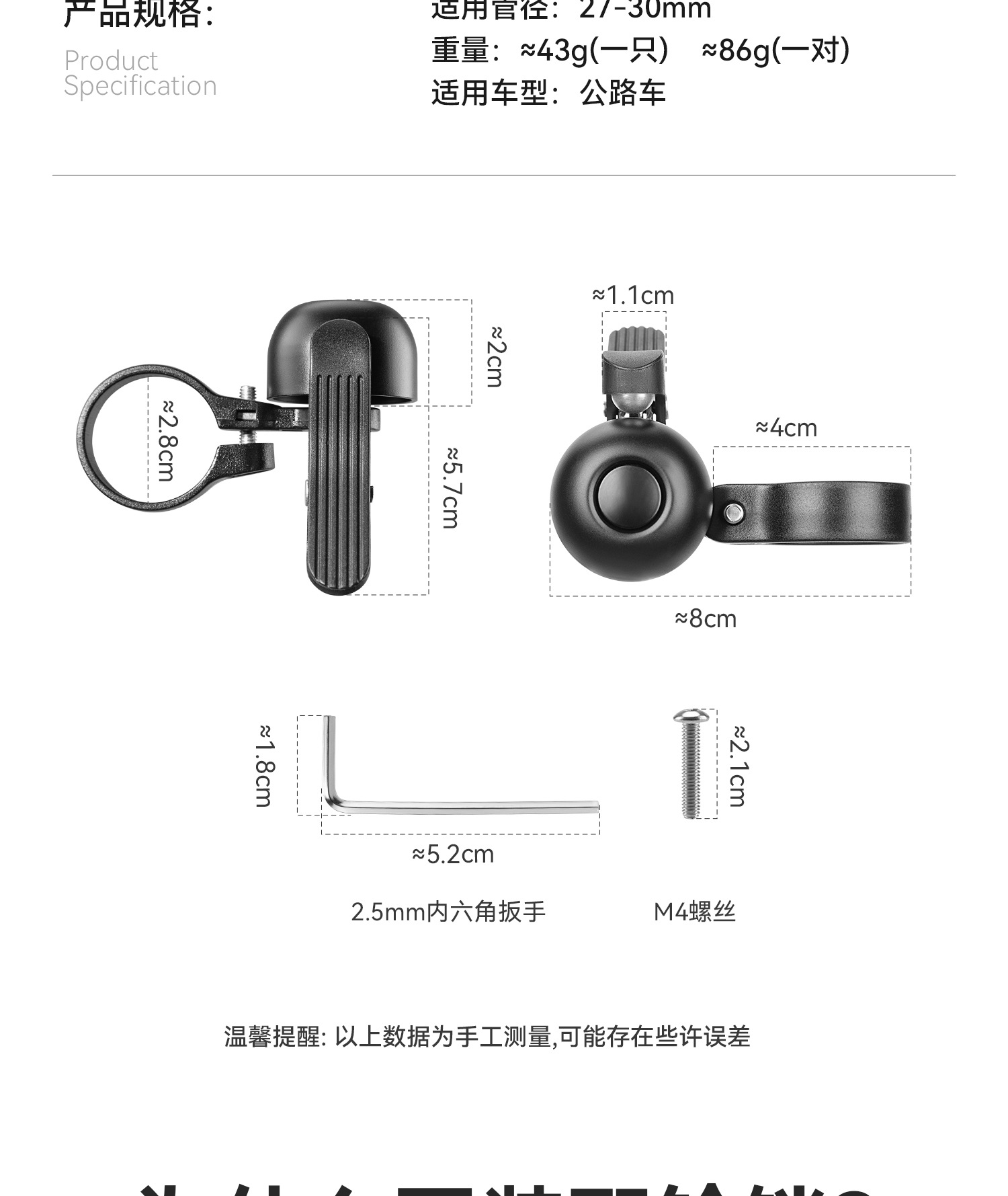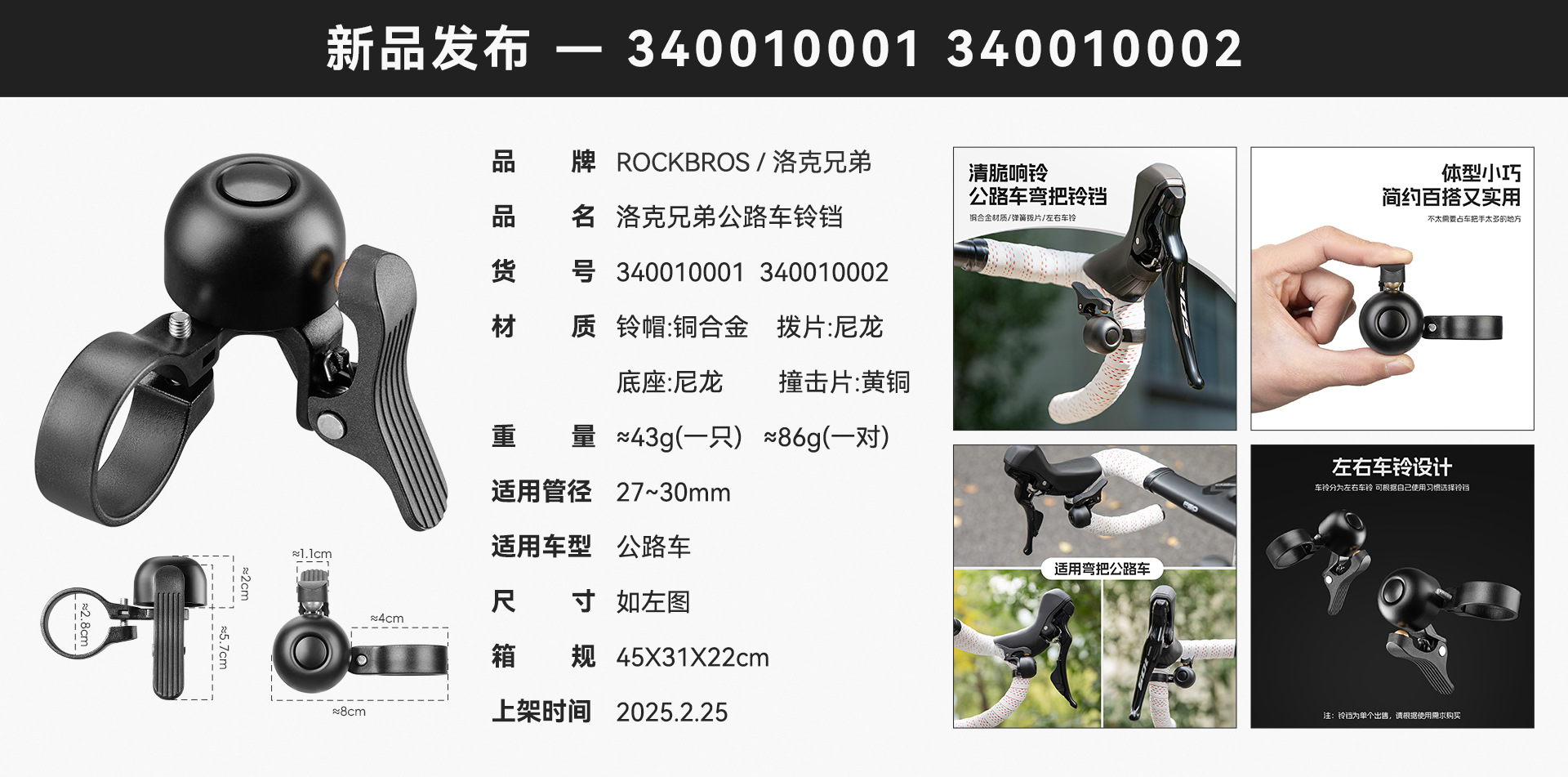 록 브라더스 도로 자전거 벨 구부러진 자전거 경고 경적 레트로 자전거 도시 통근 승마 액세서리