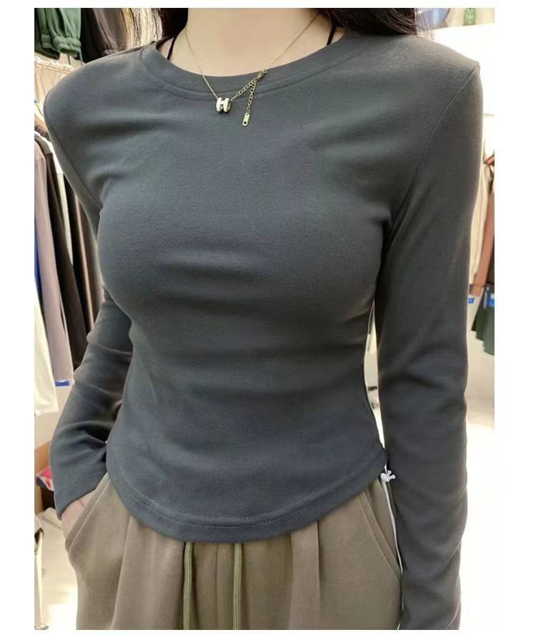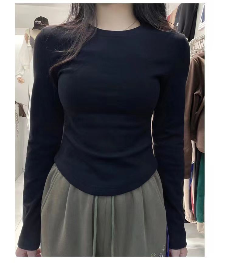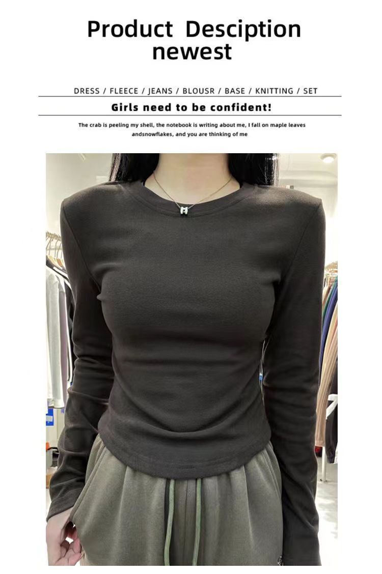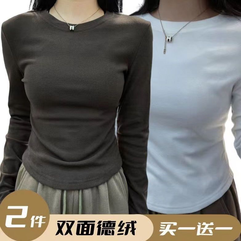 독일 벨벳 바닥 셔츠 가을과 겨울 새로운 스타일의 순수한 바람 밑단 곡선 긴 소매 티셔츠 따뜻한 올 매치 여성용 탑