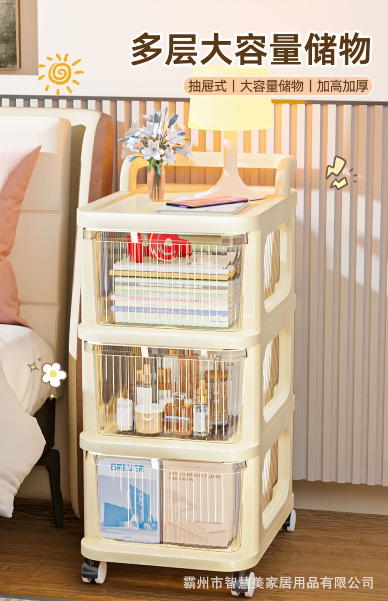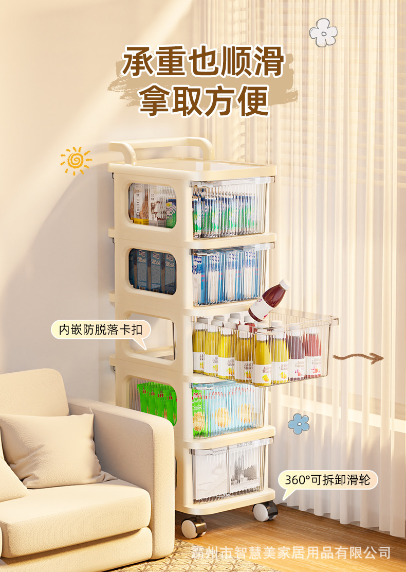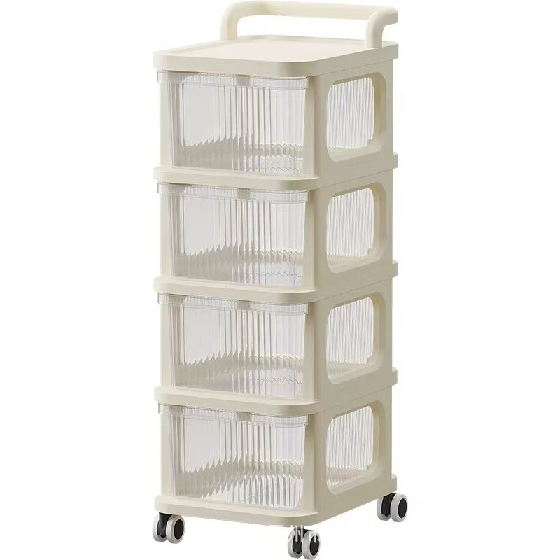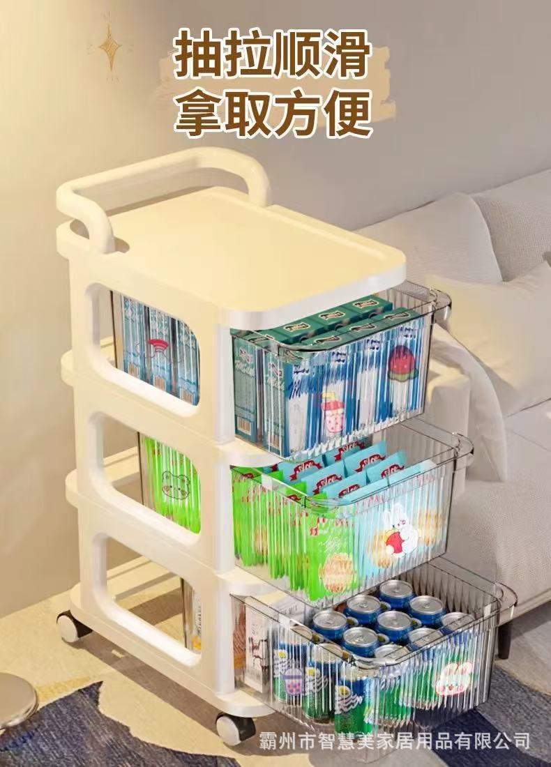 다층 트롤리 스토리지 랙 크림 스타일 침대 옆 캐비닛 바퀴 달린 모바일 바닥 식 서랍 형 스낵 장난감 스토리지 랙