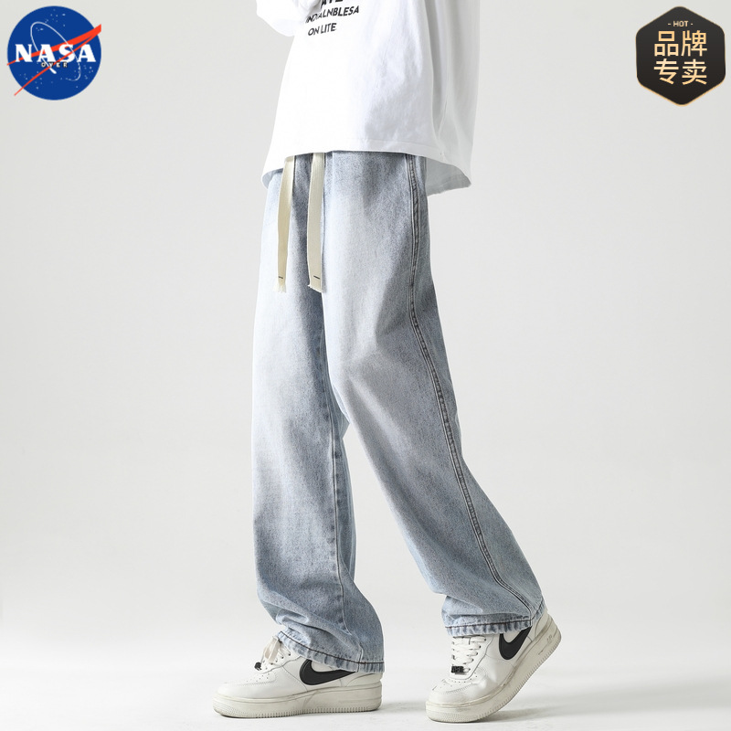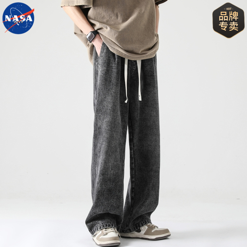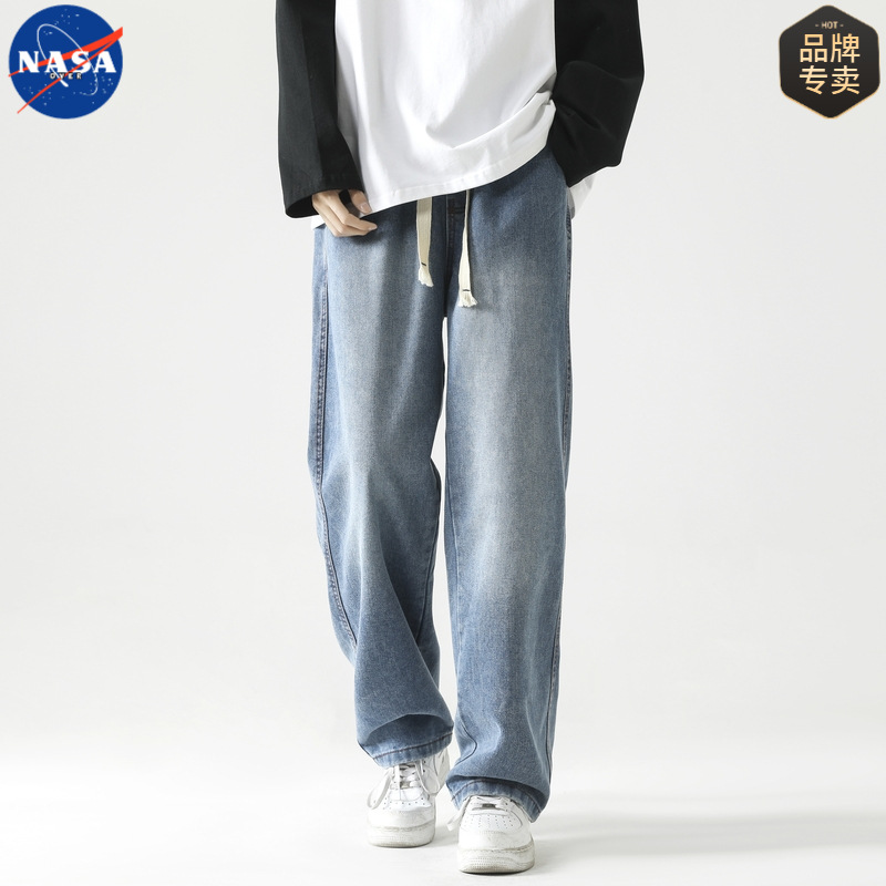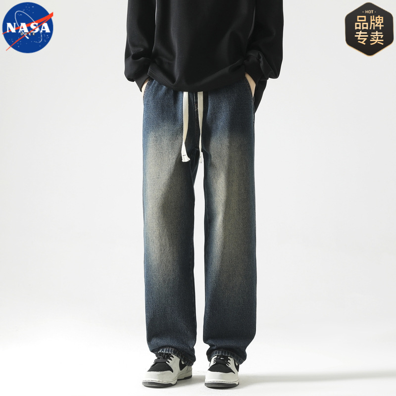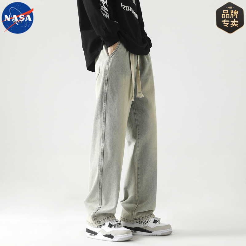 NASA 브랜드 아메리칸 스타일 레트로 강아지 핸섬 청바지 남자 2025 년 봄과 가을 새로운 느슨한 스트레이트 올 매치 캐주얼 바지