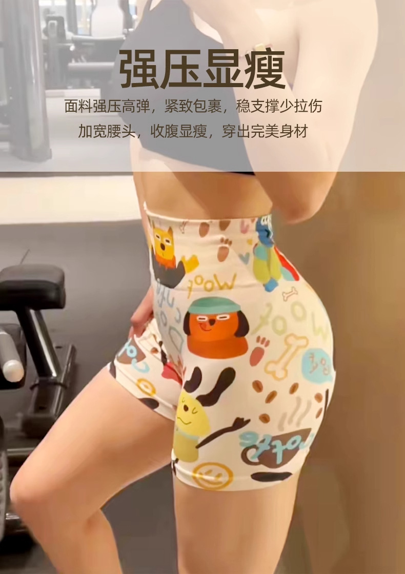 국경 간 유럽과 미국의 새로운 색상 귀여운 만화 인쇄 요가 반바지 야외 피트니스 야외 스포츠 여성 패션