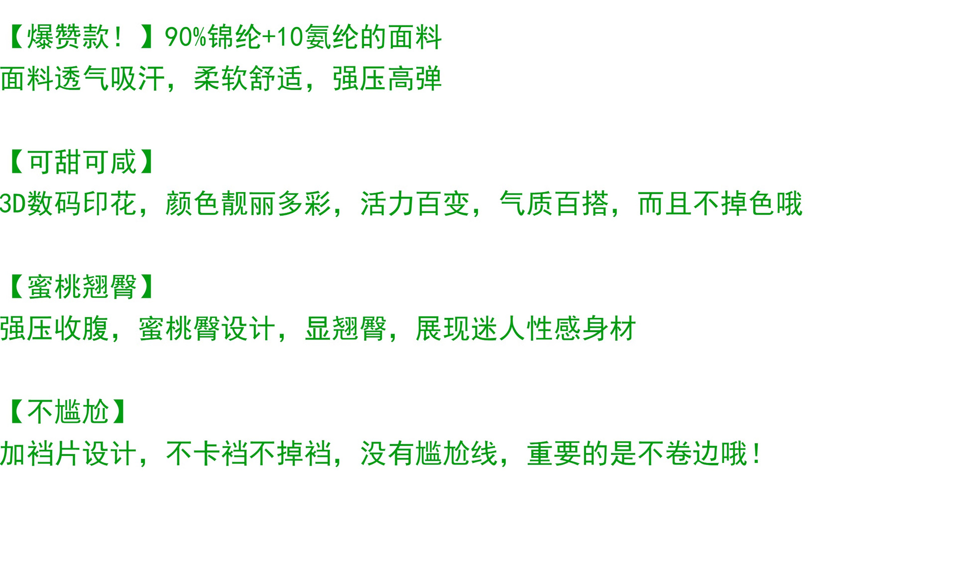 | 功能 | 瑜伽 | 面料 | 锦纶/氨纶 |