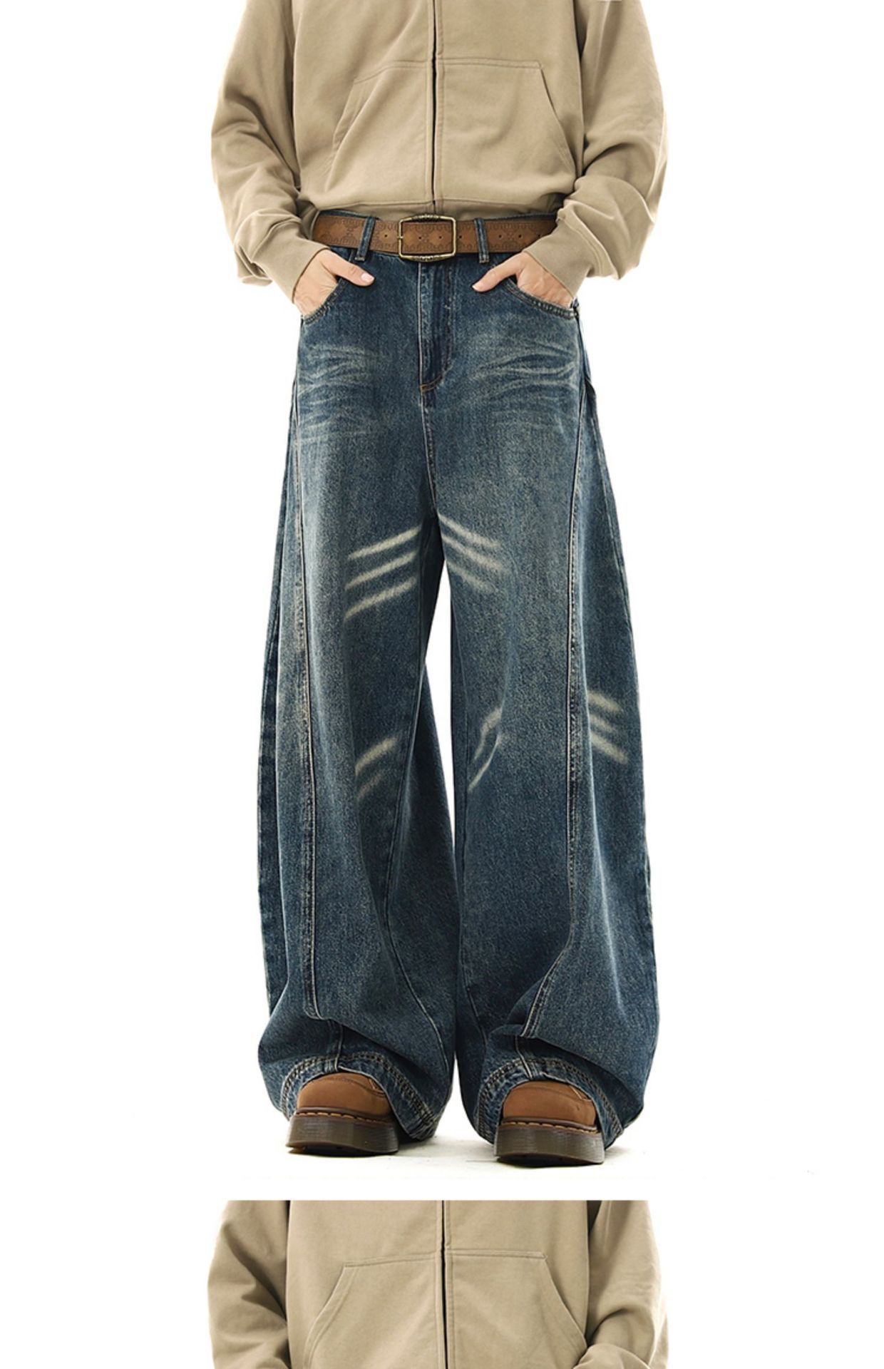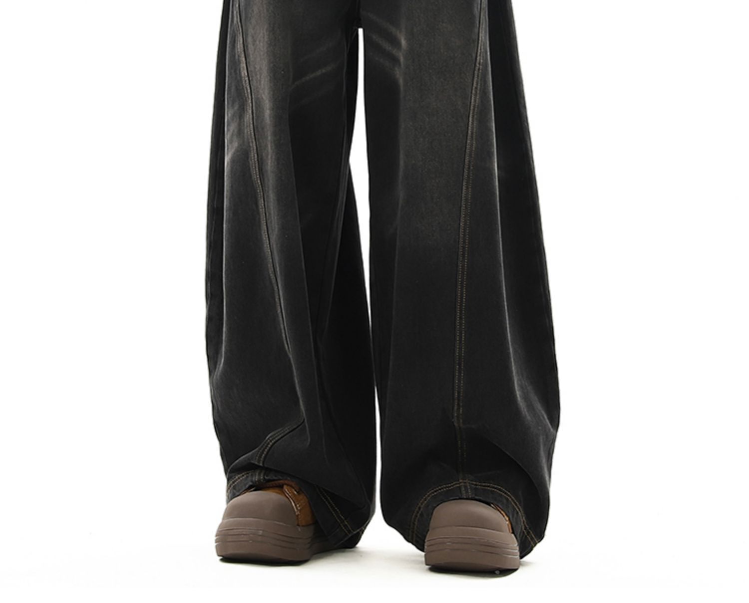 아메리칸 스타일 레트로 고양이 수염 Machete 청바지 남성 하이 스트리트 루즈 디자인 센스 클린 핏 스트레이트 레그 와이드 레그 롱 팬츠