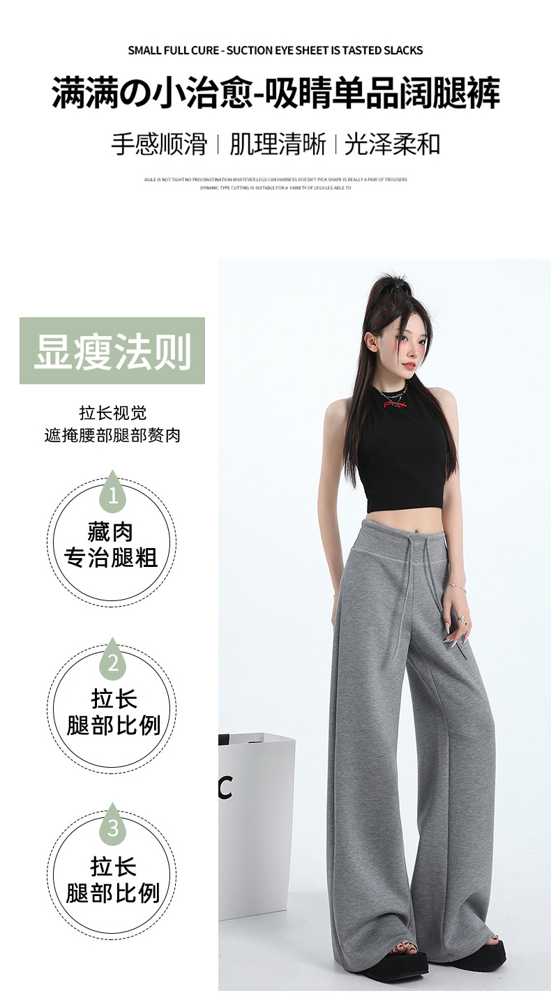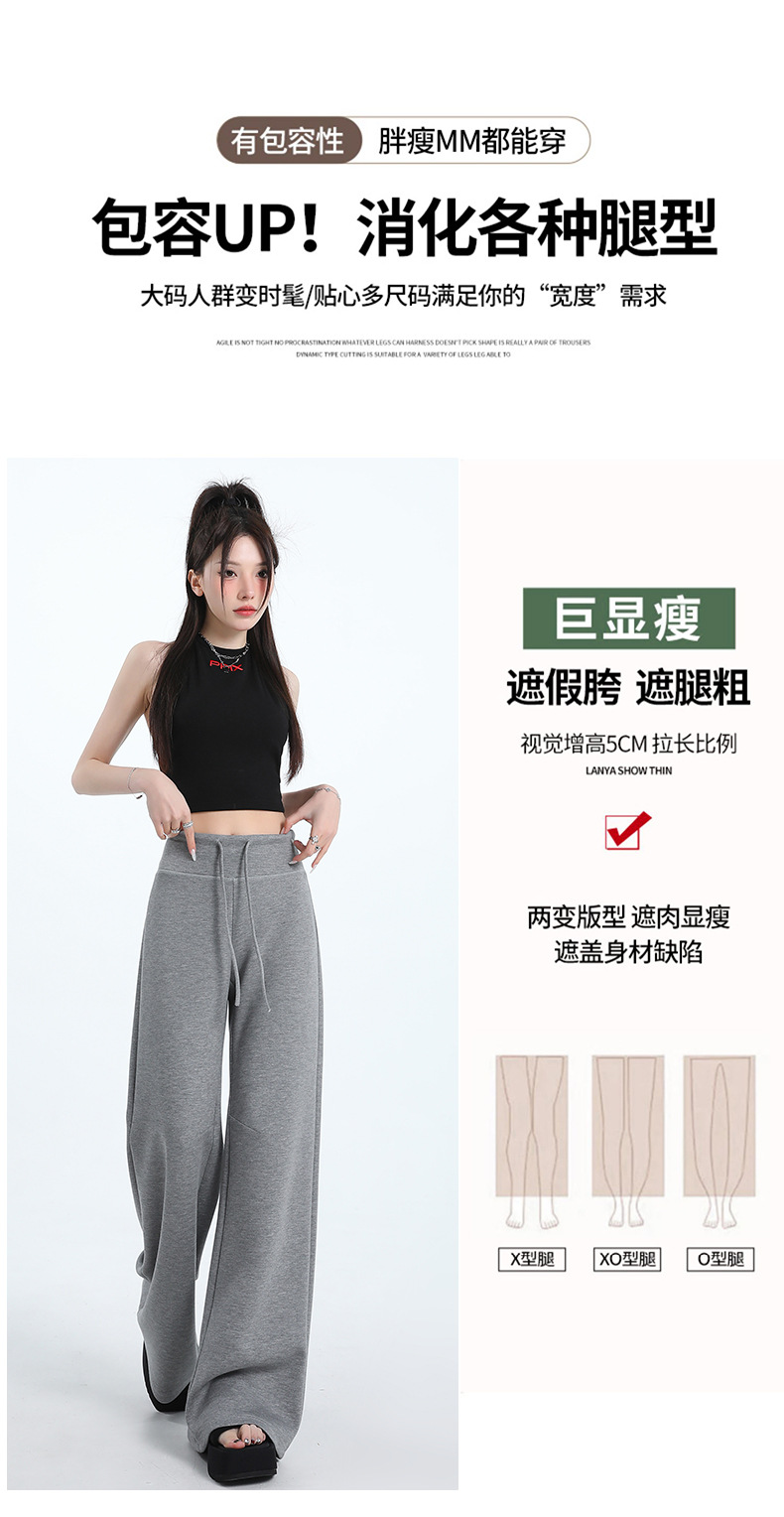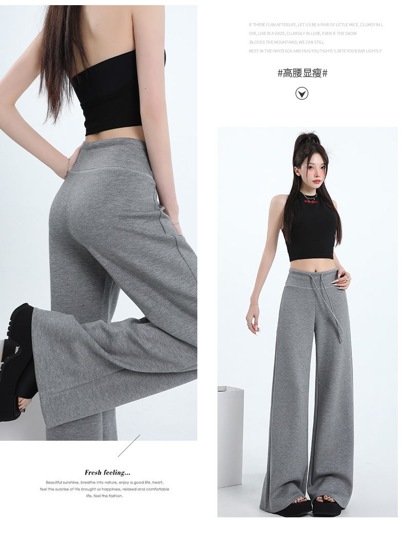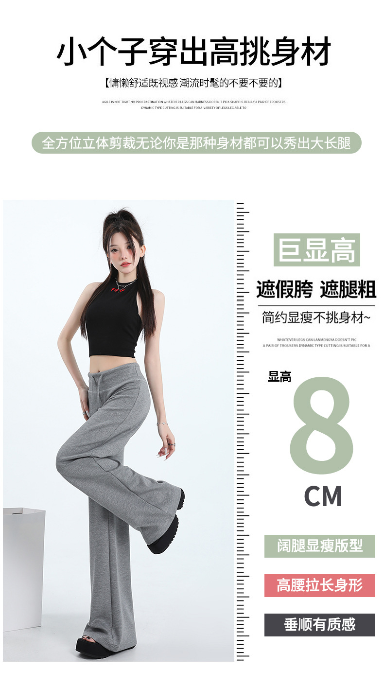 여성용 와이드 레그 스포츠 바닥 길이 바지 2025 봄 신상 하이 웨이스트 슬리밍 루즈 스트레이트 드레이프 캐주얼 하이 스타일 스웨트 팬츠