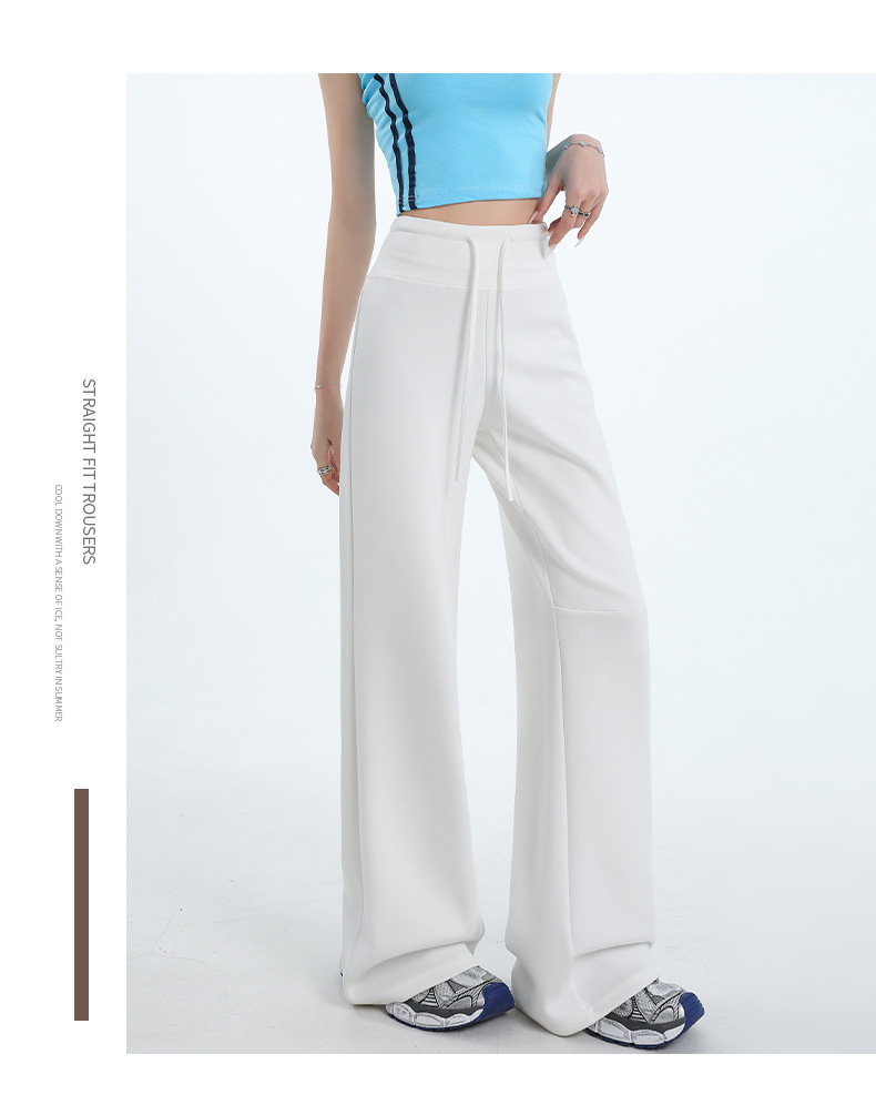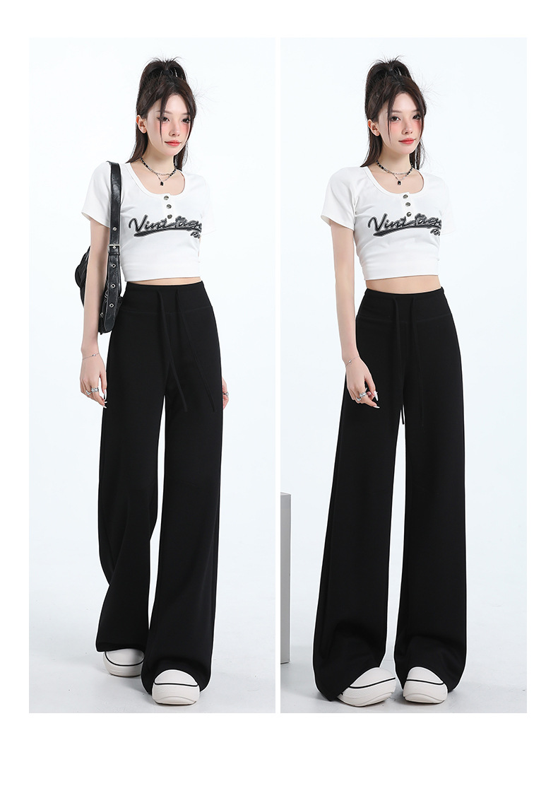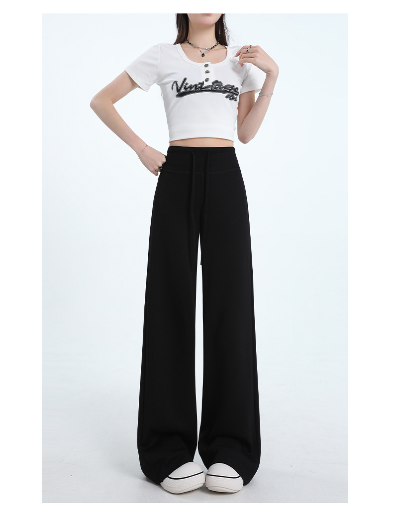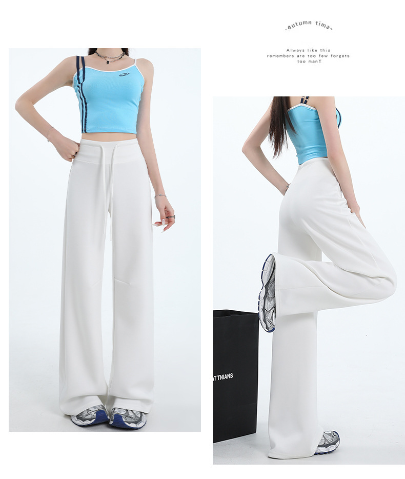 여성용 와이드 레그 스포츠 바닥 길이 바지 2025 봄 신상 하이 웨이스트 슬리밍 루즈 스트레이트 드레이프 캐주얼 하이 스타일 스웨트 팬츠