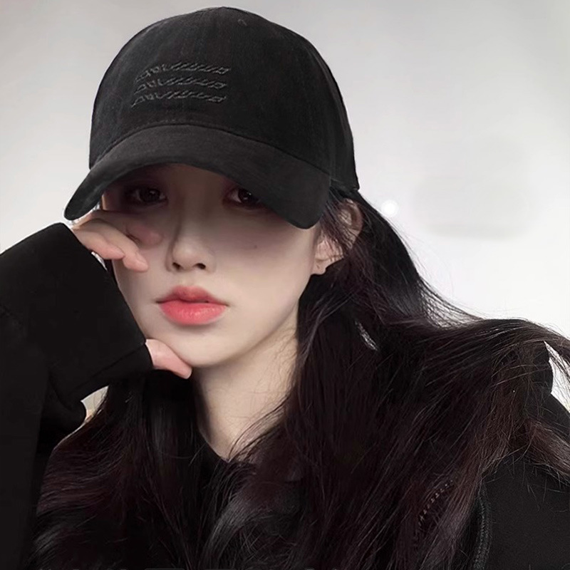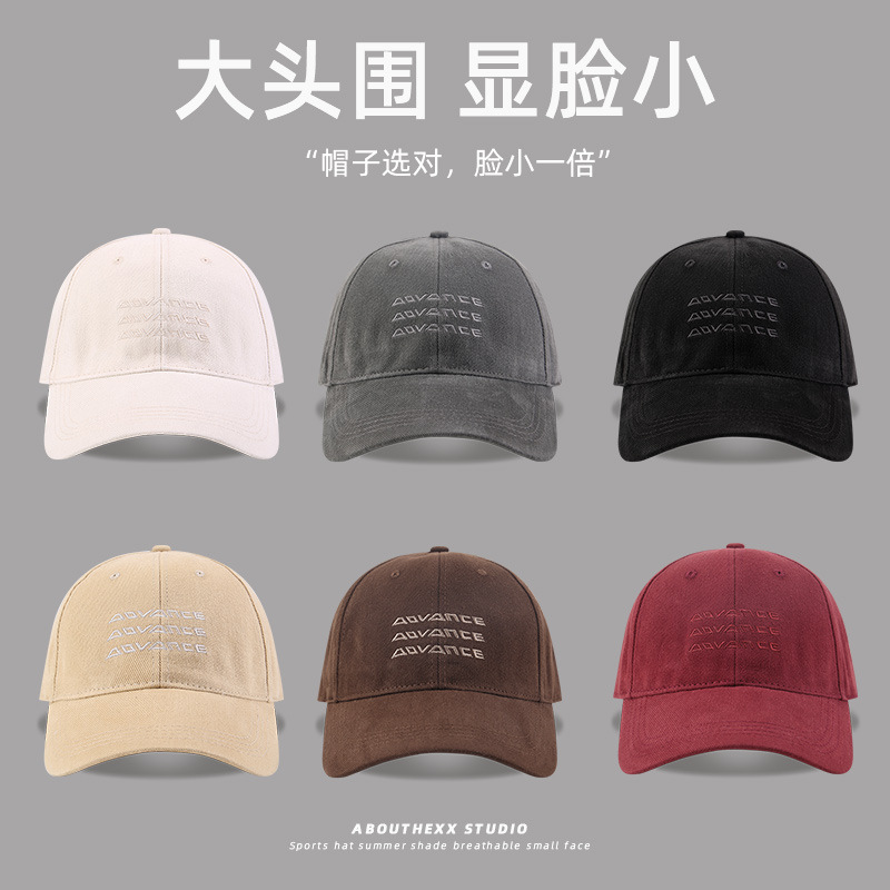 빅 헤드 캡 여자 2025 뉴 레트로 워시 모직 야구 모자 한국식 올 매치 선 스크린 와이드 브림 캡