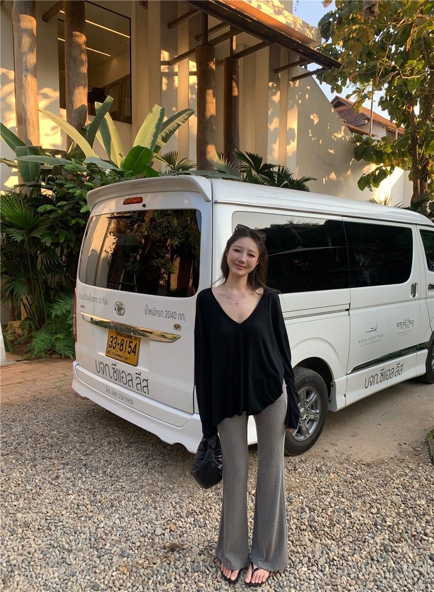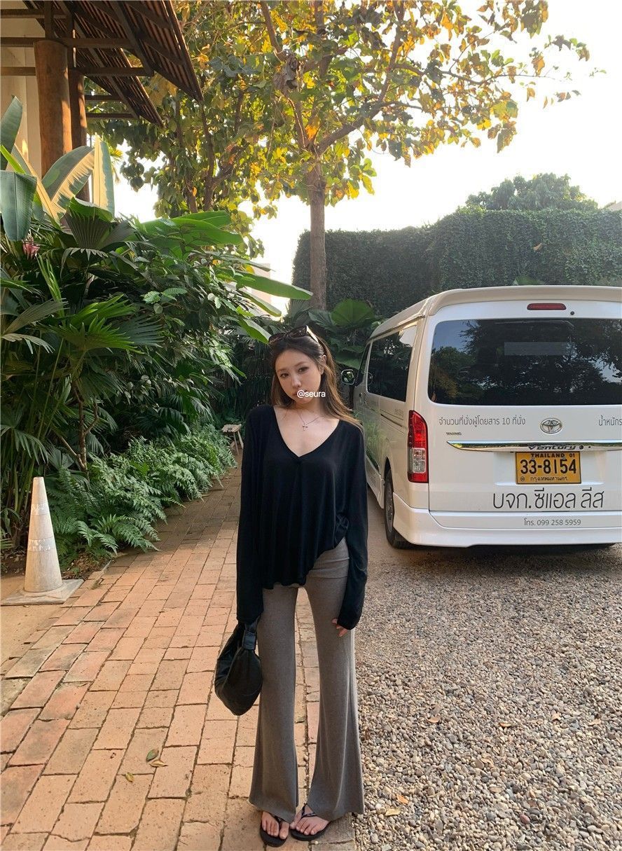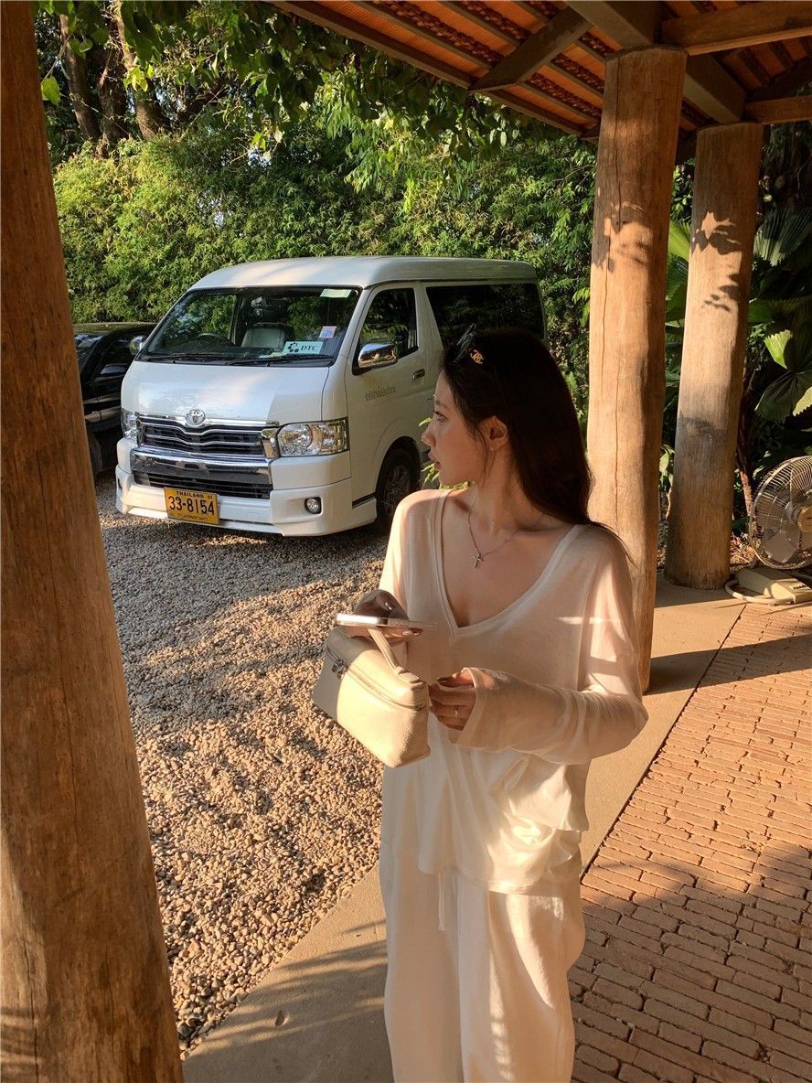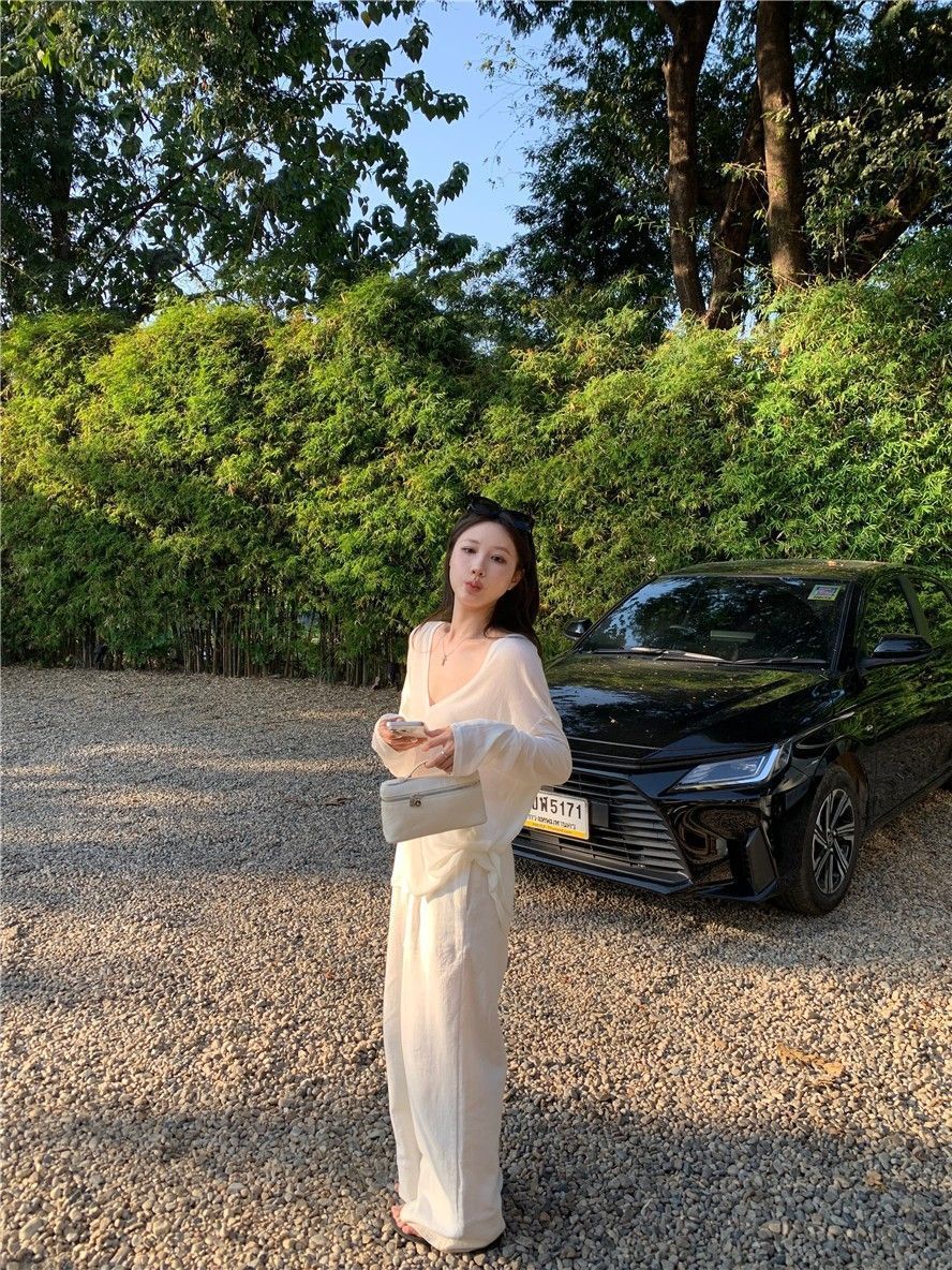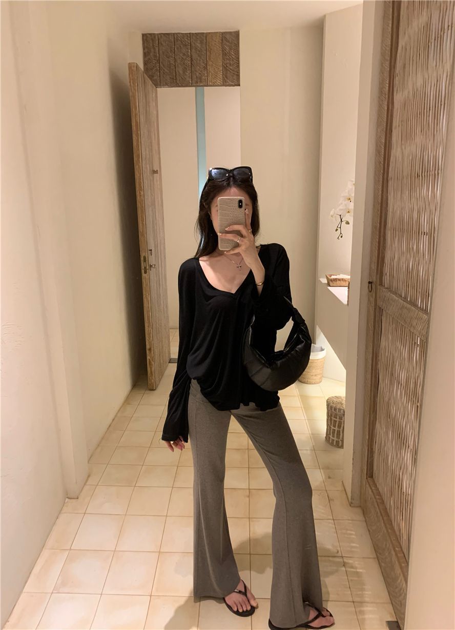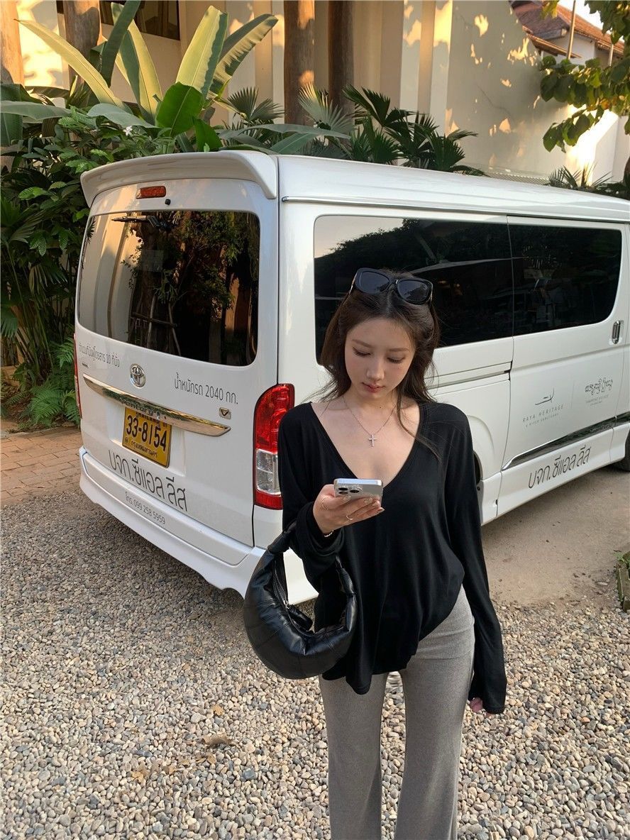 게으른 스타일 흰색 긴팔 티셔츠 여성 봄과 여름 새로운 디자인 센스 V 넥 루즈 스킨 스크린 베이스 블라우스 탑