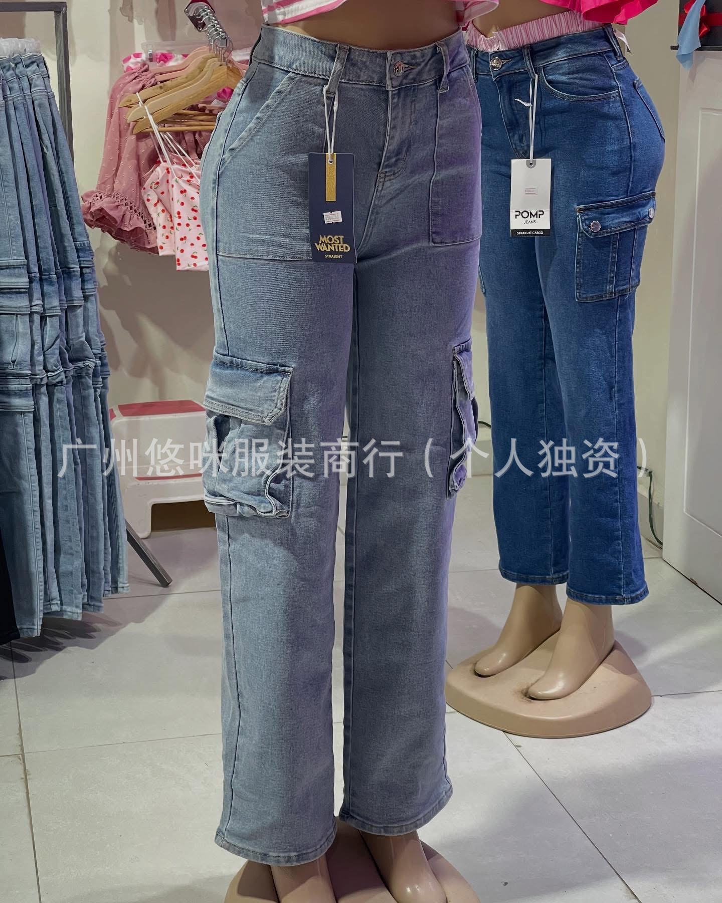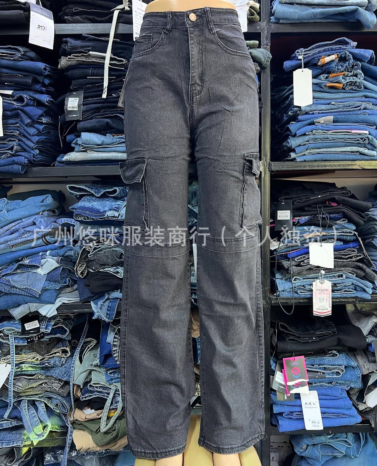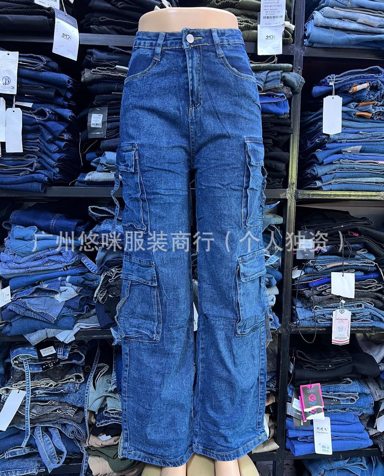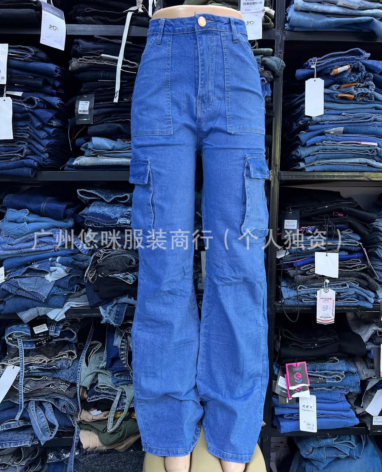 포켓 청바지 하이 퀄리티 숙녀 포켓 툴링 바지 도매화물 청바지 도매