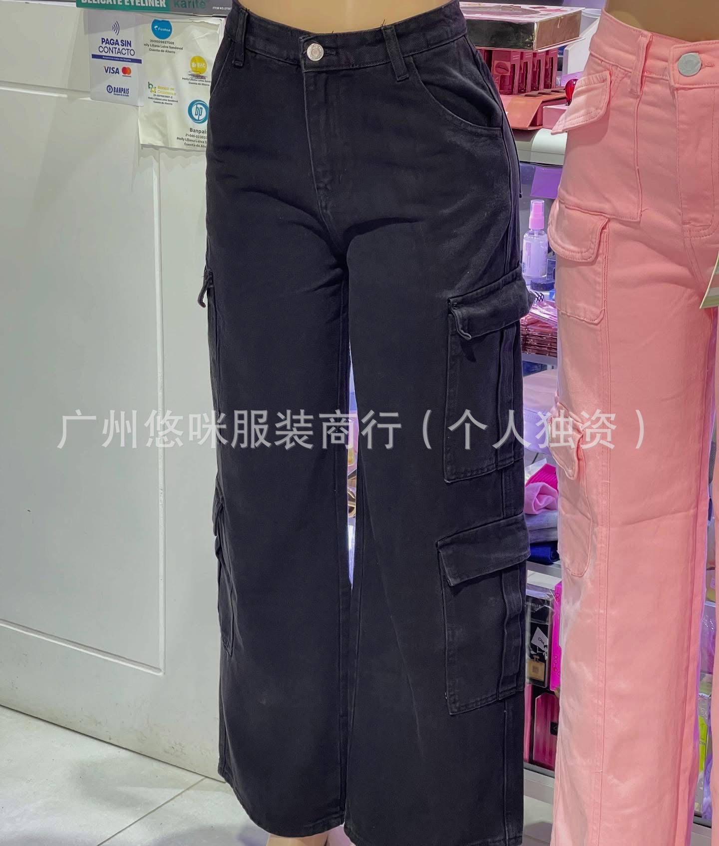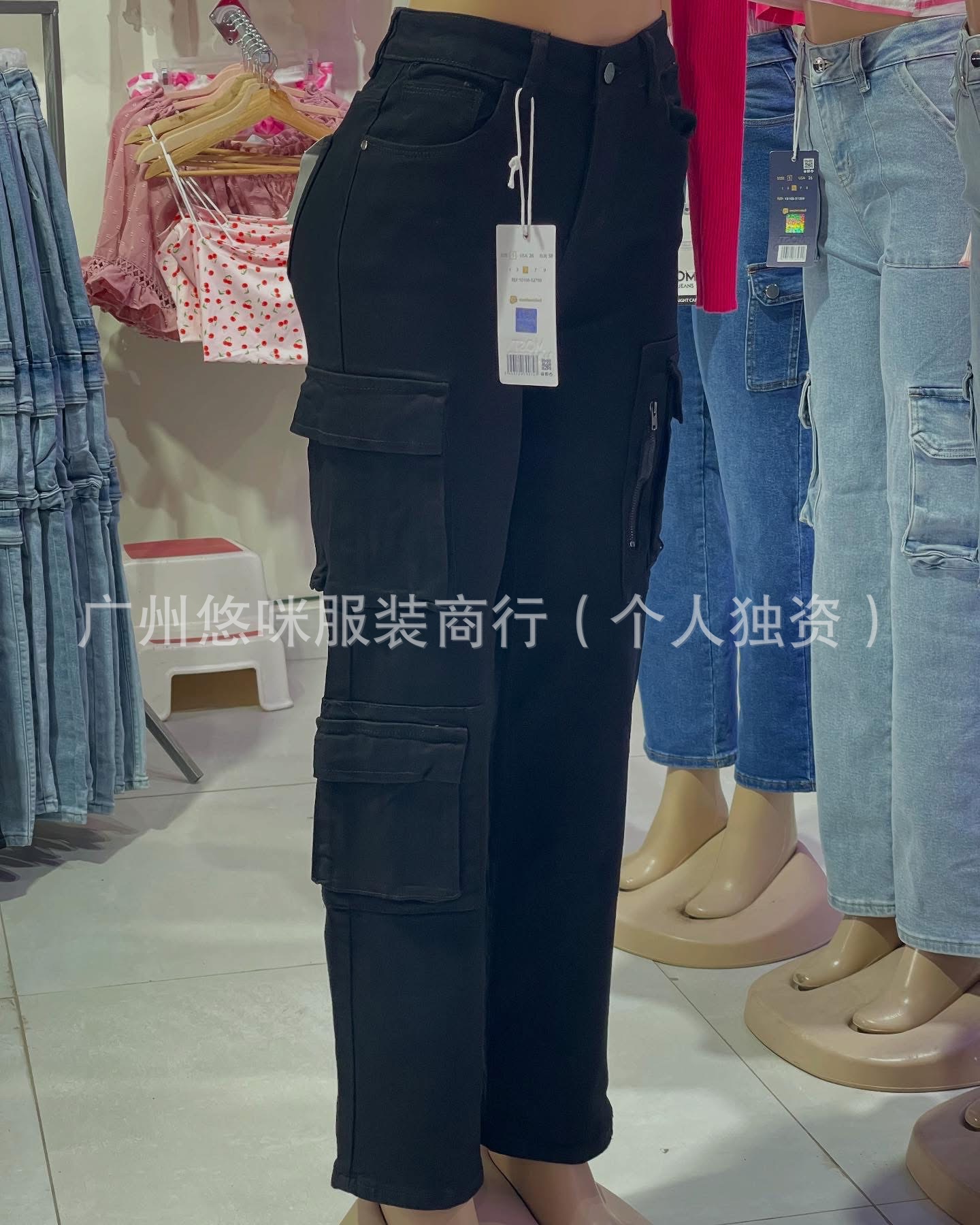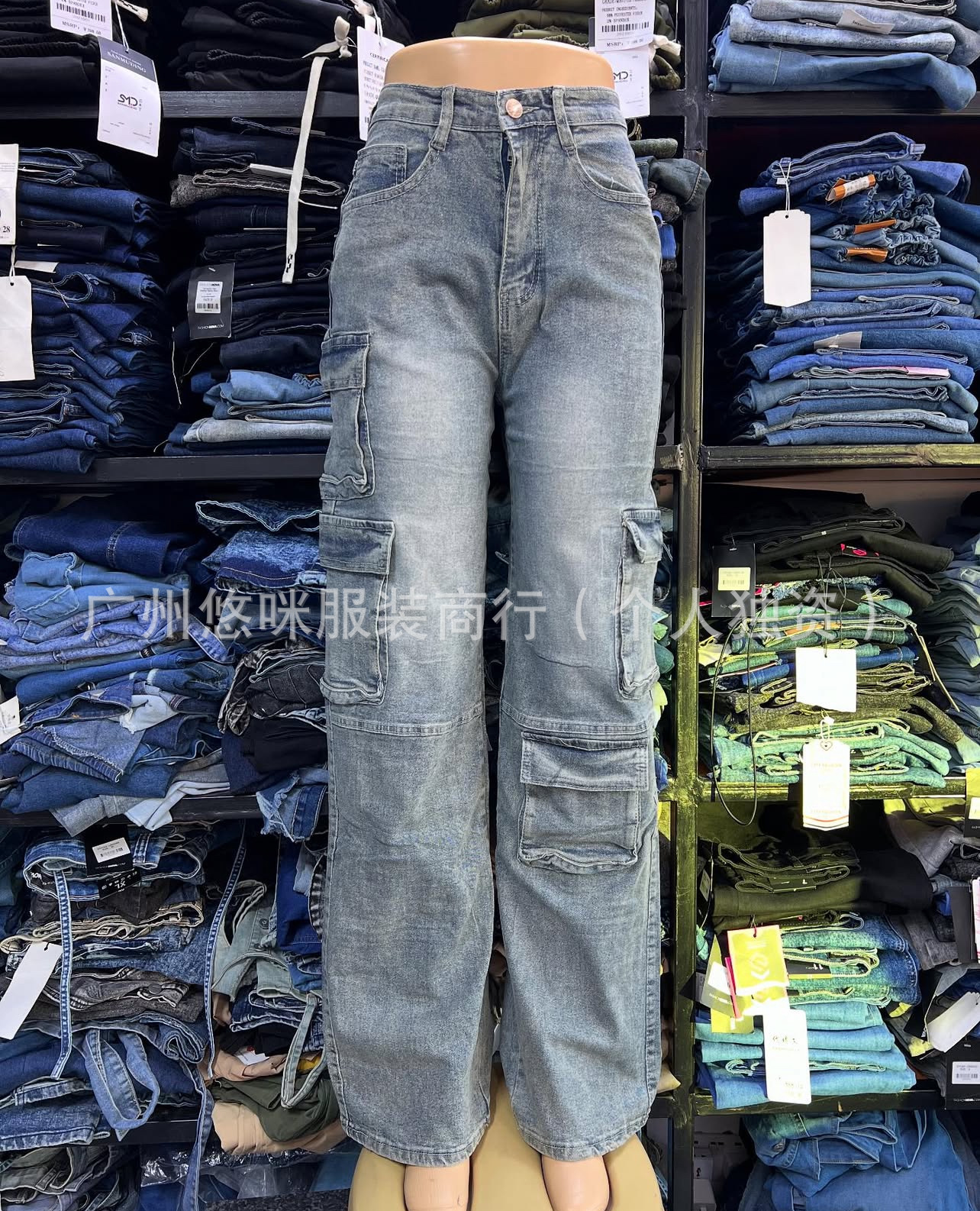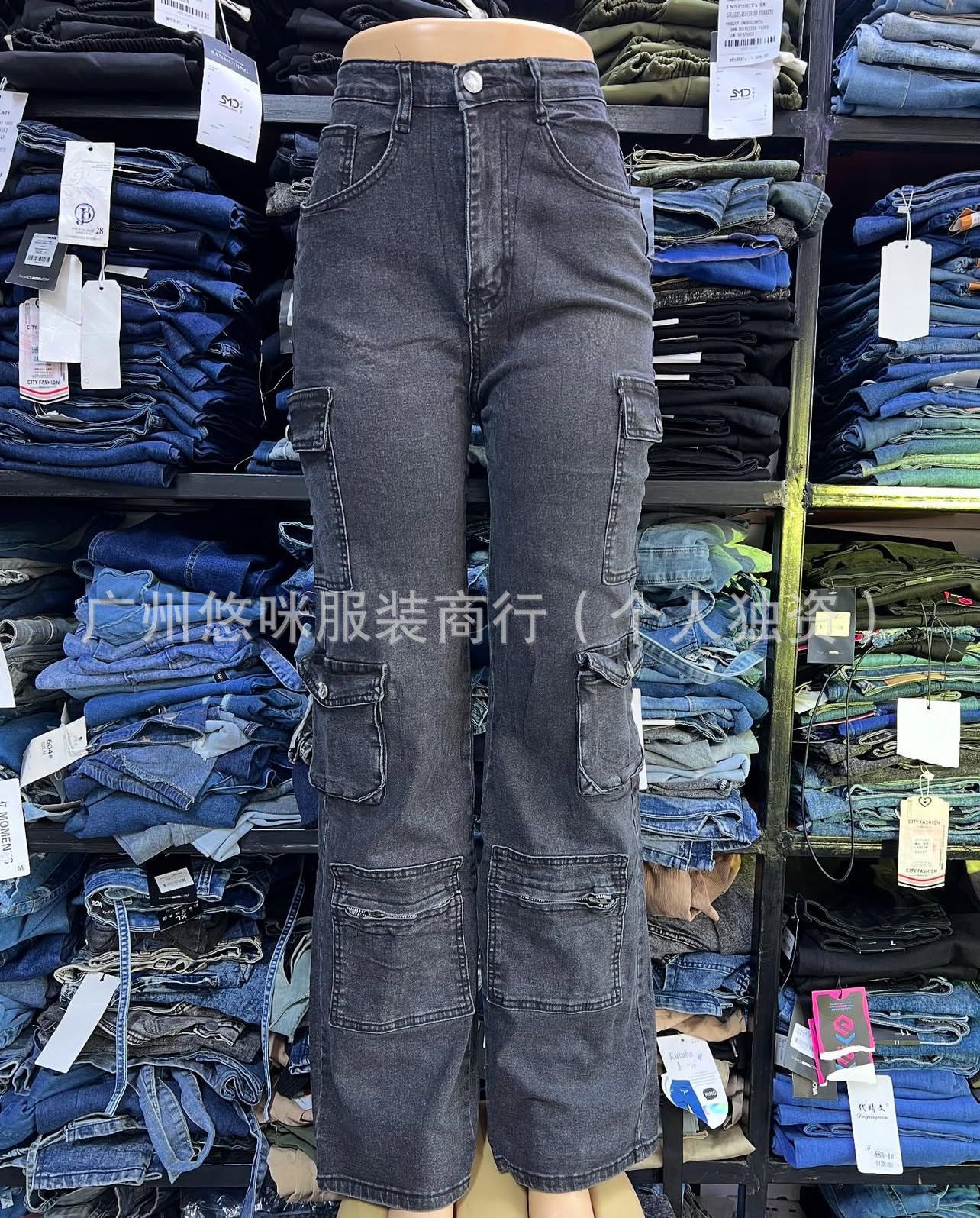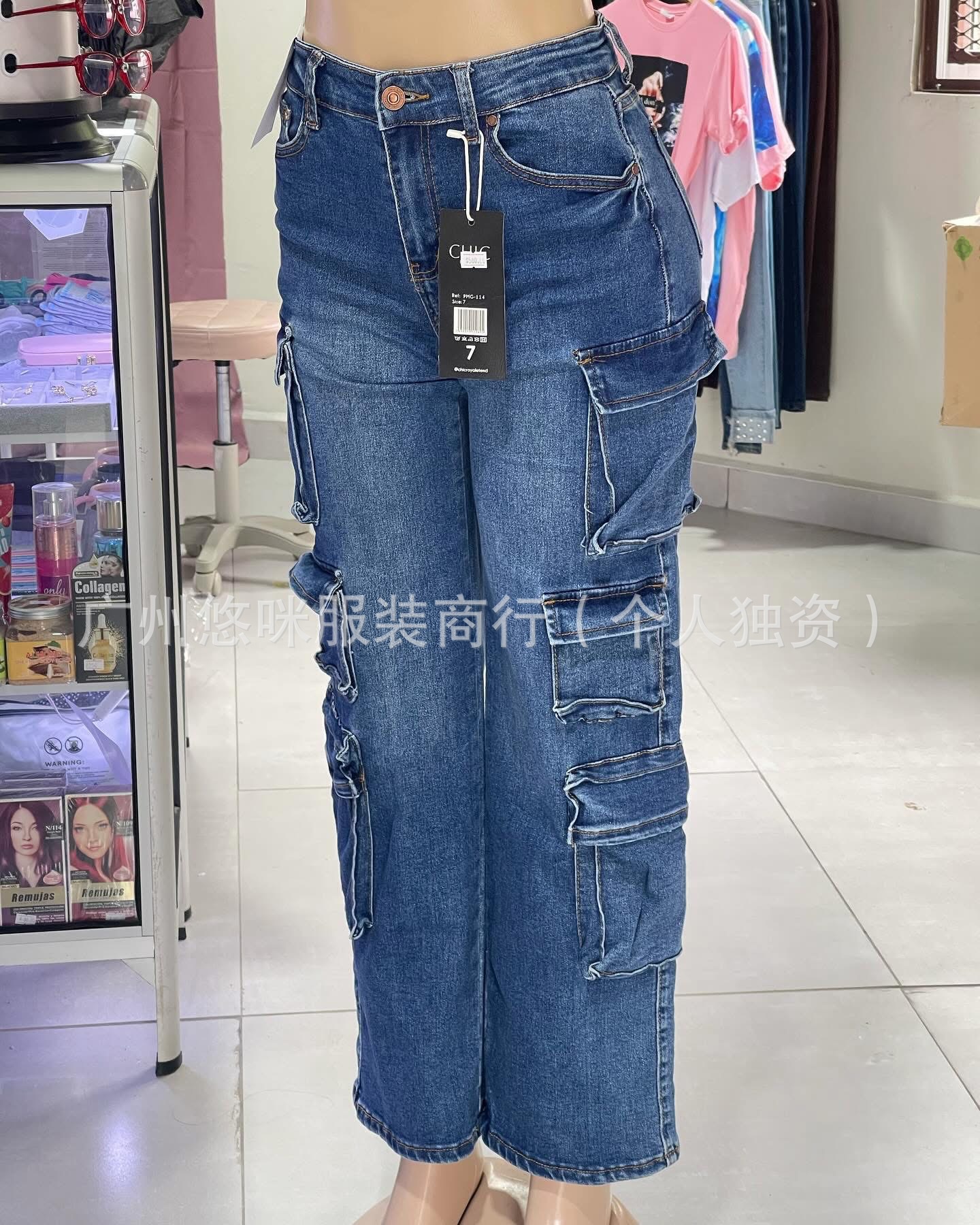 포켓 청바지 하이 퀄리티 숙녀 포켓 툴링 바지 도매화물 청바지 도매
