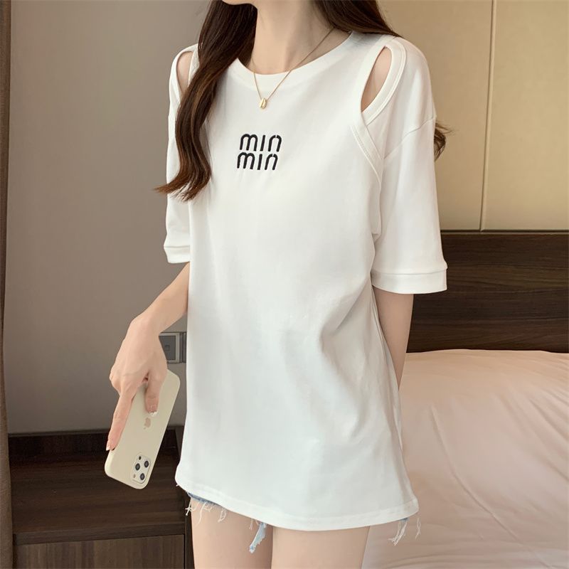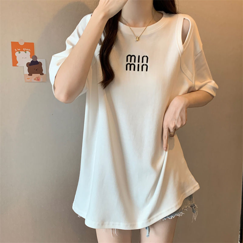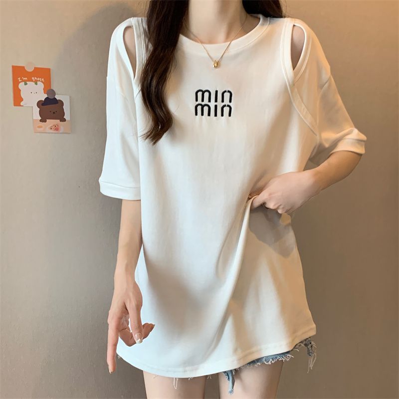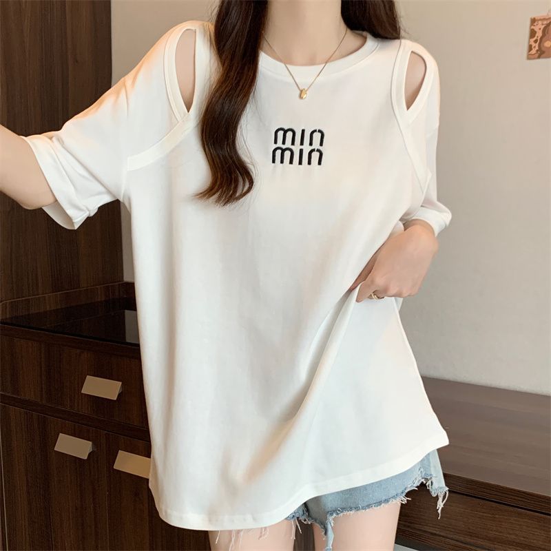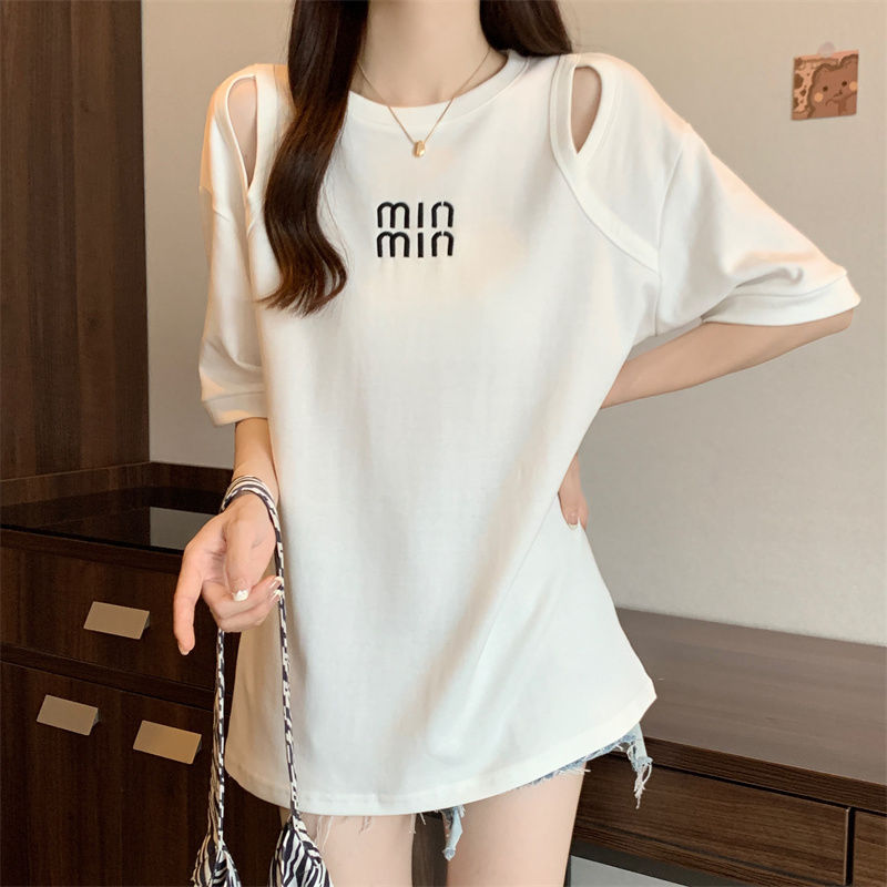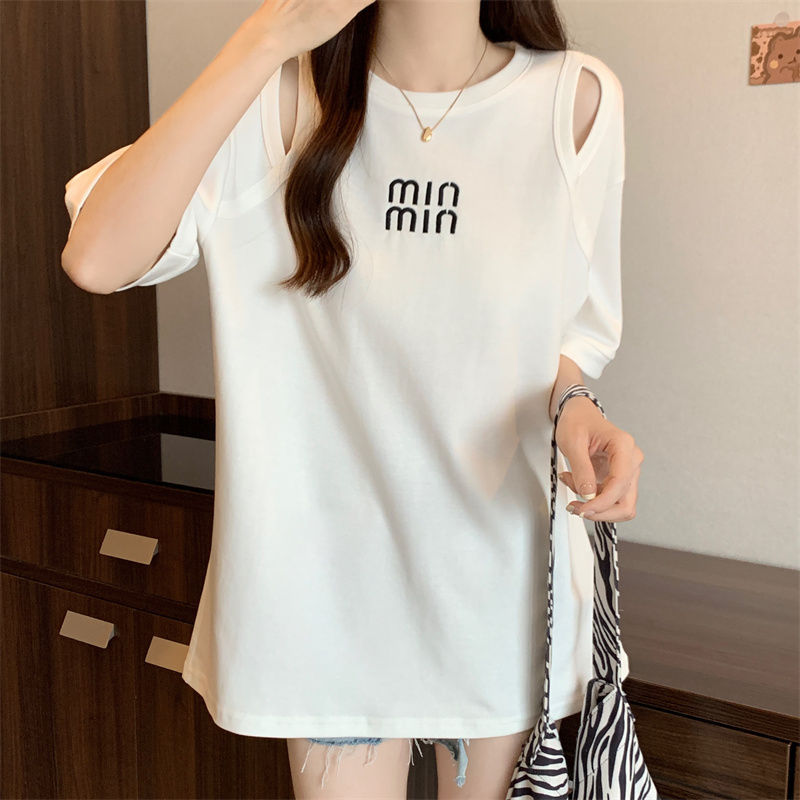 중공 반팔 티셔츠 여성 여름 신형 한국식 중장 디자인 센스베이스 셔츠 플러스 사이즈 슬림 자수 탑