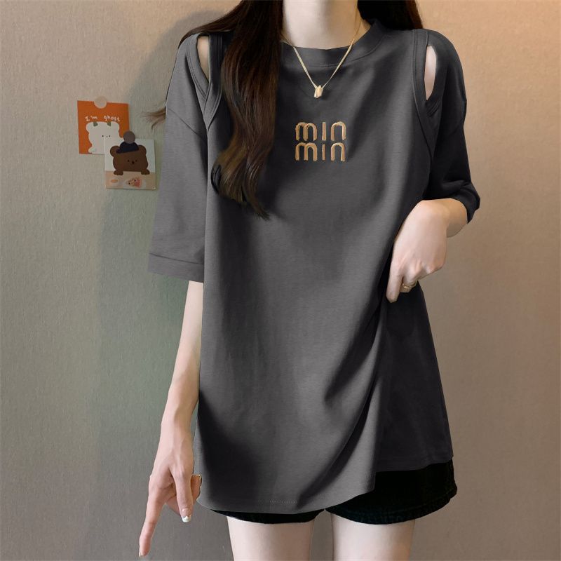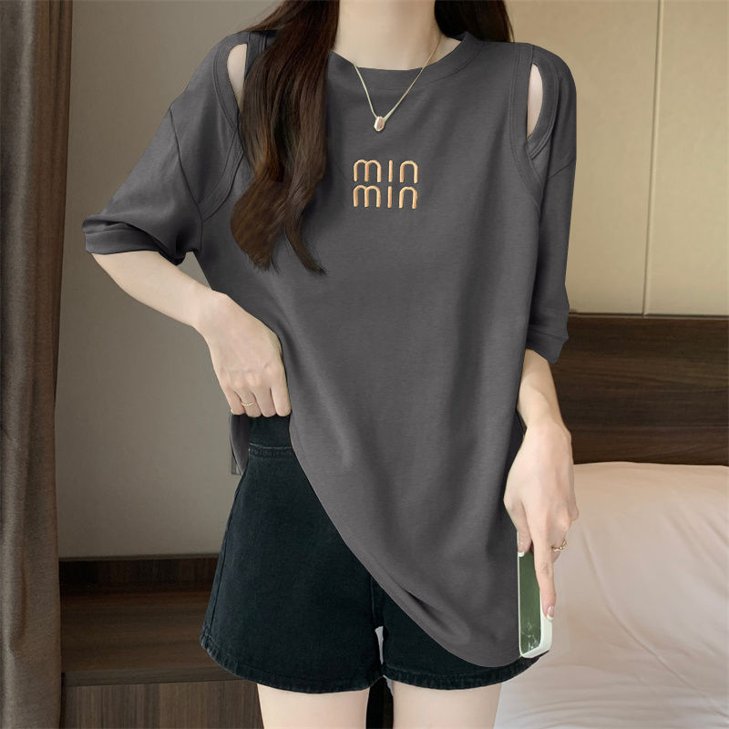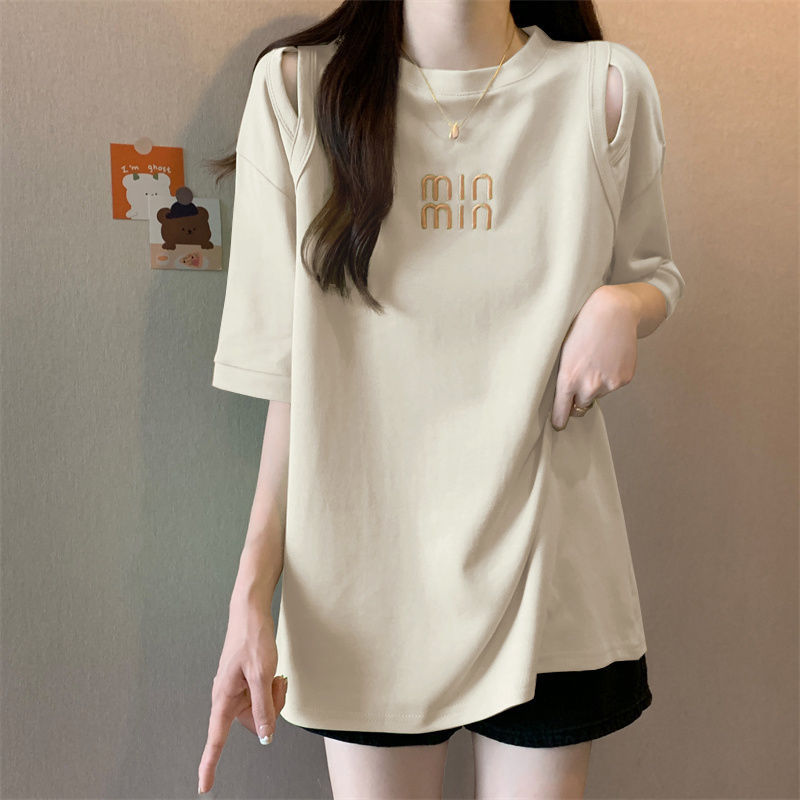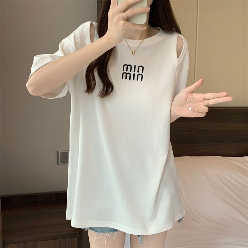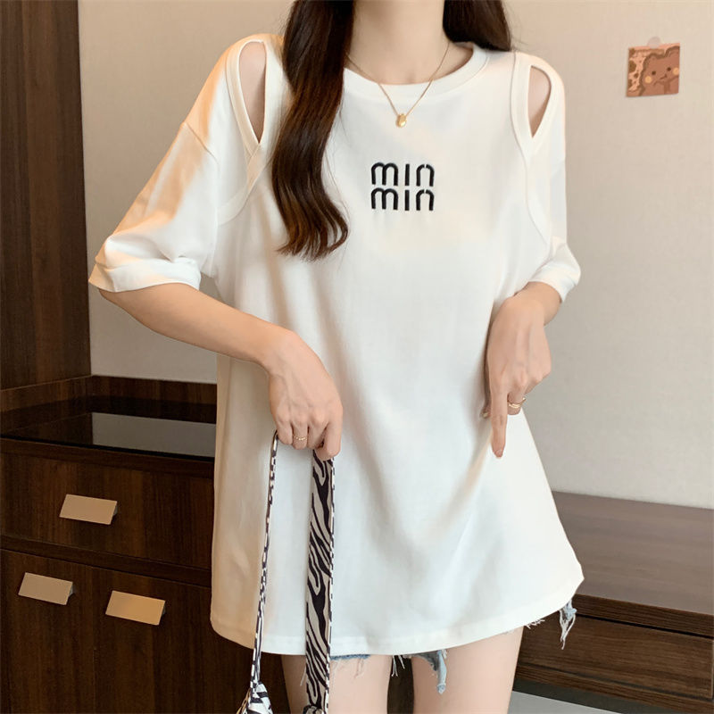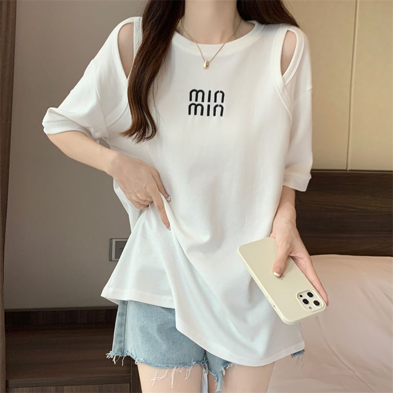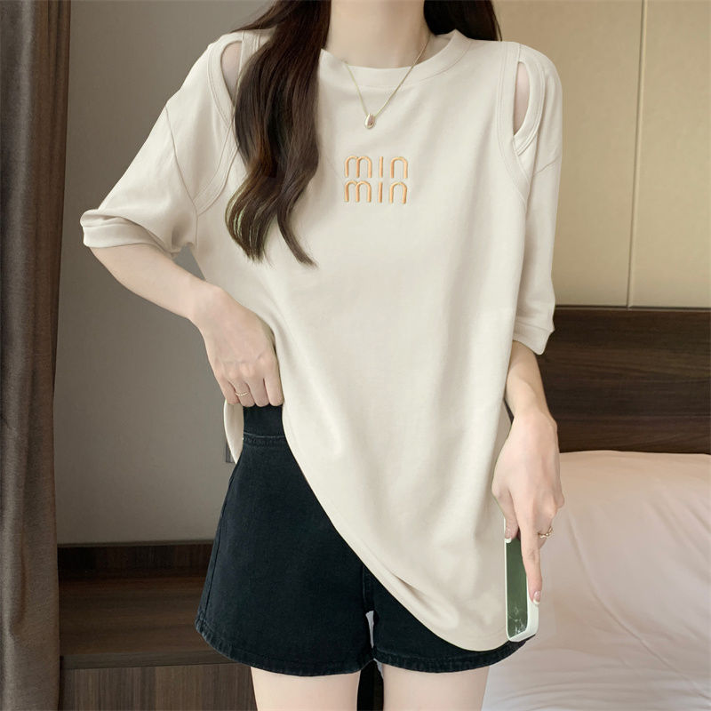 중공 반팔 티셔츠 여성 여름 신형 한국식 중장 디자인 센스베이스 셔츠 플러스 사이즈 슬림 자수 탑