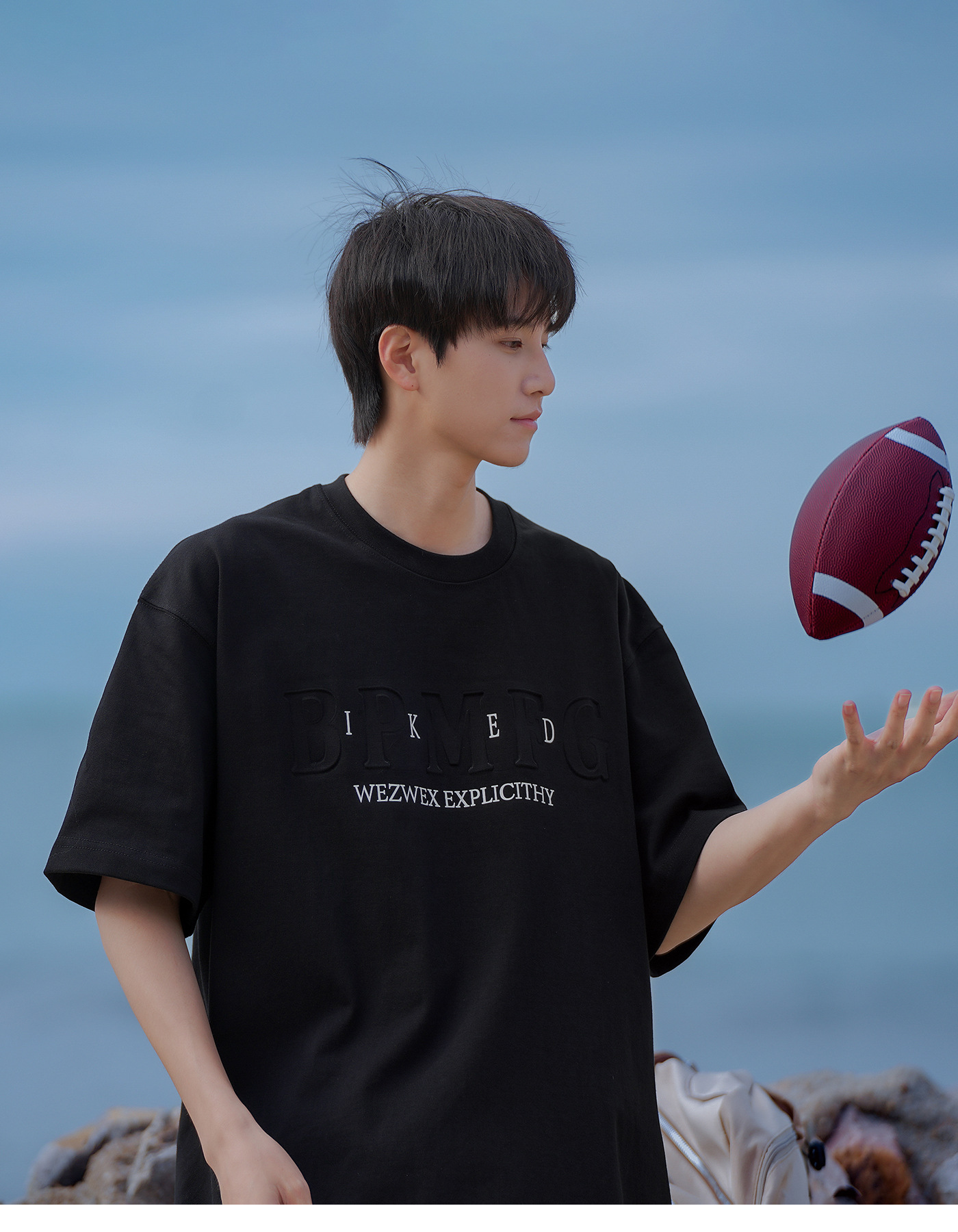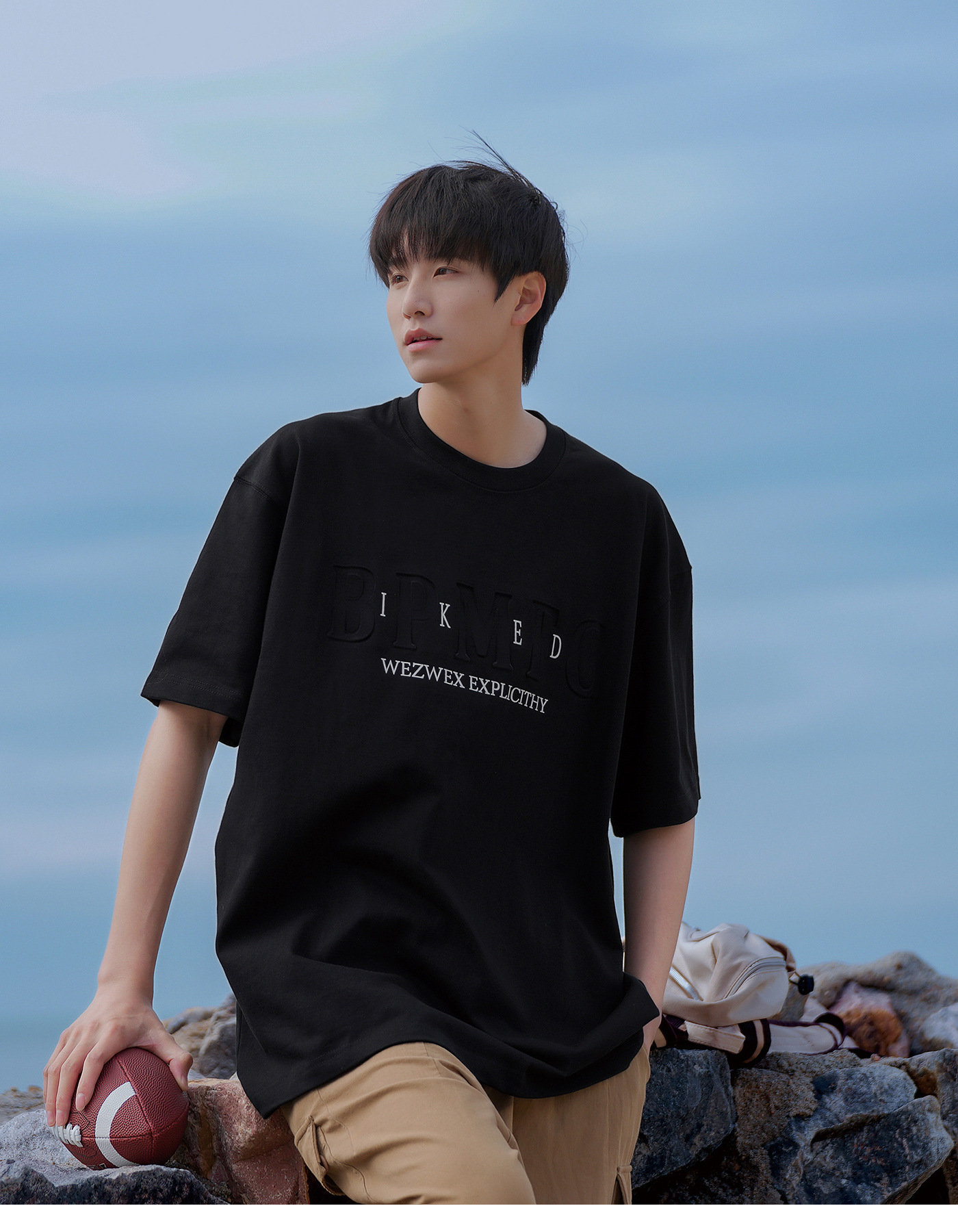 공장 직접 공급 270g 무거운 작은 목선 짧은 소매 티셔츠 남자 2025 여름 미국 소년 반소매 재킷 남성