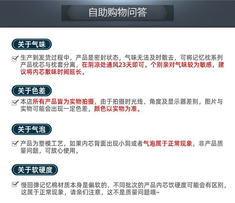 | 填充物 | 记忆棉 | 枕芯面料 | 水晶绒 |