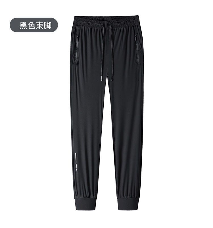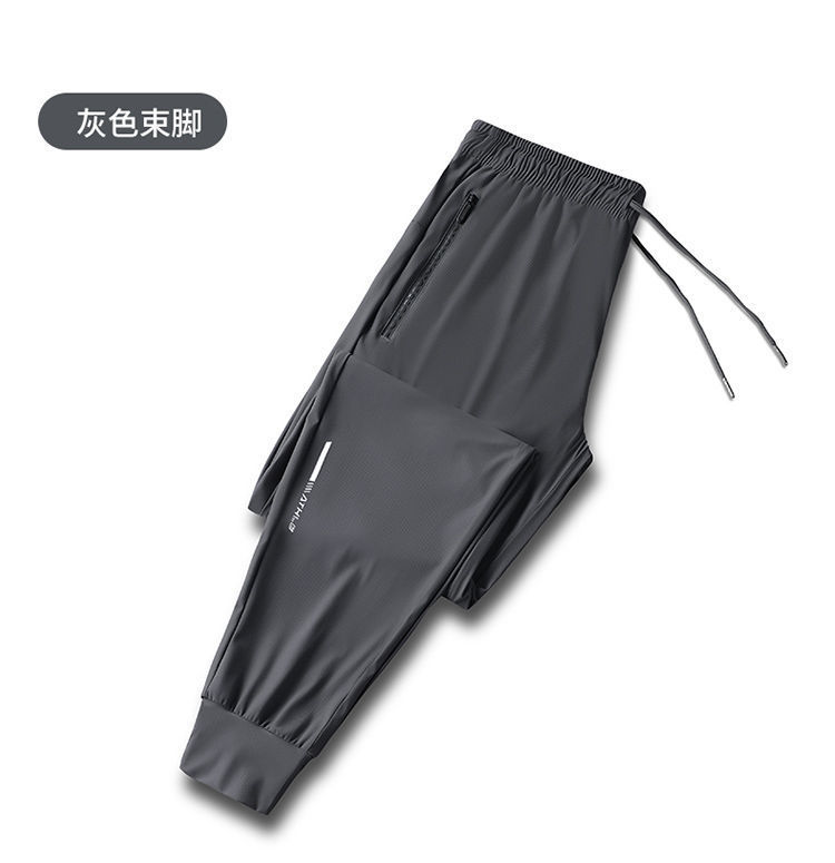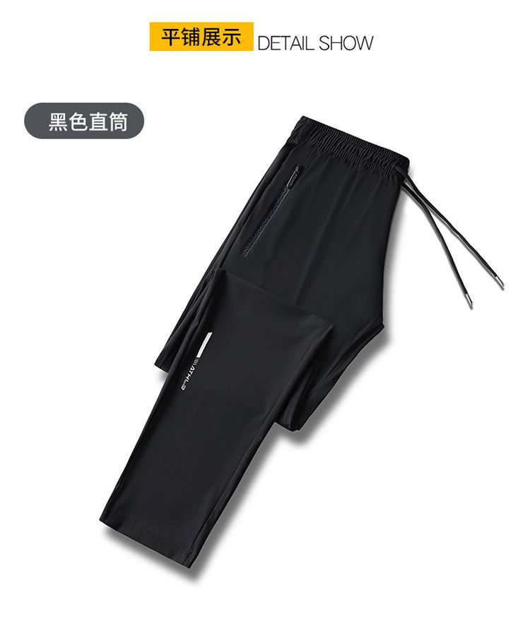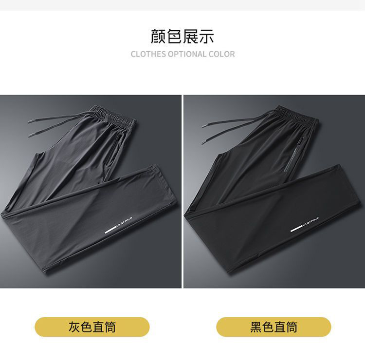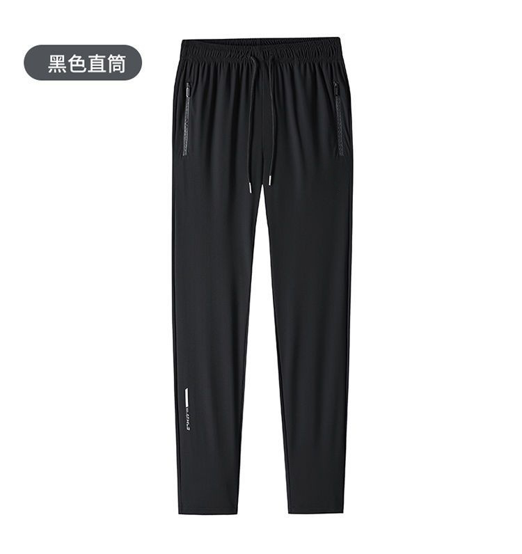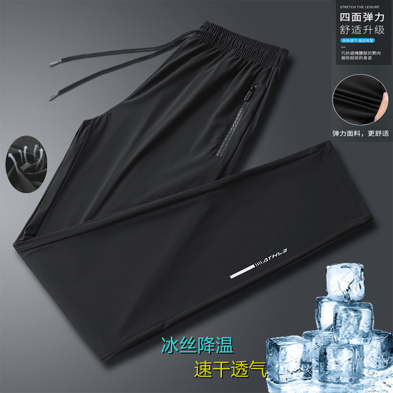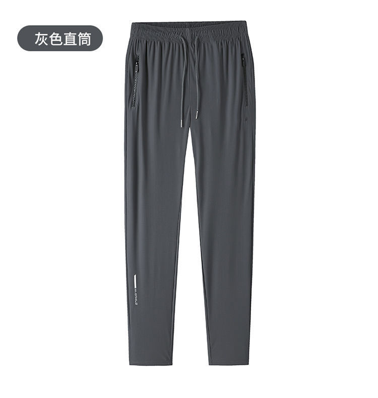 아이스 실크 에어컨 바지 여름 얇은 남성용 대형 루즈 통기성 속건 캐주얼 스포츠 스트레이트 레그 타이 롱 팬츠