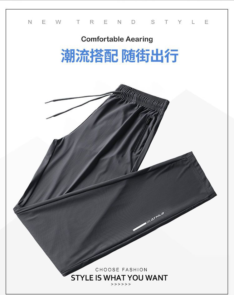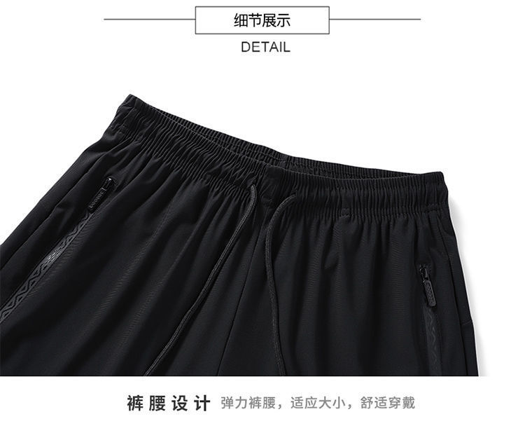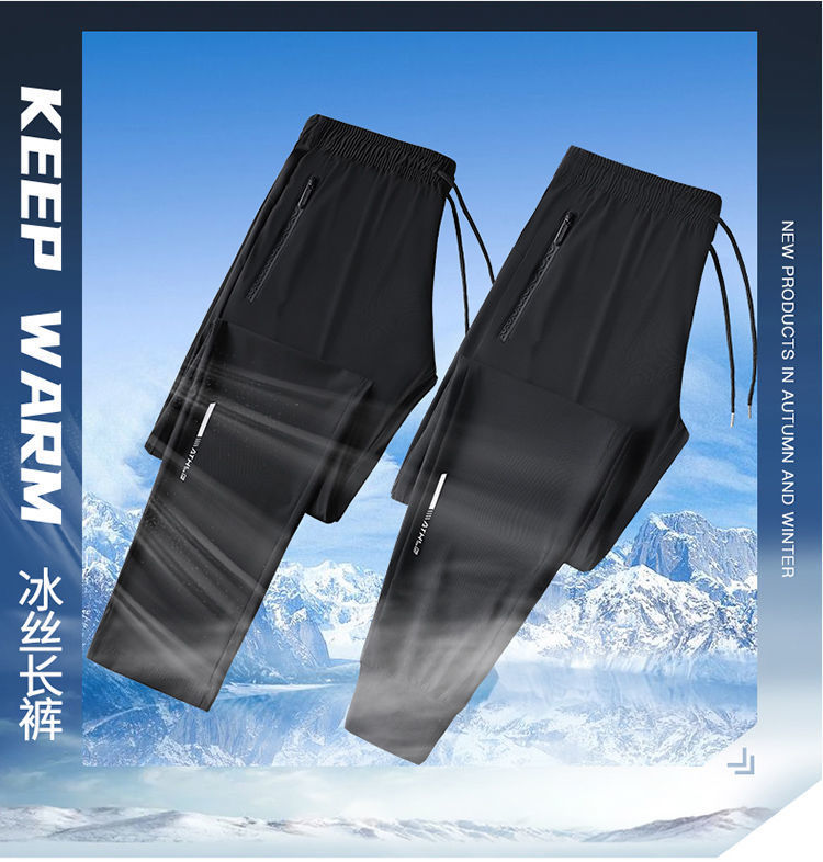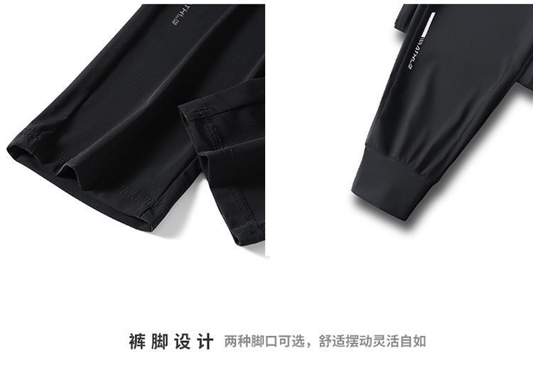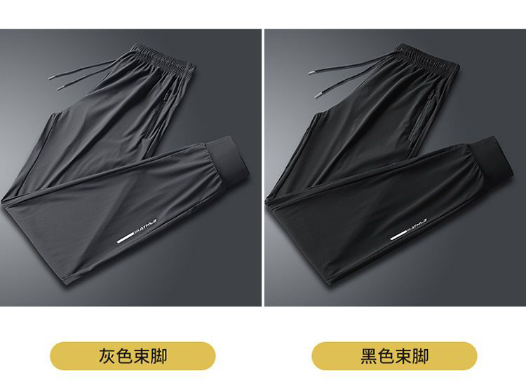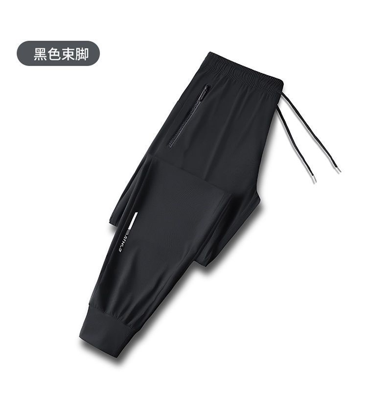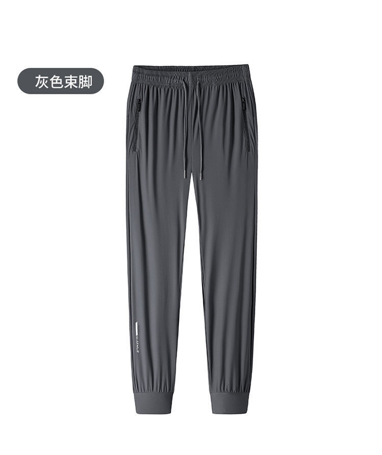 아이스 실크 에어컨 바지 여름 얇은 남성용 대형 루즈 통기성 속건 캐주얼 스포츠 스트레이트 레그 타이 롱 팬츠