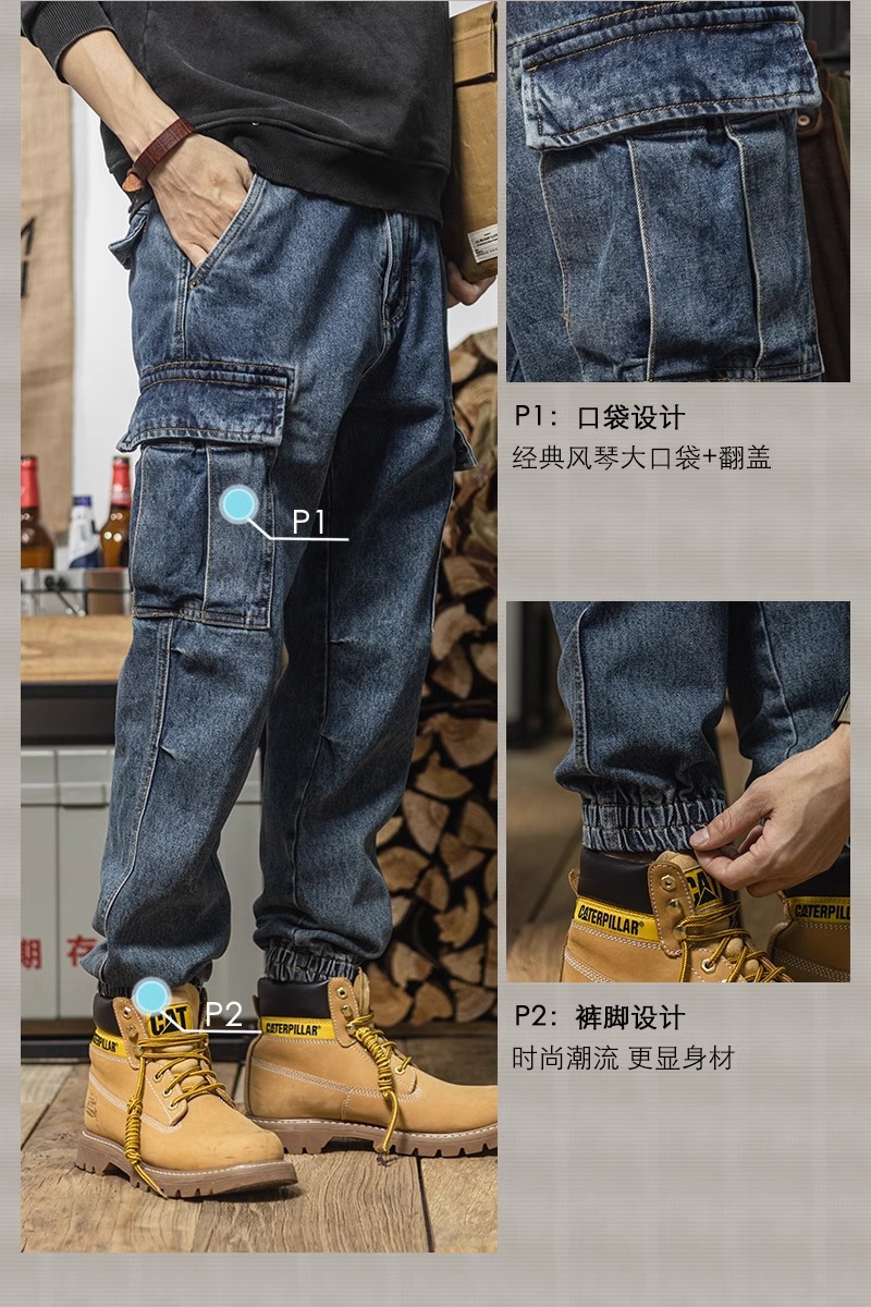 | 适用性别 | 男 | 牛仔裤男 | 美式复古工装牛仔裤男士春秋季潮牌宽松休闲直筒做旧潮流束脚长裤 |
