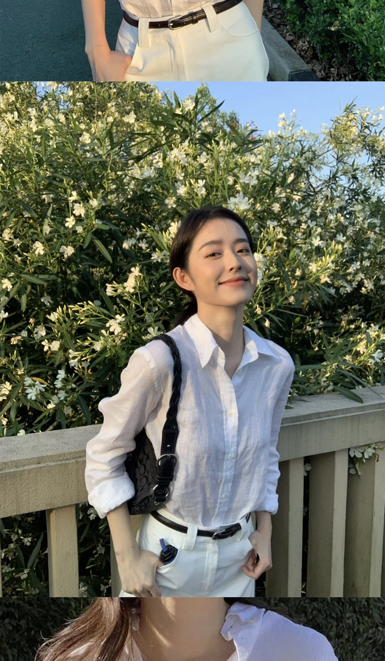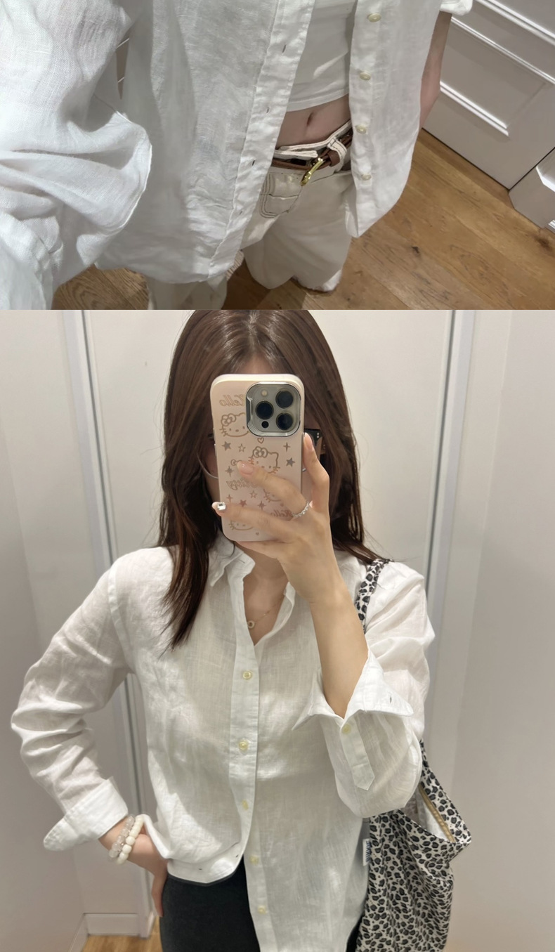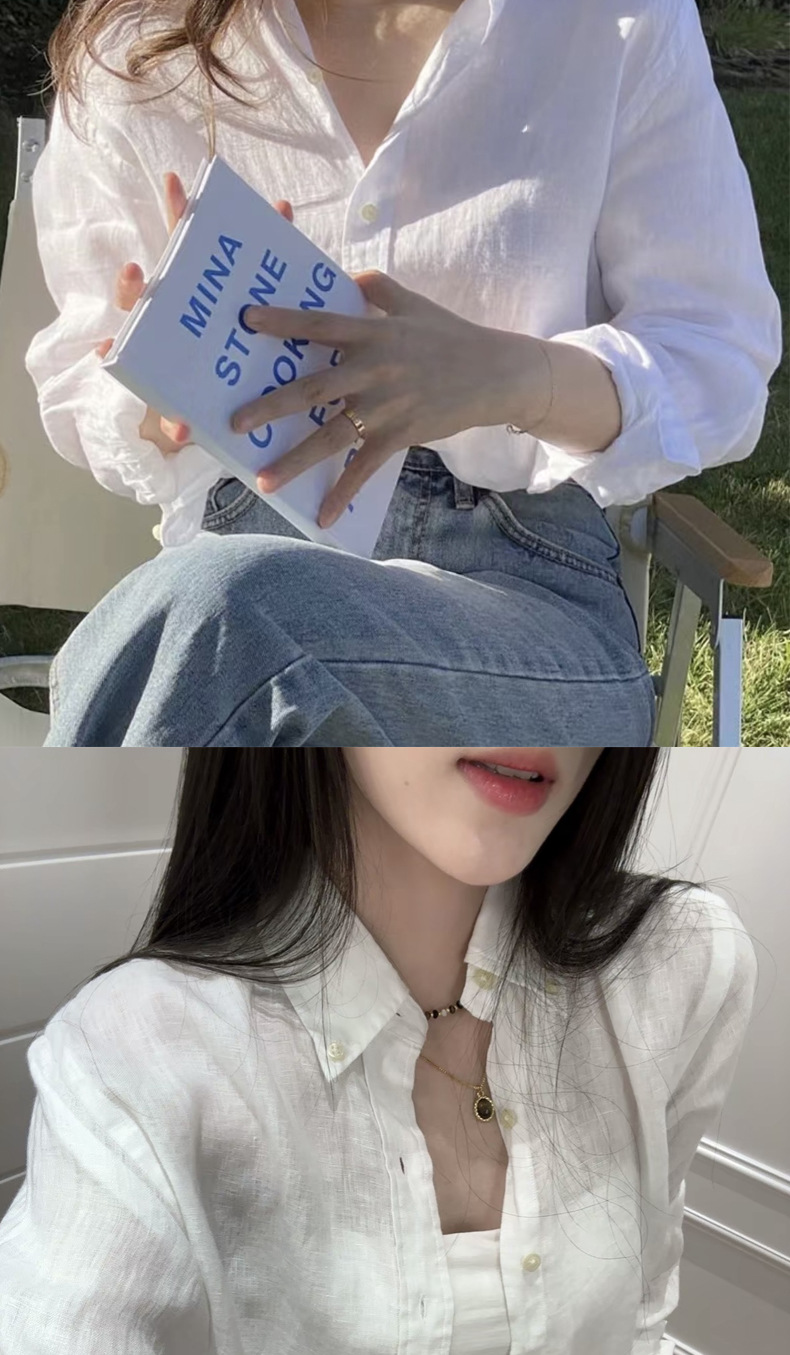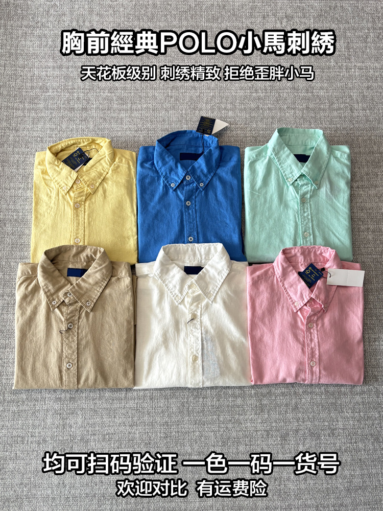 RL Raf [린넨 셔츠] 봄과 여름 클래식 단색 조랑말 자수 긴 소매 검증 가능한 스캔 코드 버전