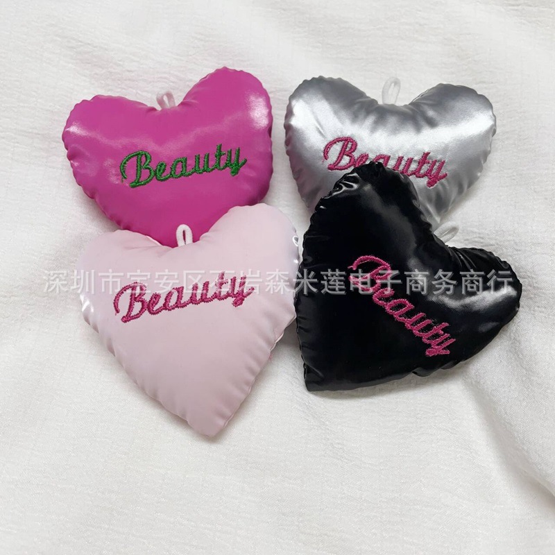 새로운 스타일의 자수 광택 뷰티 캔디 컬러 복숭아 하트 펜던트 쥬얼리 액세서리 트렌디 가방 키 체인 펜던트