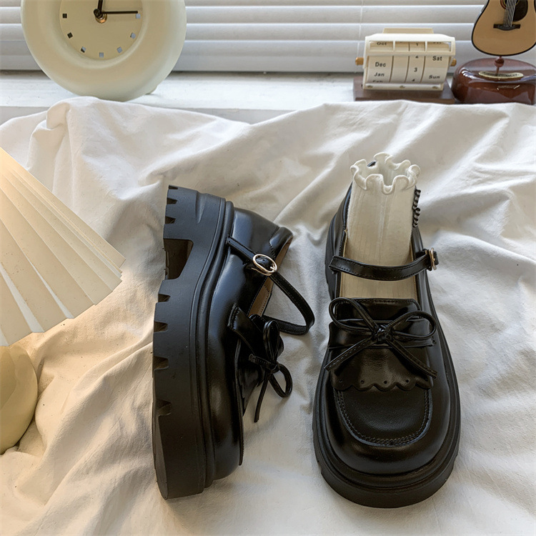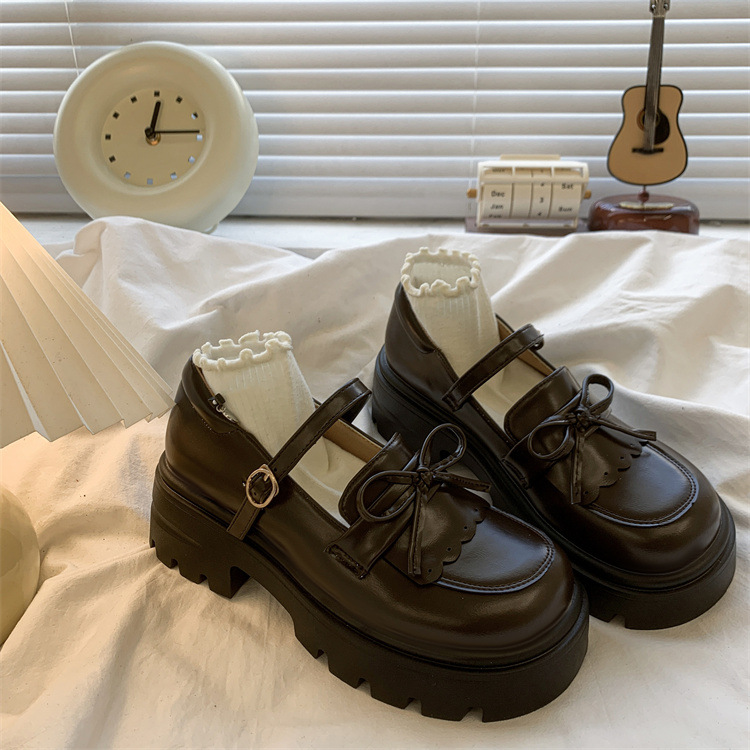 Lefu 아카데미 스타일 원피스 귀여운 올 매치 싱글 레이어 신발 2025 새로운 봄과 가을 두꺼운 힐 두꺼운 단독 높이 증가 여성을위한 작은 가죽 신발