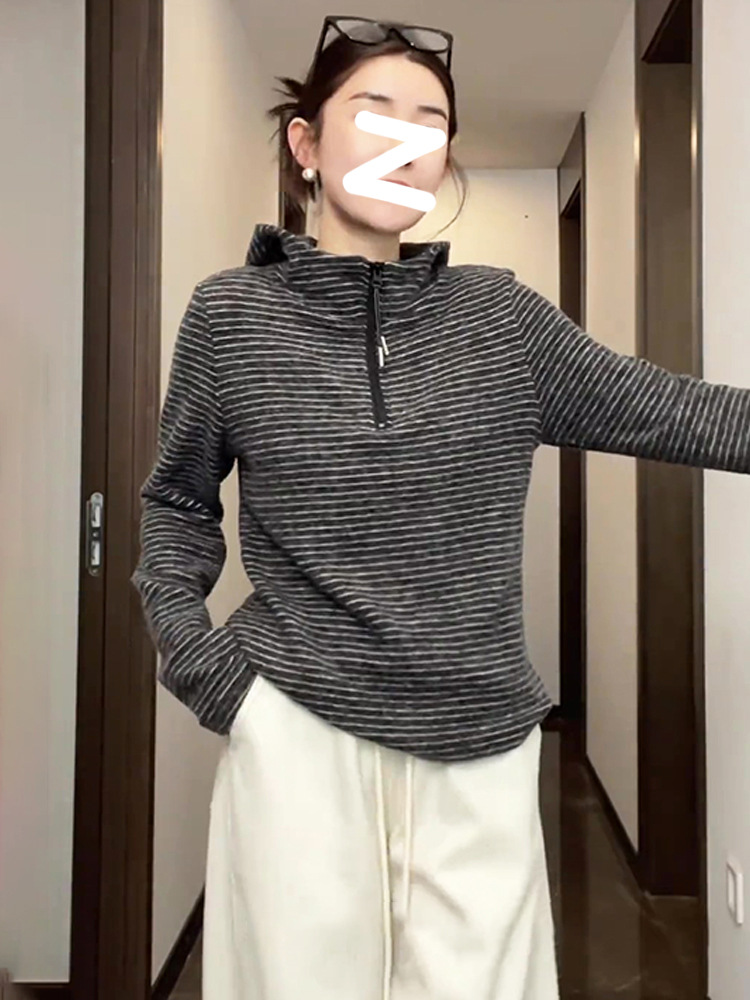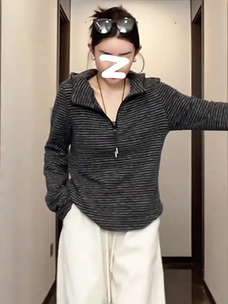 여성용 스트라이프 기모 긴팔 티셔츠 2025 신작 봄, 가을 후드 이너 레이어드 셔츠 디자인 서양식 탑