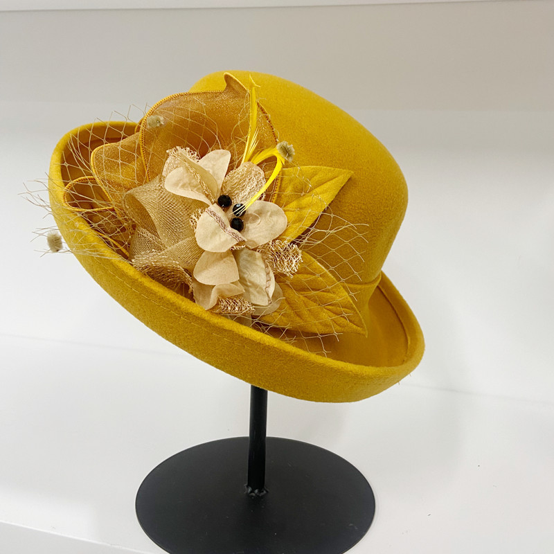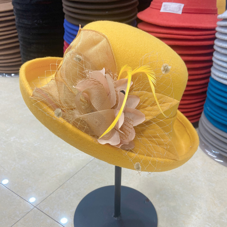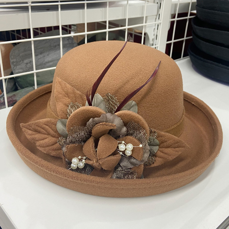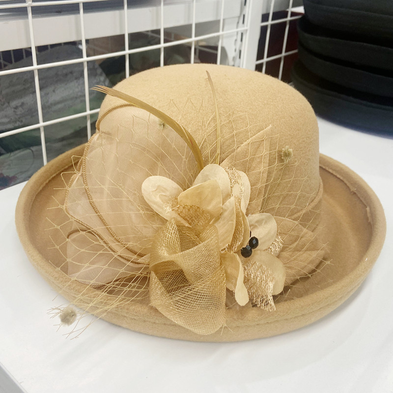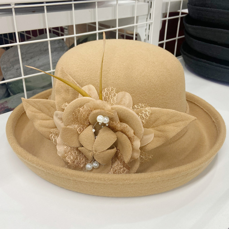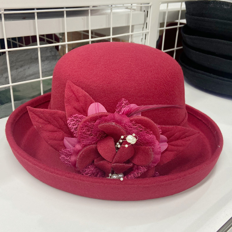 | 颜色 | 卷沿毛呢纱花-咖啡色, 卷沿毛呢纱花-酒红, 卷沿毛呢纱花-大红, 卷沿毛呢纱花-藏青, 卷沿毛呢纱花-粉色, 卷沿毛呢纱花-驼色, 卷沿毛呢纱花-焦糖色, 卷沿毛呢纱花-黑色, 卷沿毛呢纱花-黄色, 卷沿毛呢珠子花-黑色, 卷沿毛呢珠子花-焦糖色, 卷沿毛呢珠子花-酒红, 卷沿毛呢珠子花-驼色, 卷沿毛呢珠子花-粉色 | 功能 | 透气, 保暖 |