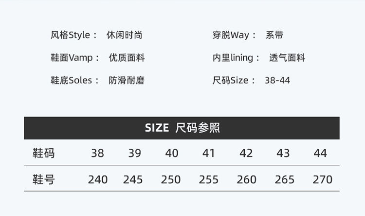 | 产品类别 | 运动风休闲鞋 | 适用年龄段 | 青年(18-40周岁) |