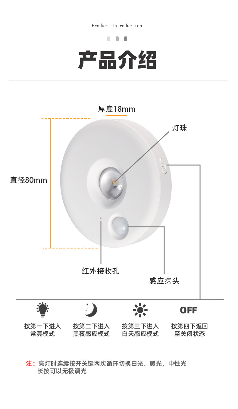 | 是否有专利 | 否 | 附加功能 | 感应, 夜灯, 氛围灯, 其他 |