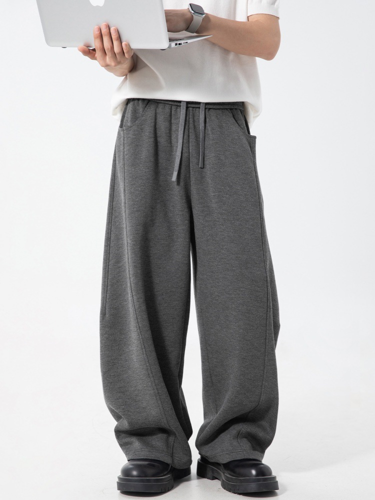 분할 스티치 질감 캐주얼 팬츠 남성용 가을 신상 실루엣 벤드 팬츠 드레이프 루즈핏 아메리칸 스포츠 팬츠