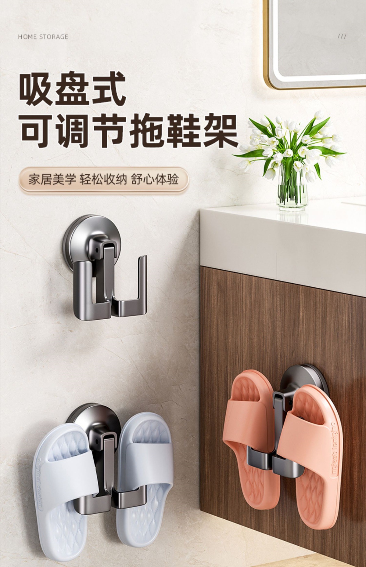 건그레이 흡착컵 공간 알루미늄 슬리퍼랙 [싱글팩]