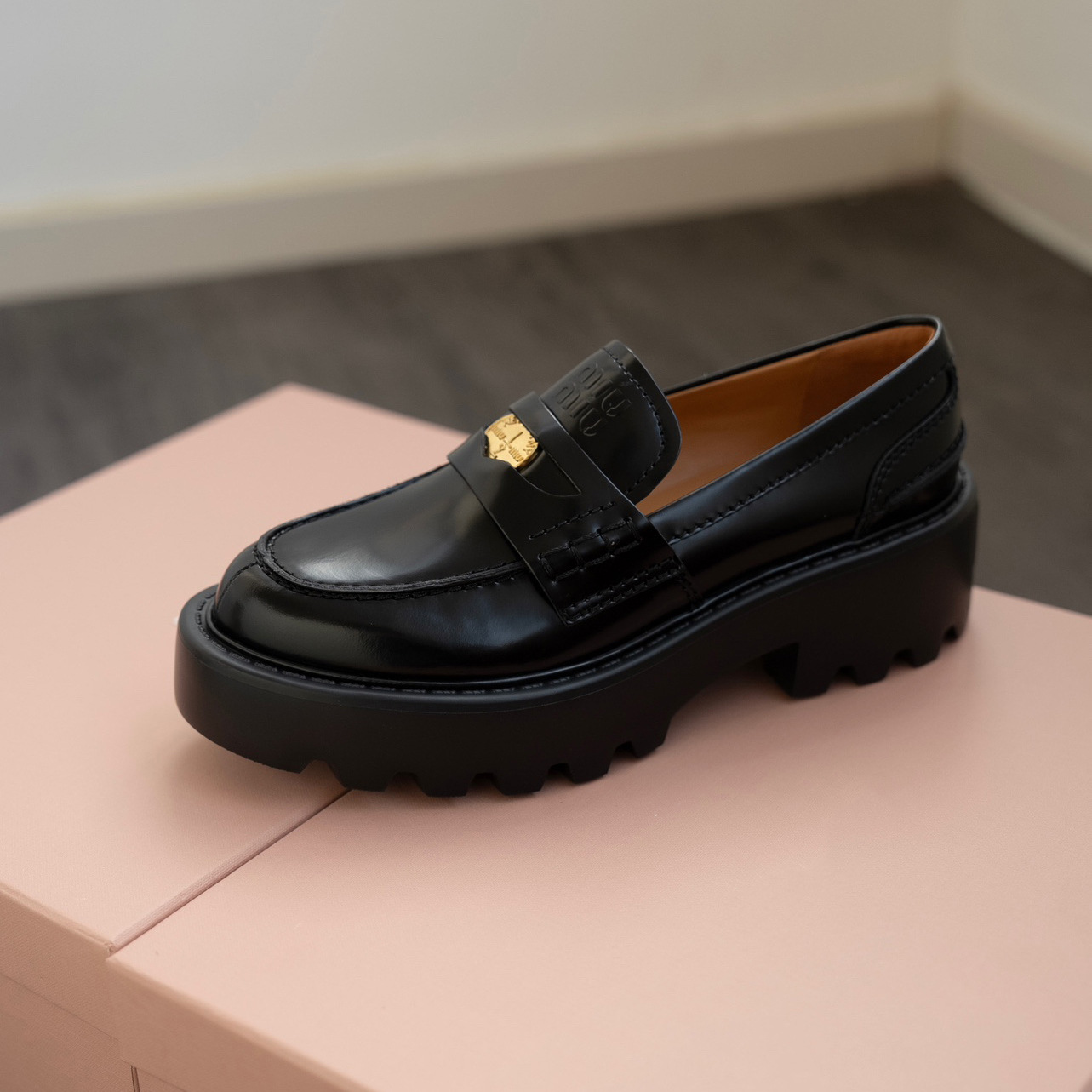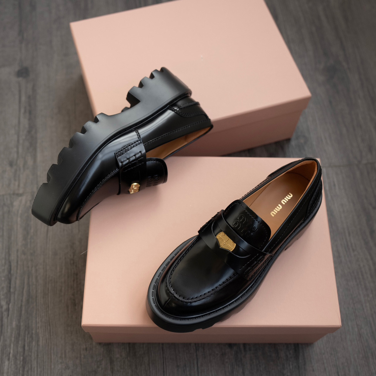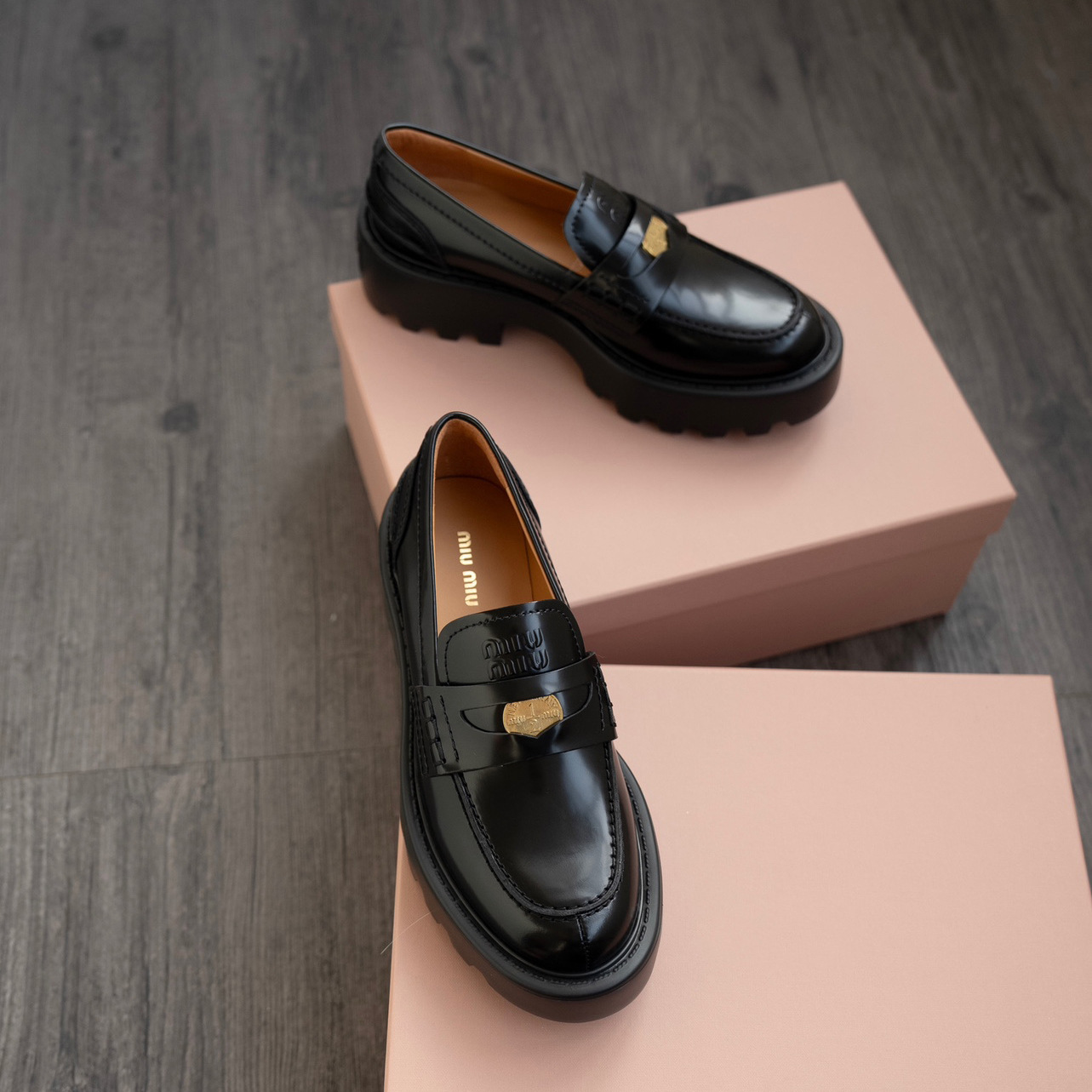 miu2025 새로운 두꺼운 밑창 금화 로퍼 정품 가죽 복고풍 다용도 작은 가죽 신발 높이 증가 여성 신발 고급 우아함