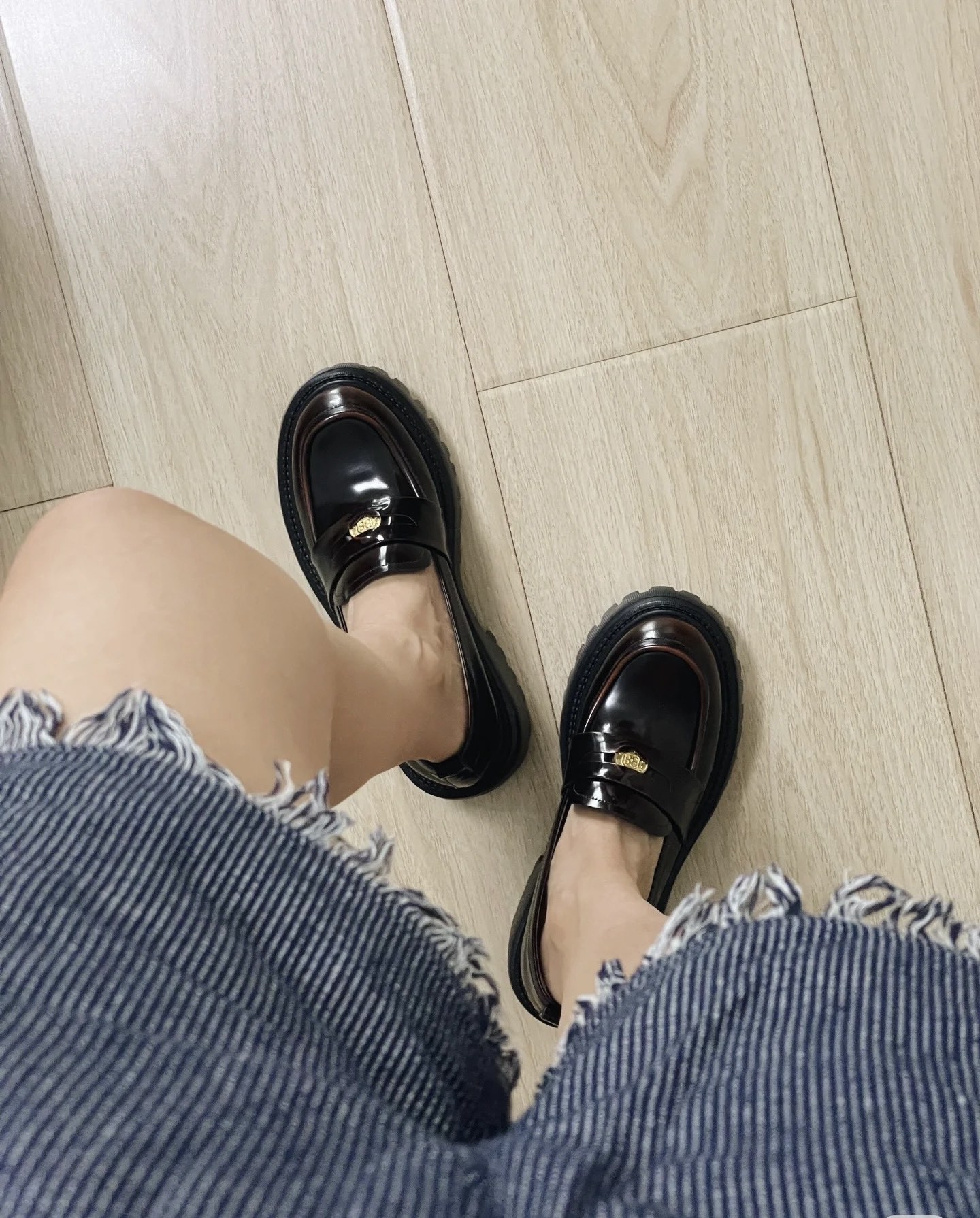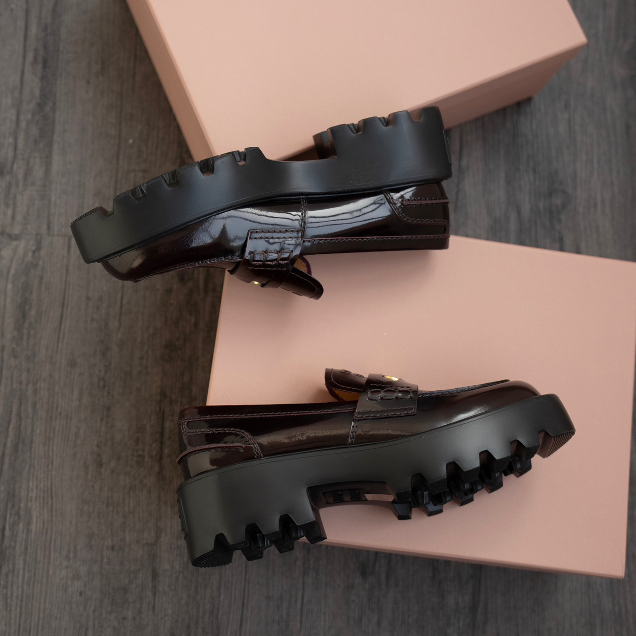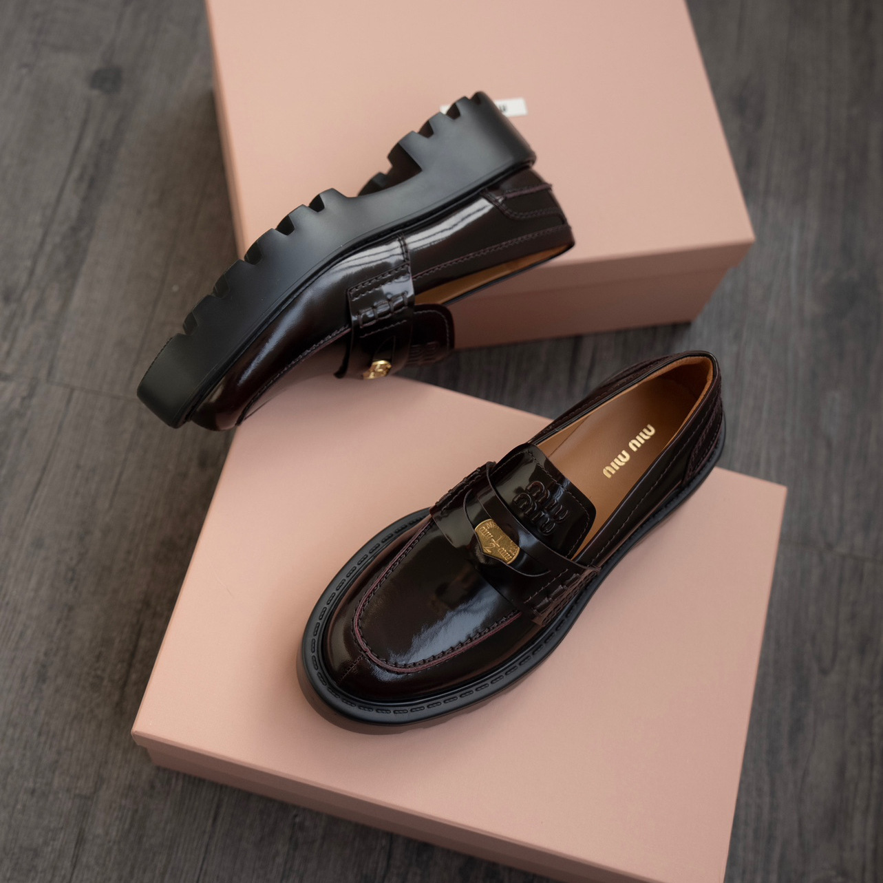 miu2025 새로운 두꺼운 밑창 금화 로퍼 정품 가죽 복고풍 다용도 작은 가죽 신발 높이 증가 여성 신발 고급 우아함