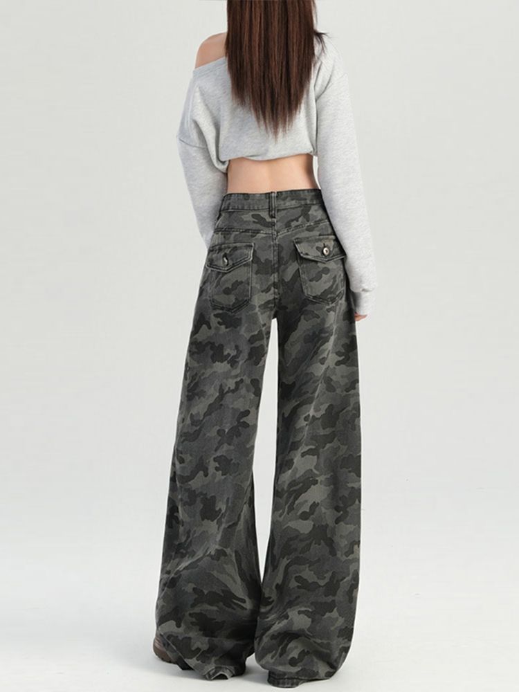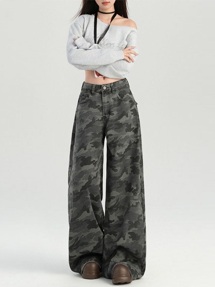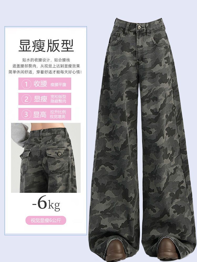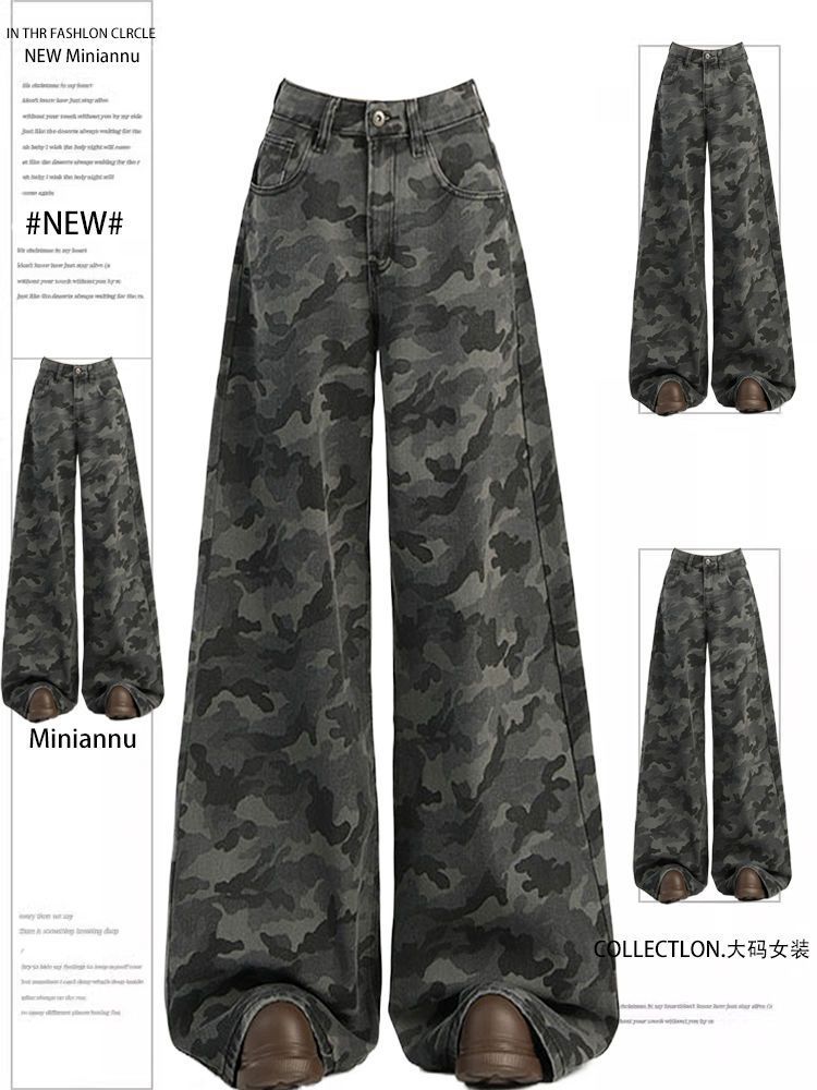 플러스 사이즈 여성 아메리칸 스타일 복고풍 운항 청바지 여성 통통녀 게으른 휴식 슬리밍 넓은 다리 바지 트렌디