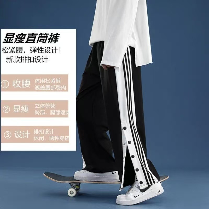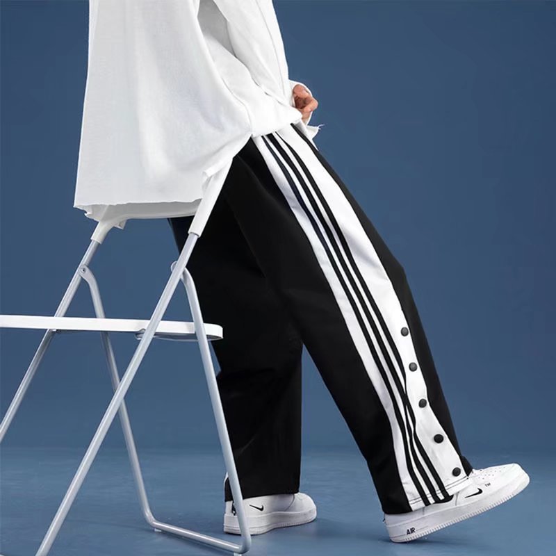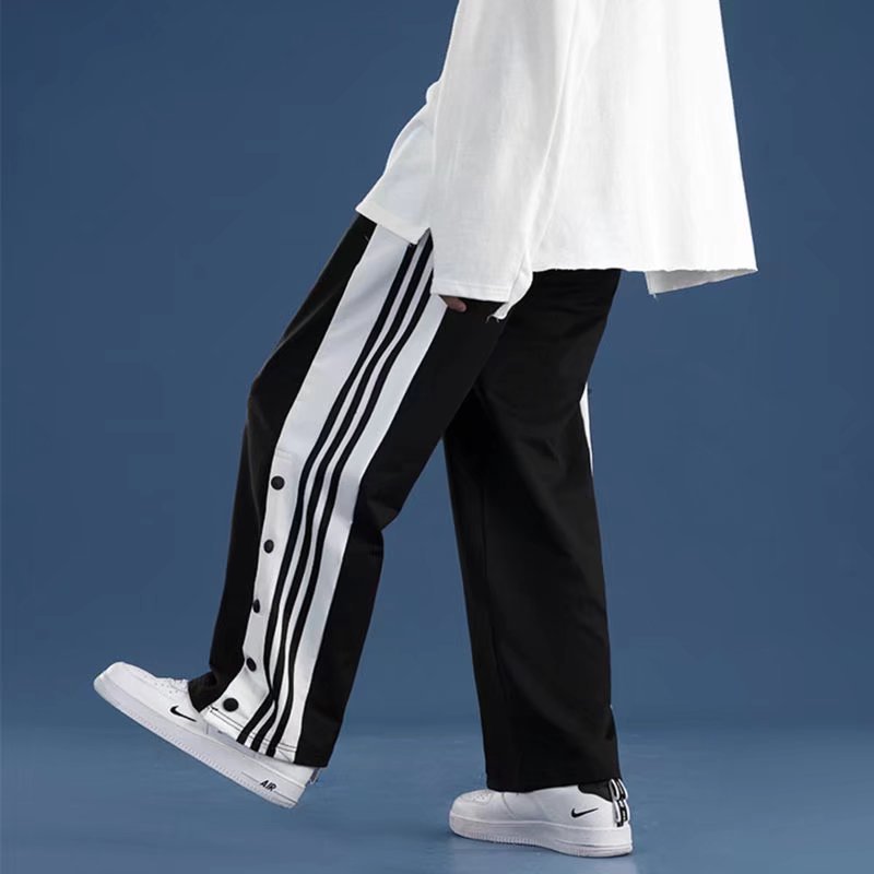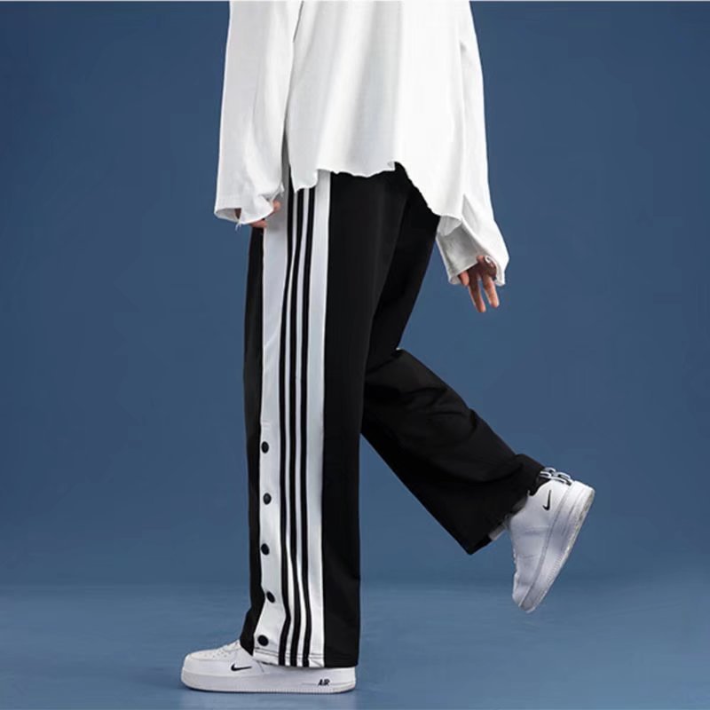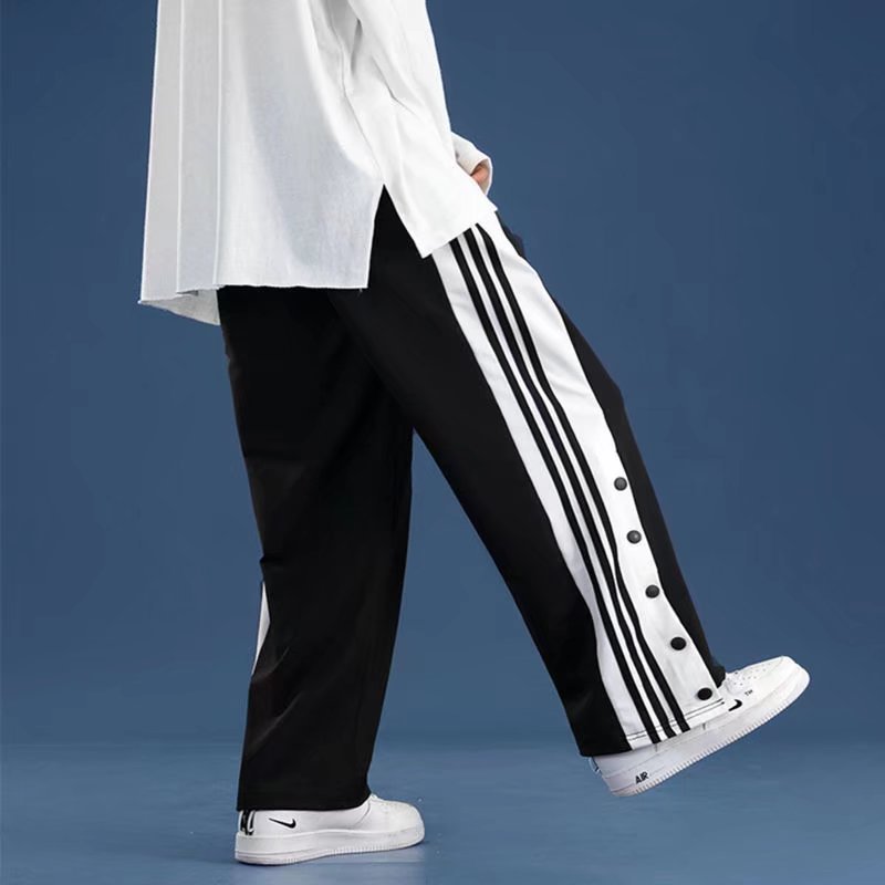 유럽과 미국의 하이 스트리트 바이브 바지 트렌디 브랜드 ins 아메리칸 하프 오픈 버튼 브레스트 바지 남자 농구 스트레이트 와이드 레그 스웨트 팬츠