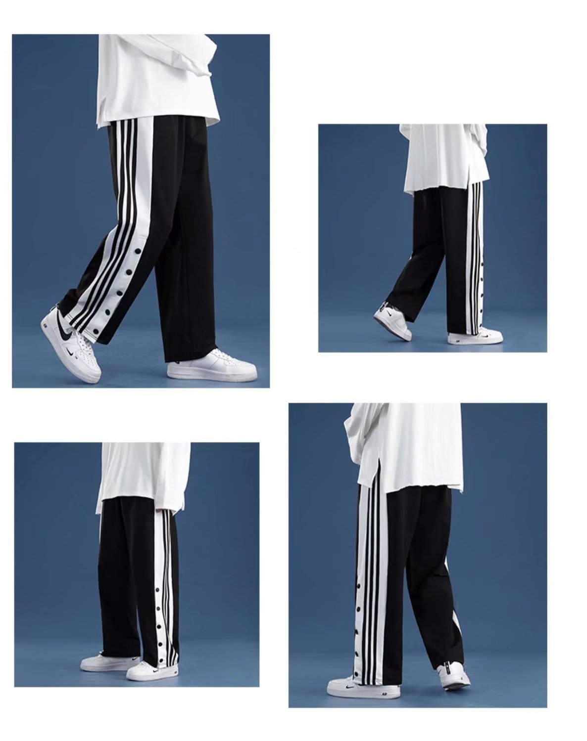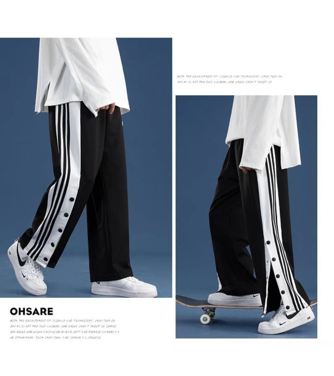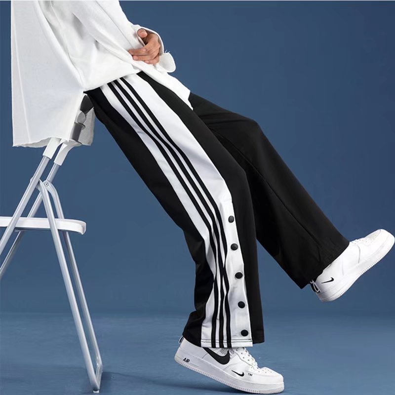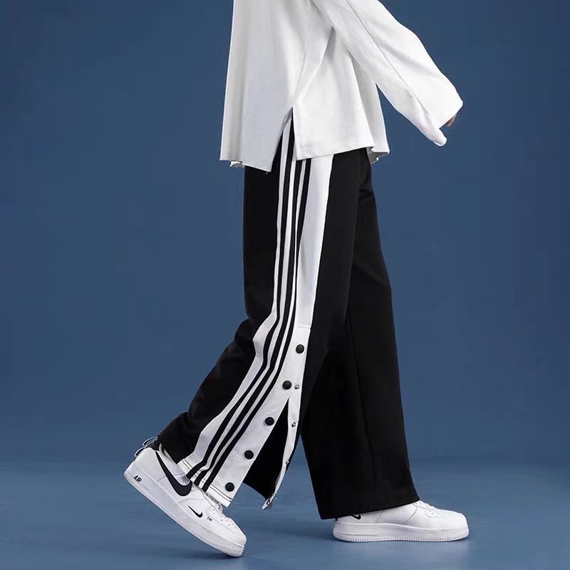 유럽과 미국의 하이 스트리트 바이브 바지 트렌디 브랜드 ins 아메리칸 하프 오픈 버튼 브레스트 바지 남자 농구 스트레이트 와이드 레그 스웨트 팬츠