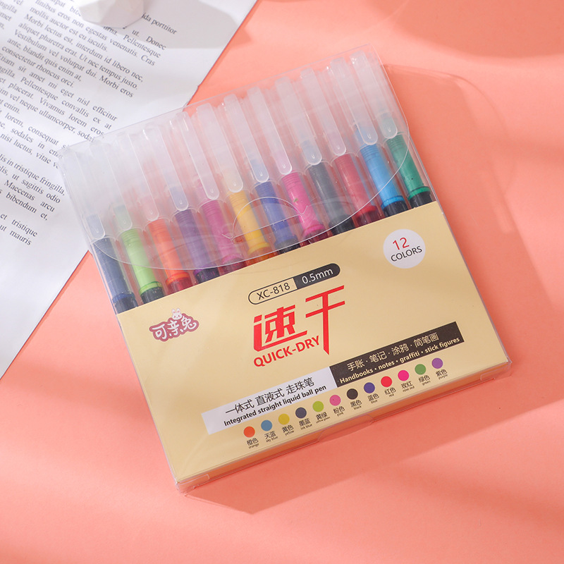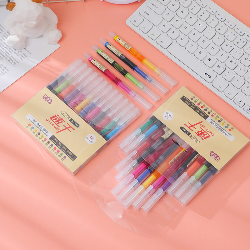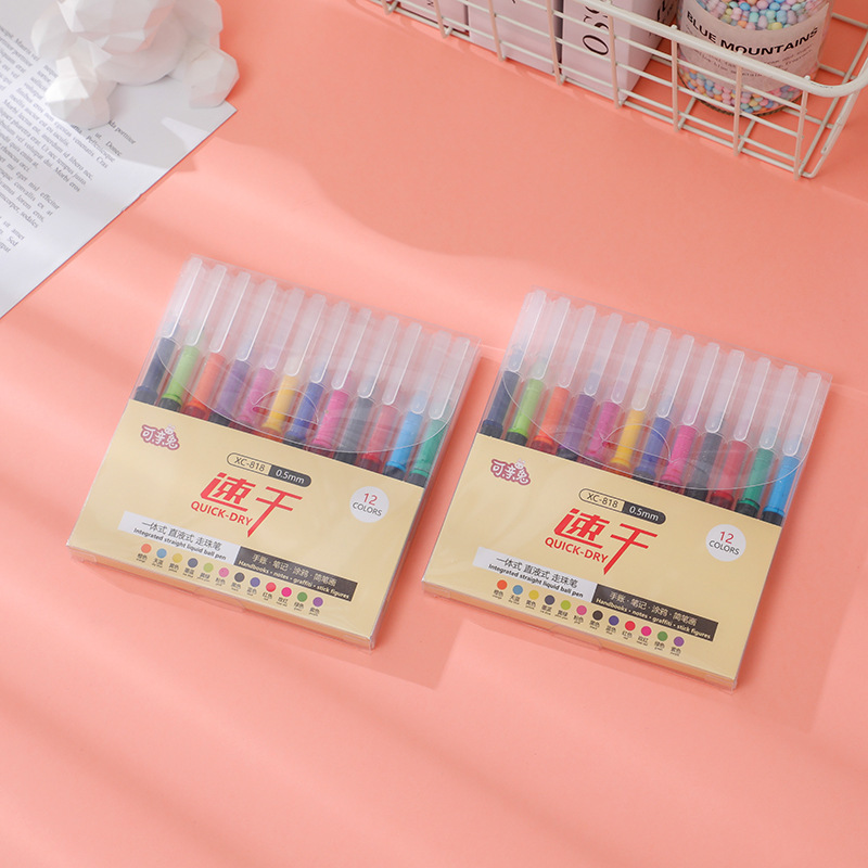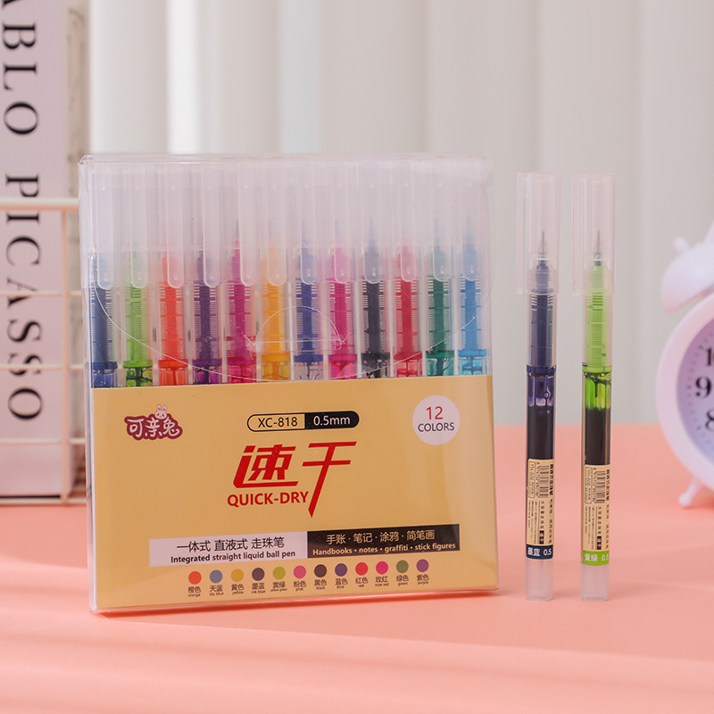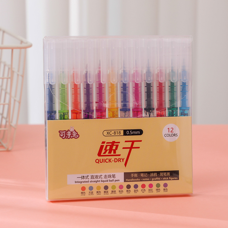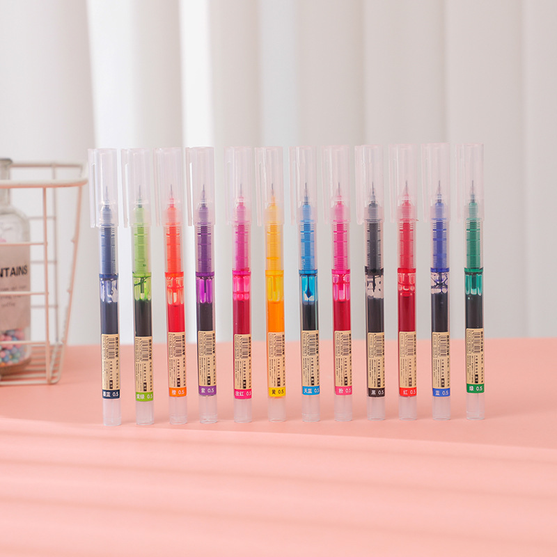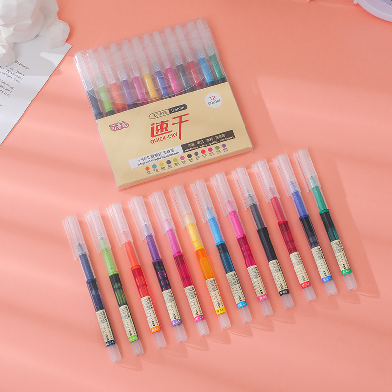 12 컬러 박스 컬러 펜 직접 액체 볼 펜 높은 색상 가치 빠른 건조 펜 젤 펜 워터 펜 컬러 펜 크리에이티브 문구