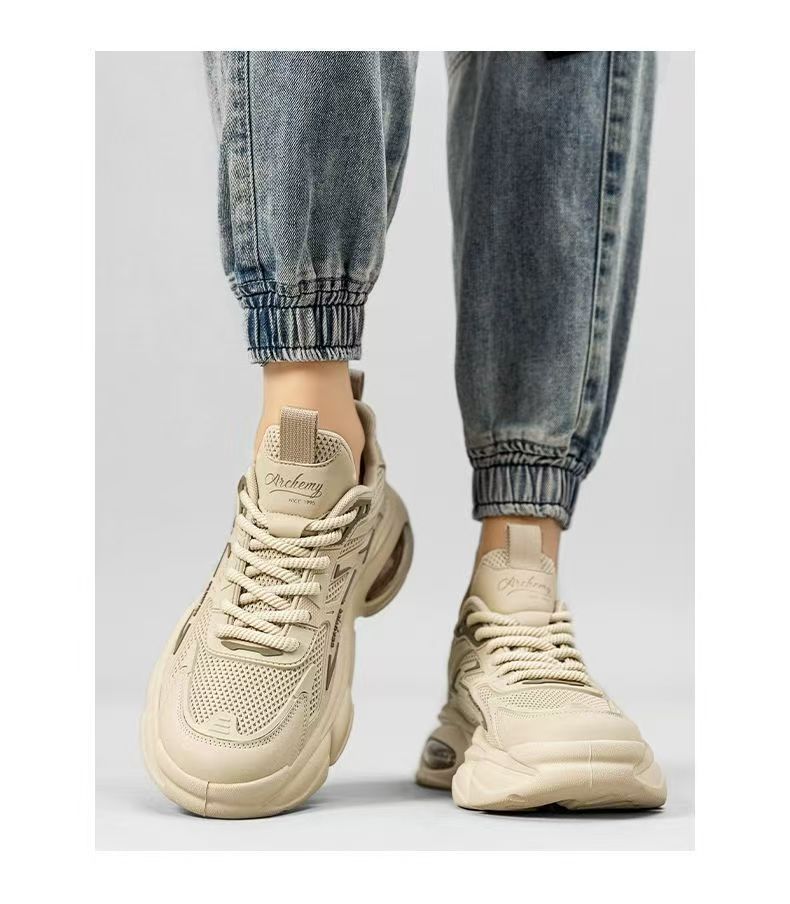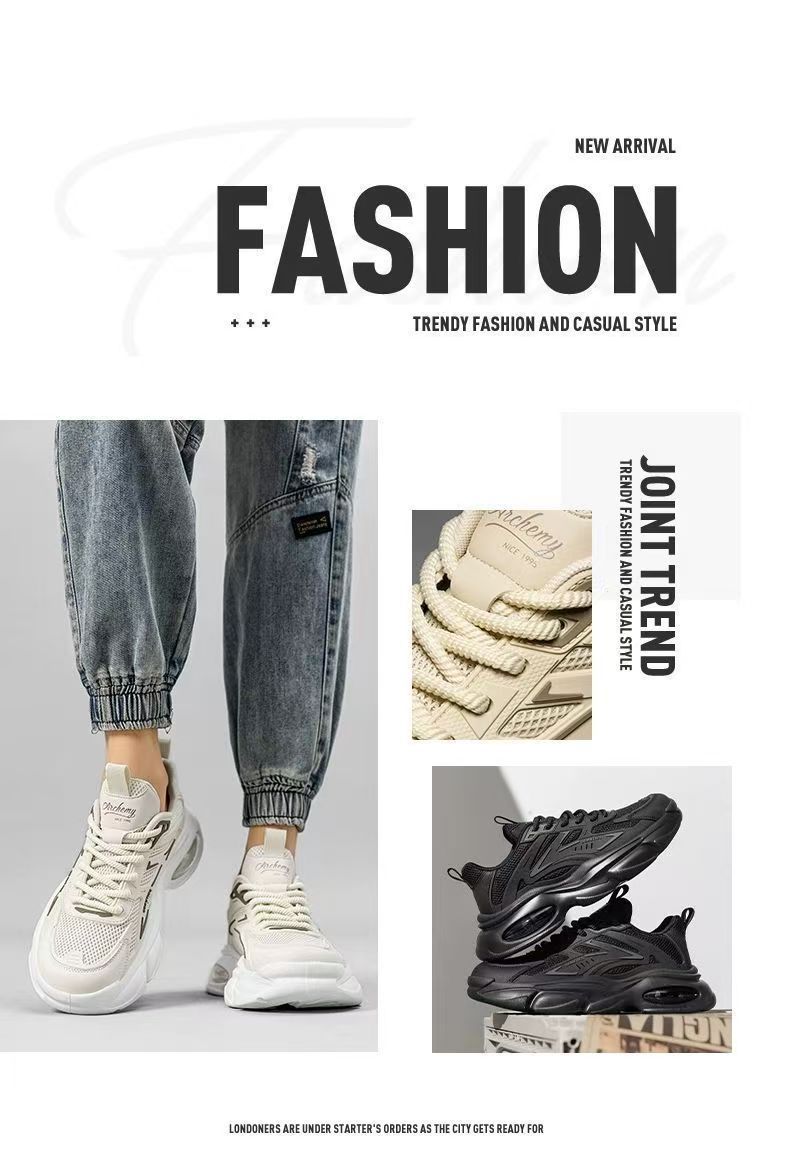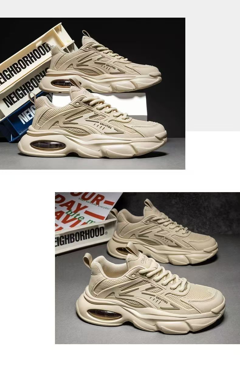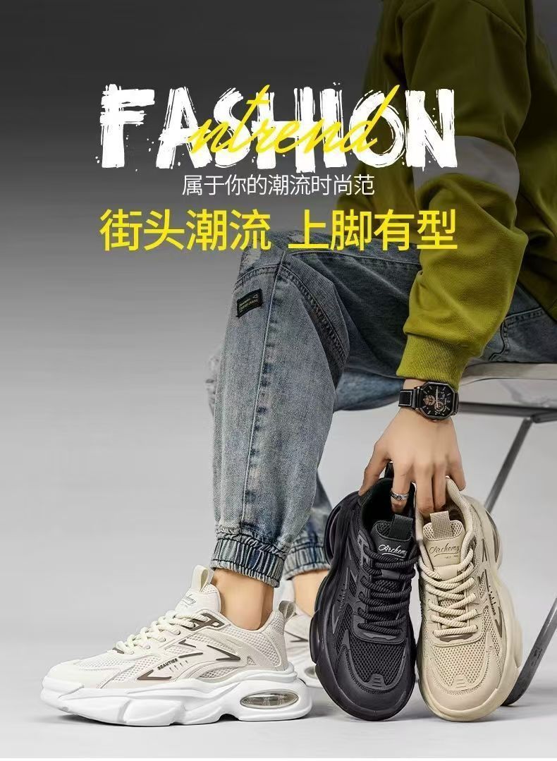 남성화 2025년 겨울 신상 핫템 순흑색 두꺼운 밑창 블랙 워리어 에어쿠션 캐주얼 운동화 아빠 스타일 인싸템