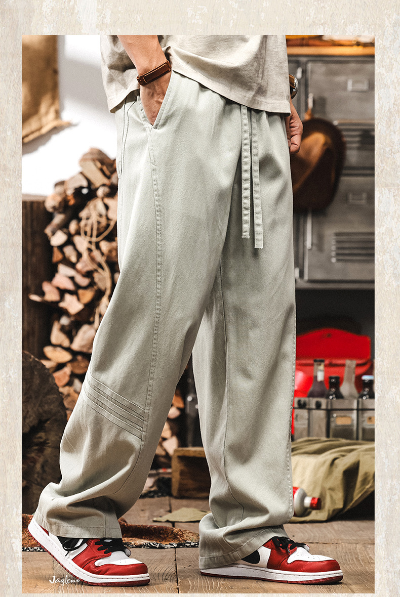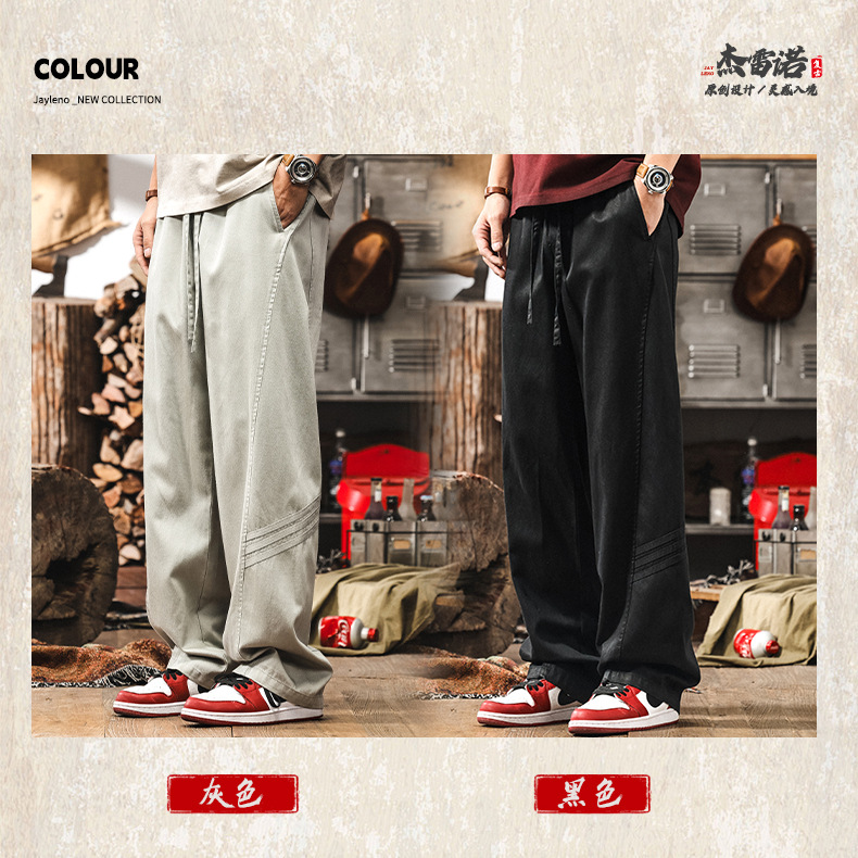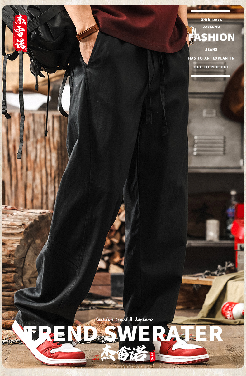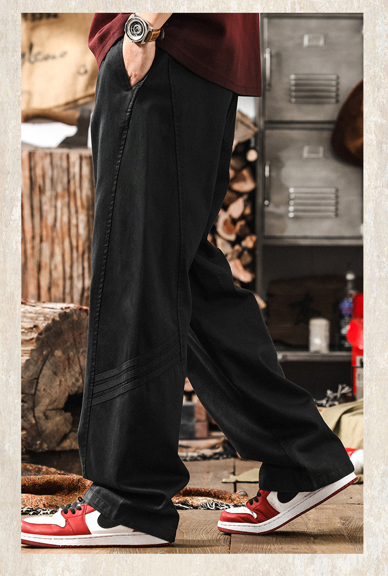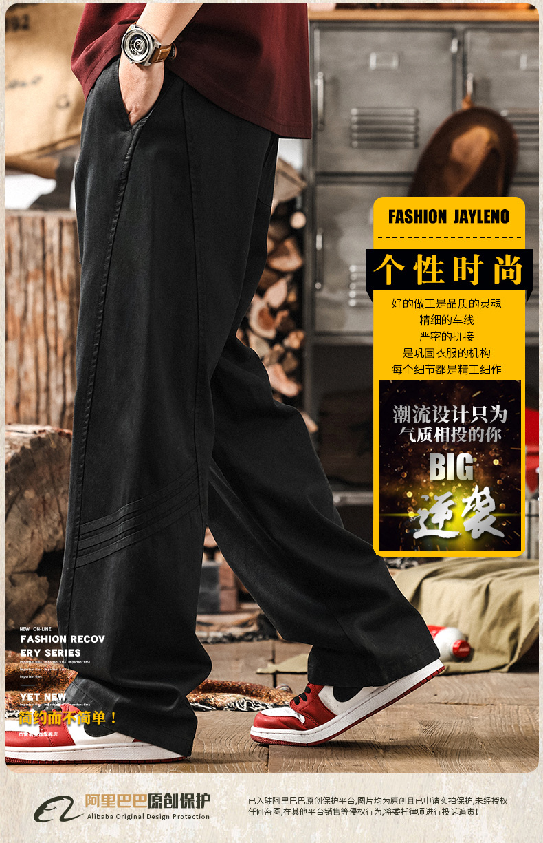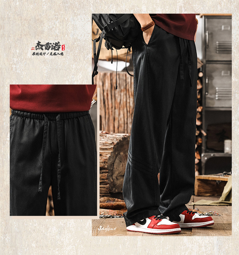 미국 레트로 텐셀 리오셀 얇은 긴 바지 남자 여름 느슨한 스트레이트 드레인 블랙 남자 캐주얼 바지