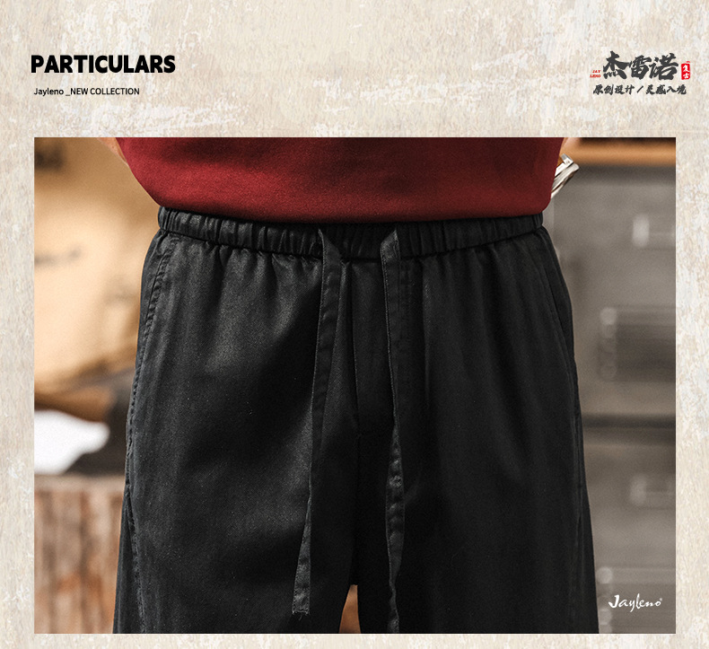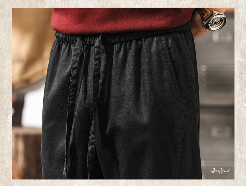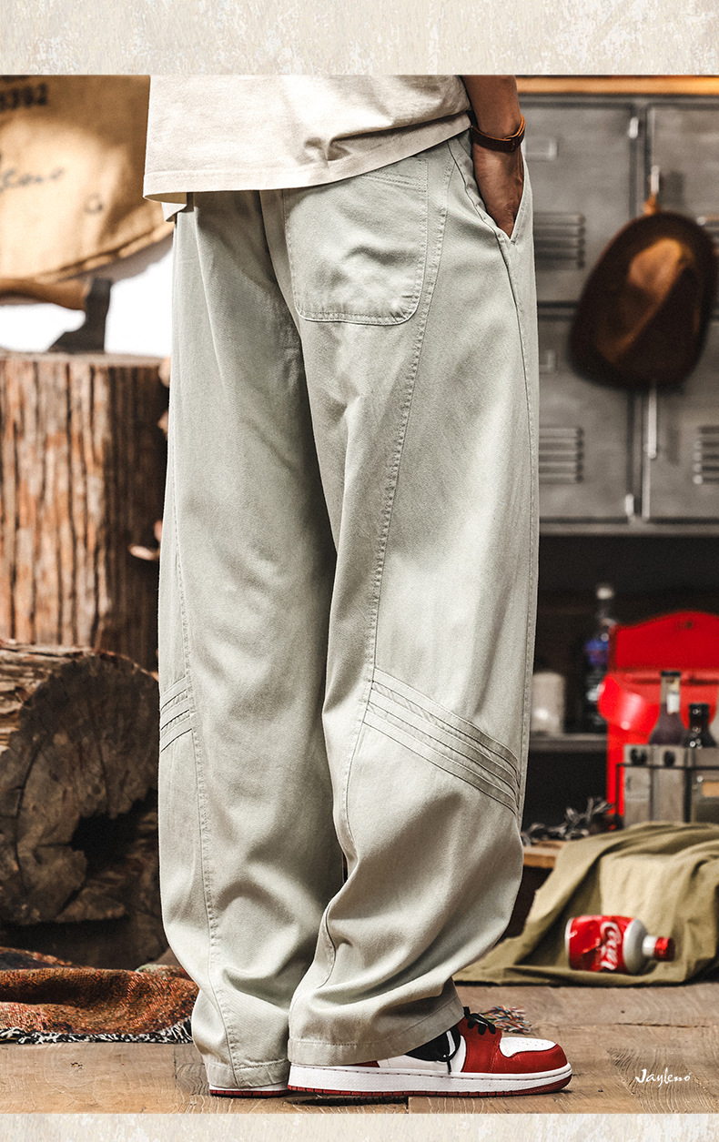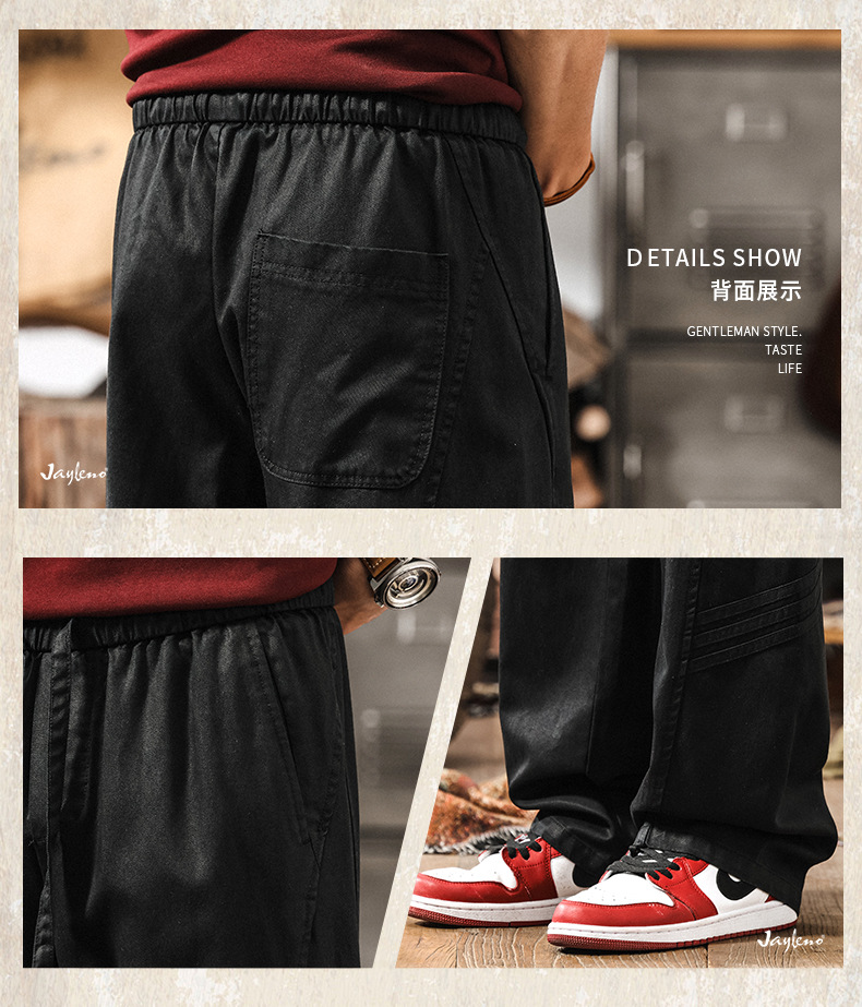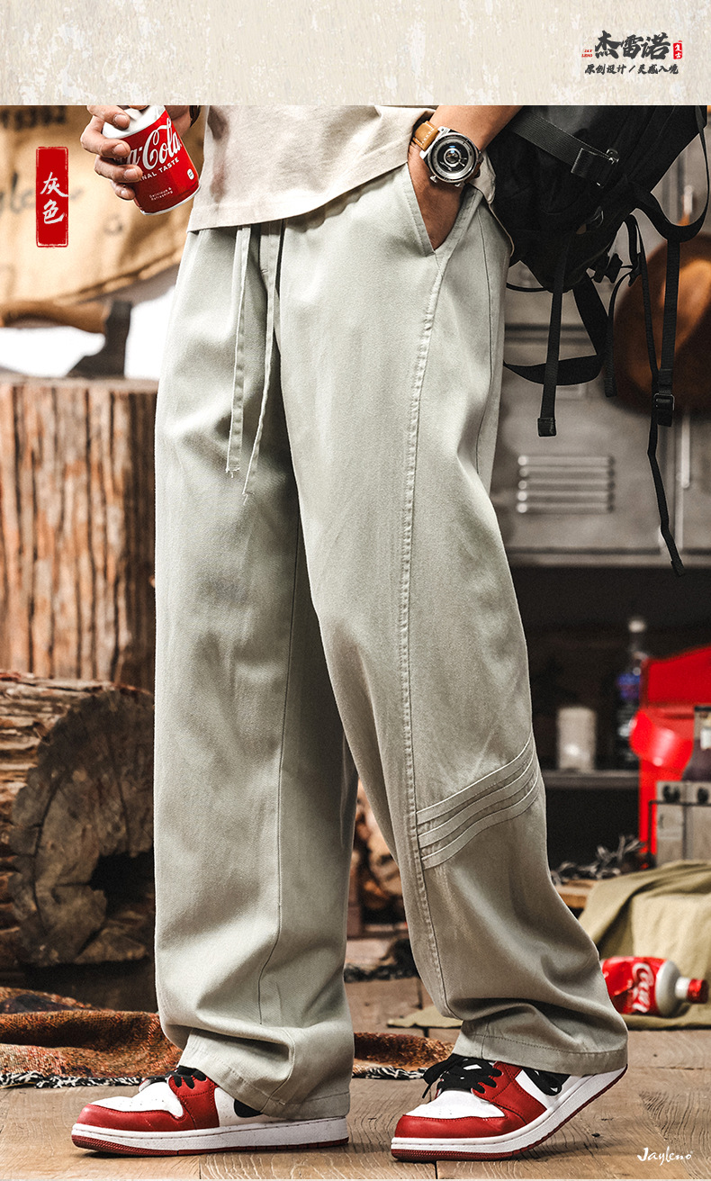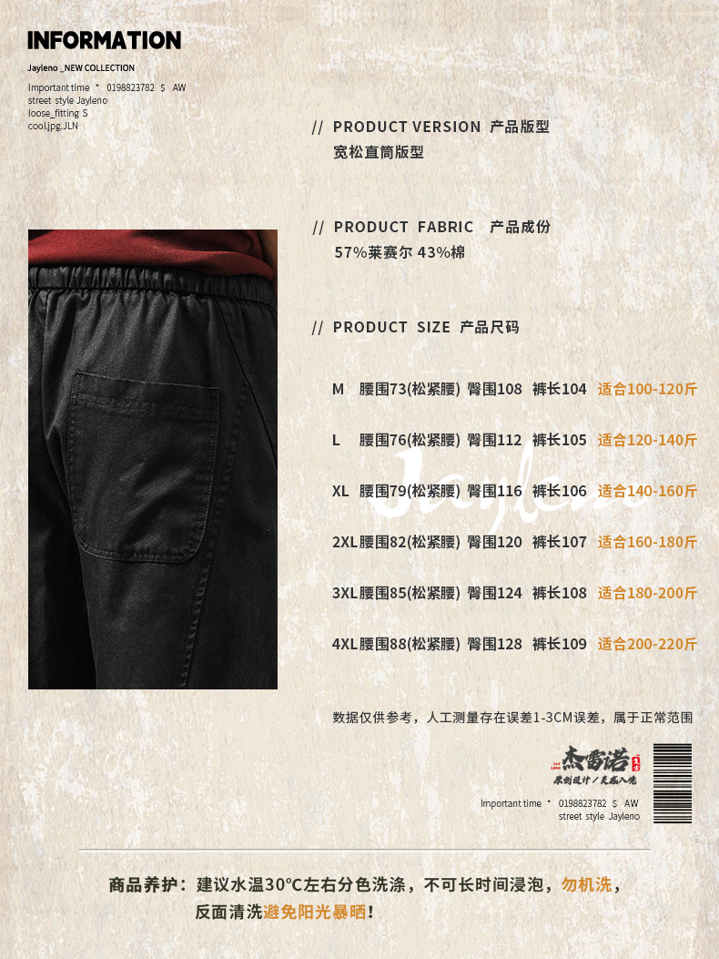 미국 레트로 텐셀 리오셀 얇은 긴 바지 남자 여름 느슨한 스트레이트 드레인 블랙 남자 캐주얼 바지
